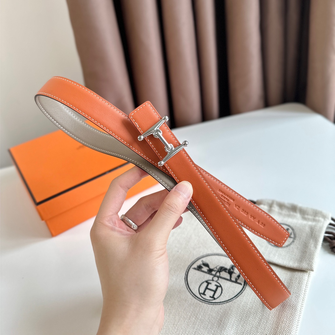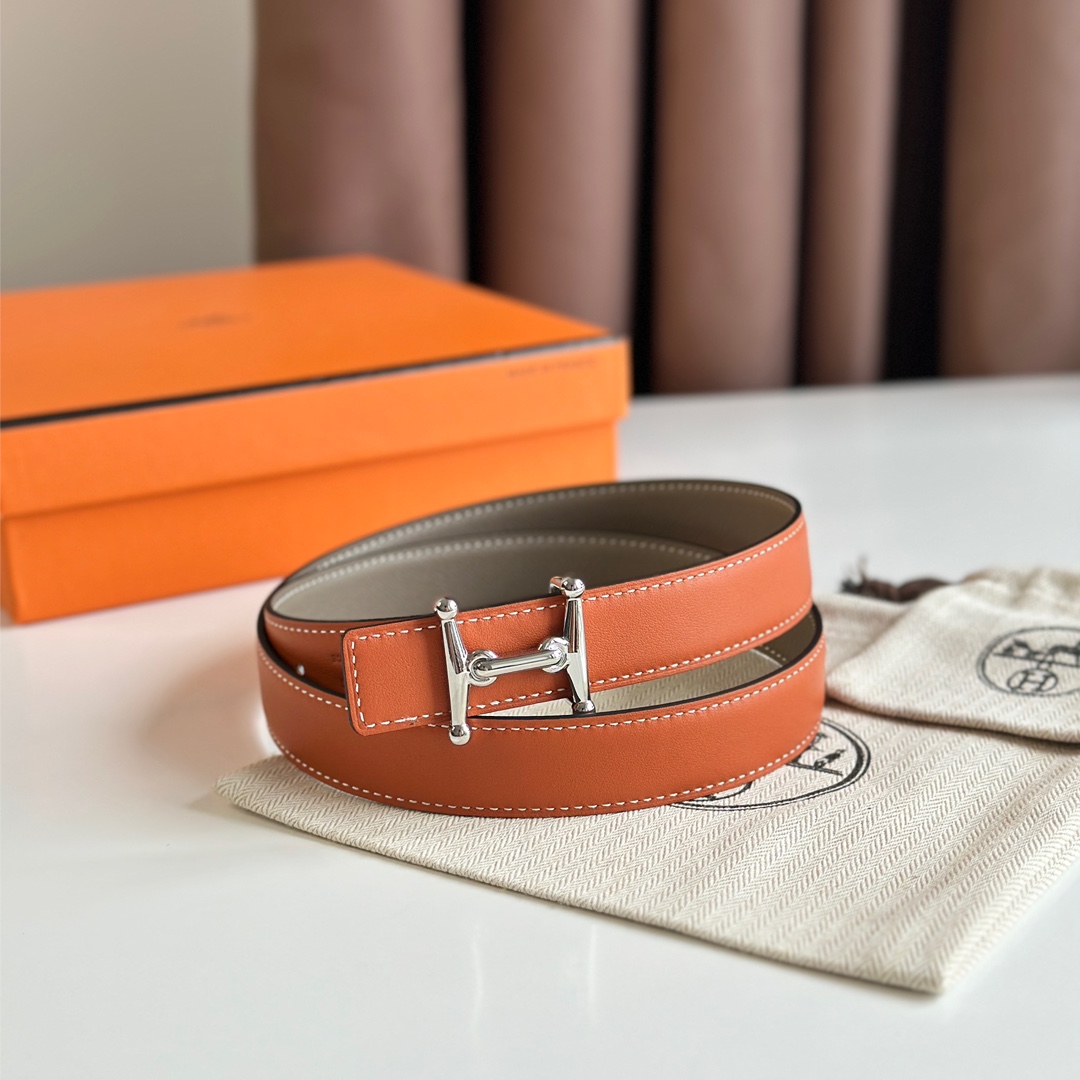 에르메스 MORS H 리버서블 오렌지 벨트 은장 24mm