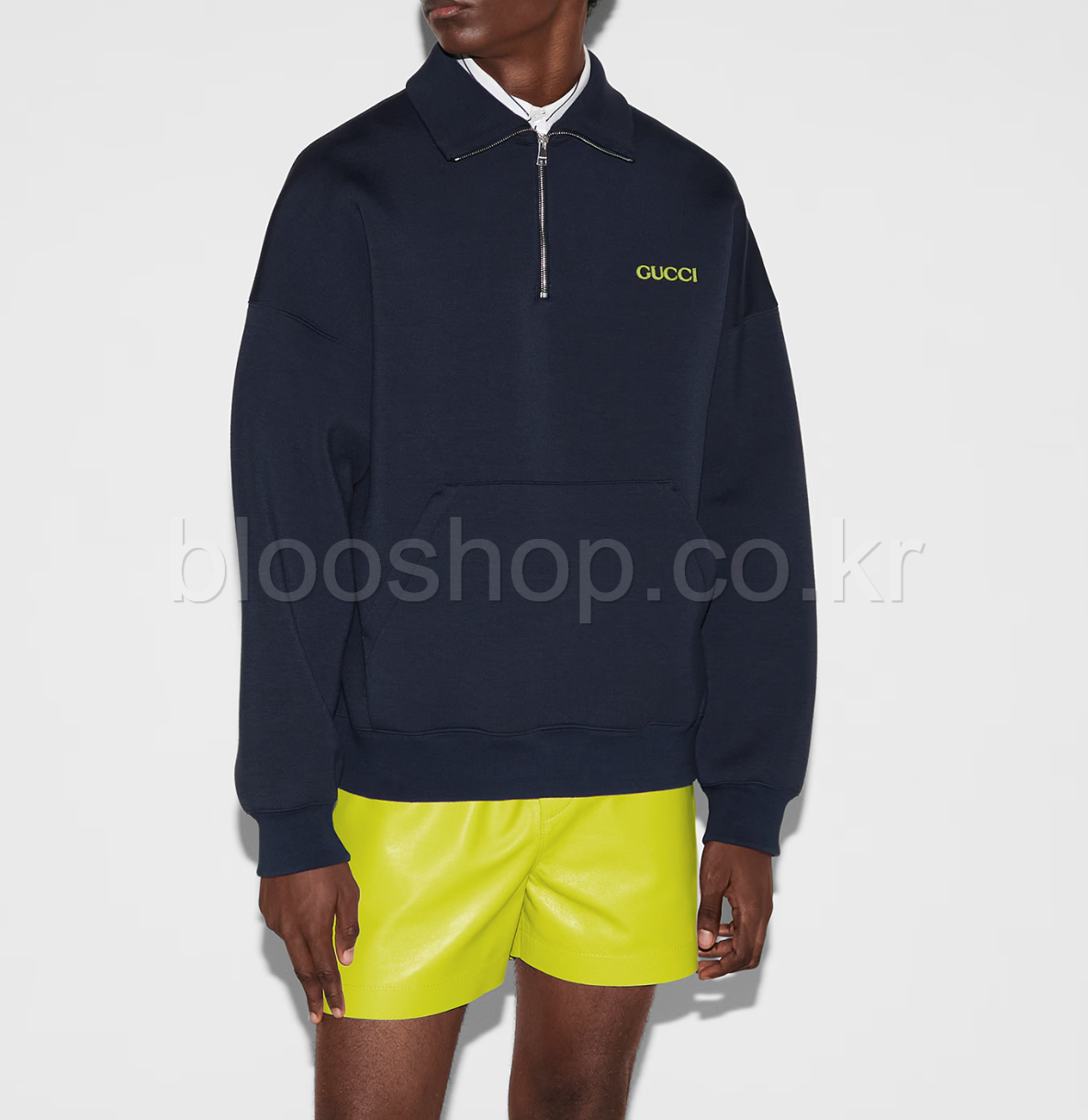 구찌 테크니컬 저지 스웨트 셔츠 네이비