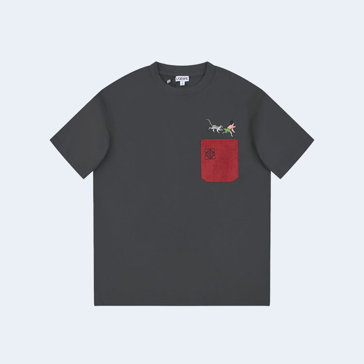 로에베 QQ 레드 포켓 티셔츠 그레이