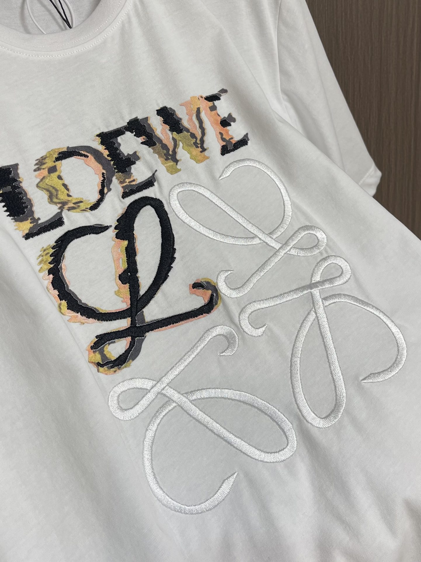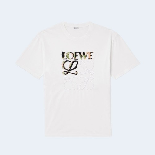 로에베 로고 자수 코튼 저지 티셔츠 화이트