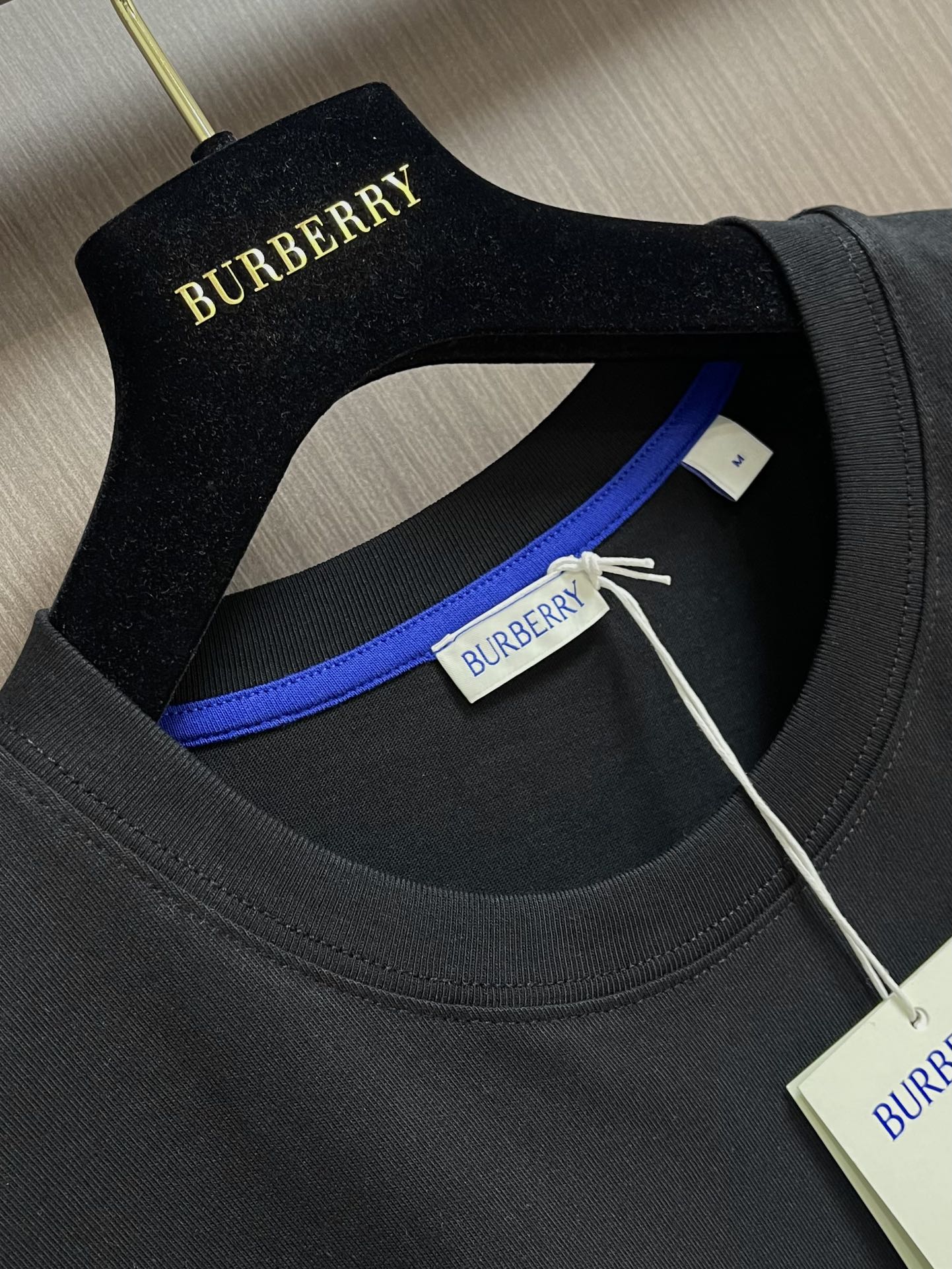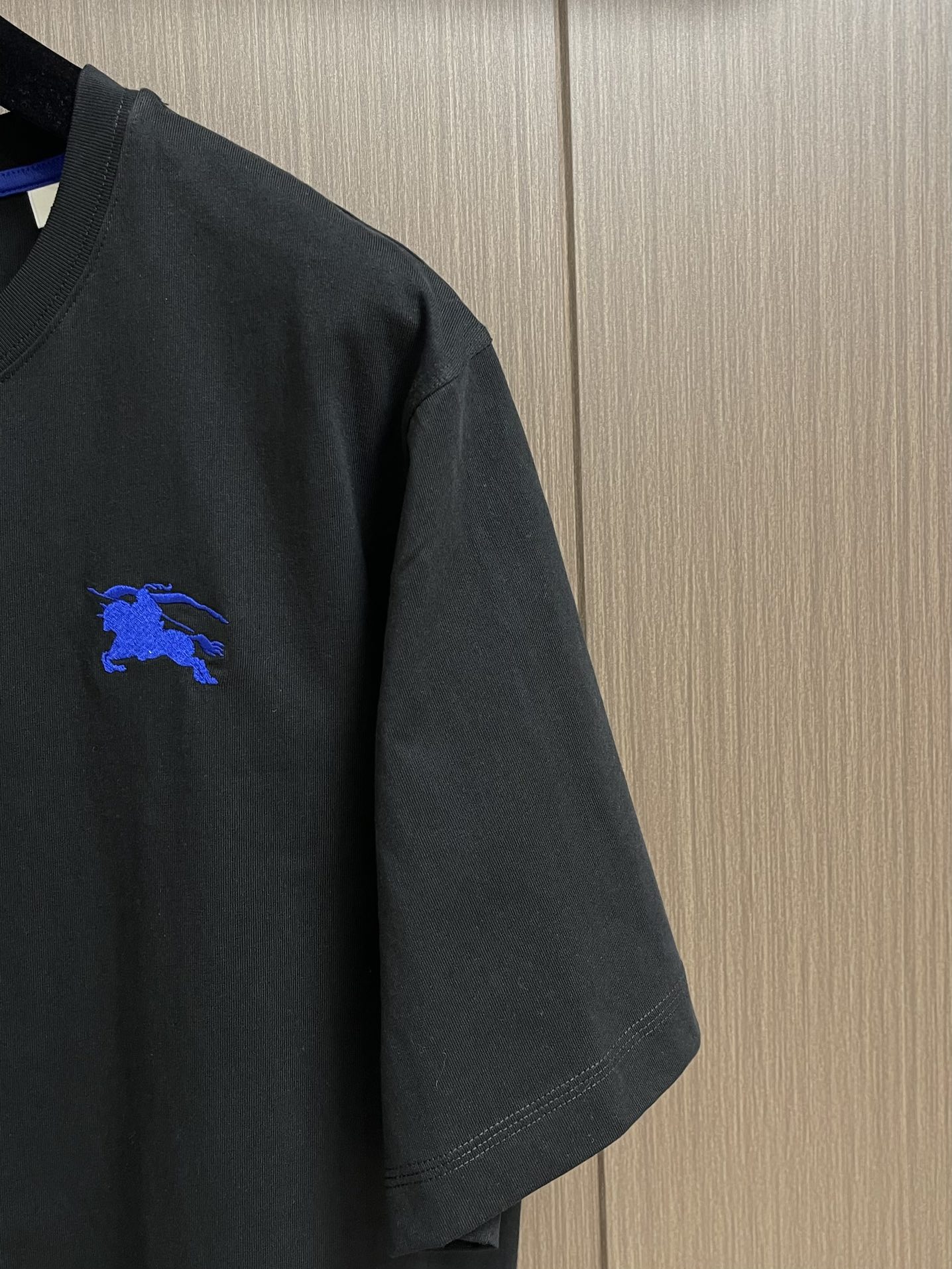 버버리 EKD 블루 자수 코튼 티셔츠 블랙