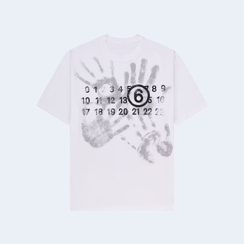 메종 마르지엘라 화이트 핸드 프린트 티셔츠 블랙