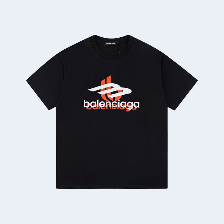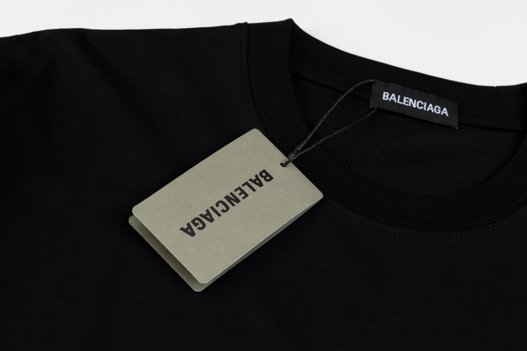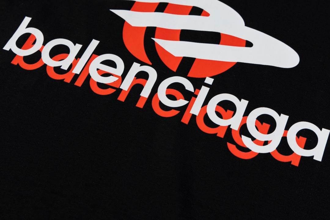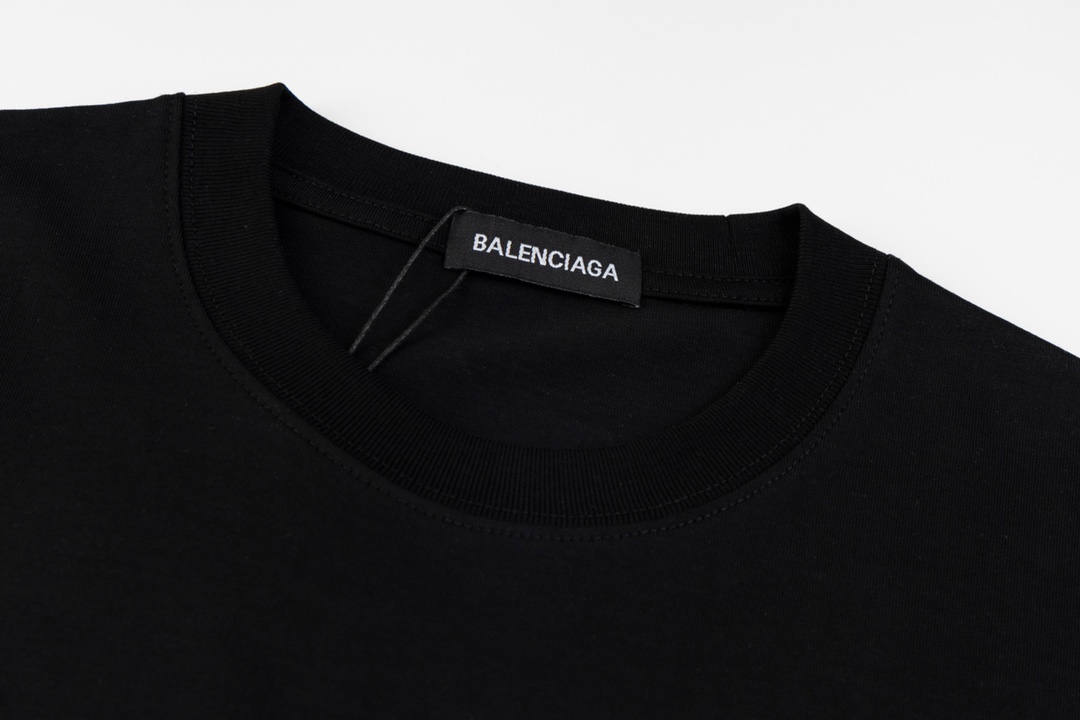 발렌시아가 더블 테이프 타이프 로고 티셔츠 블랙