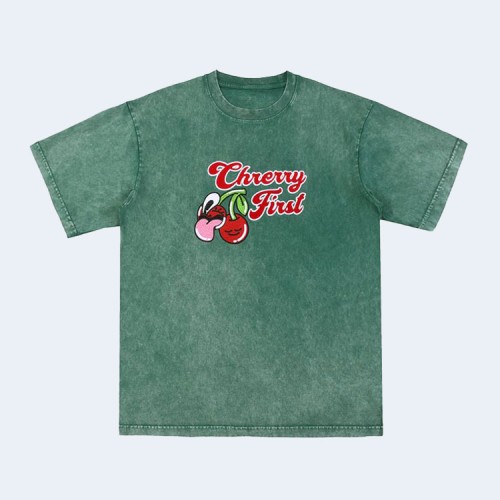 구찌 로고 프린트 체리 워시드 티셔츠 그린
