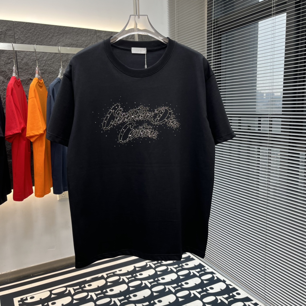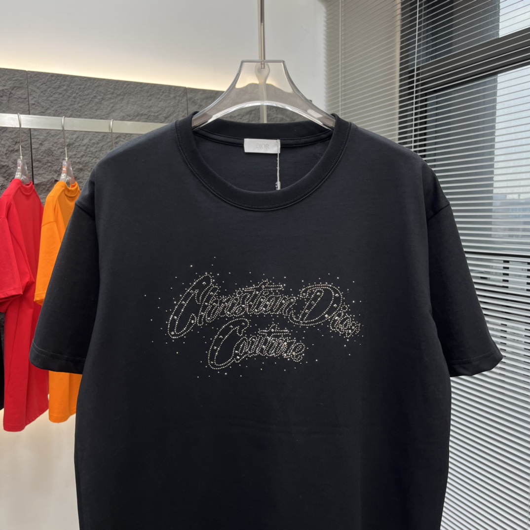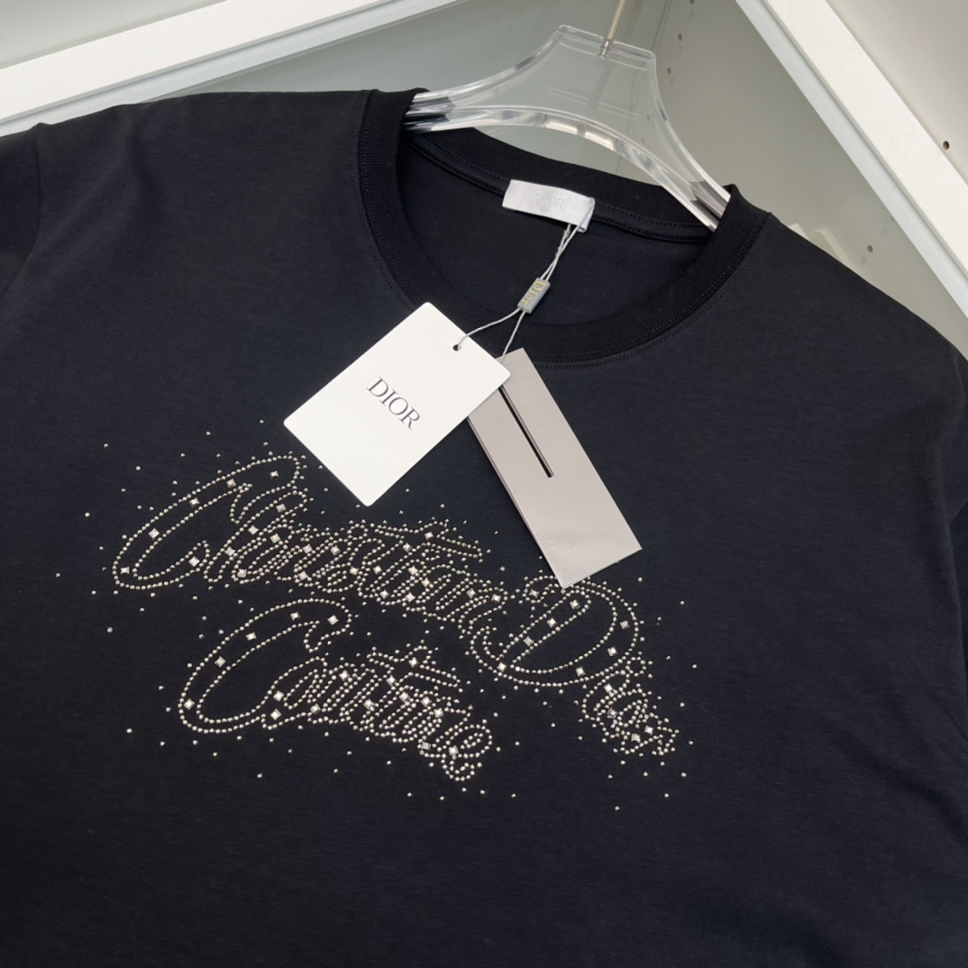 디올 오리지널 다이아몬드 로고 티셔츠 블랙