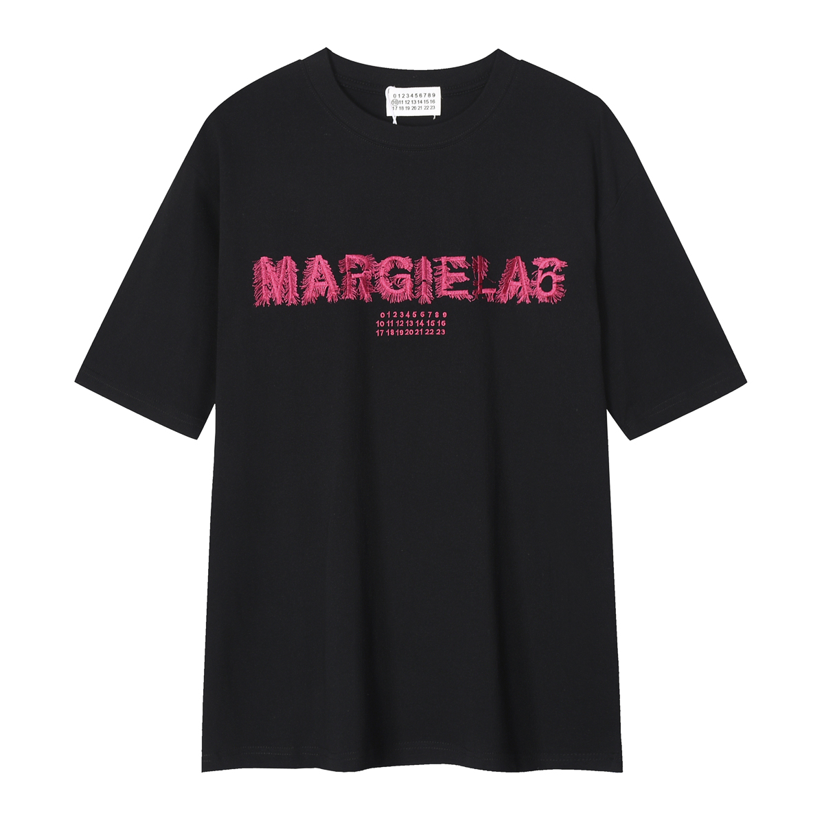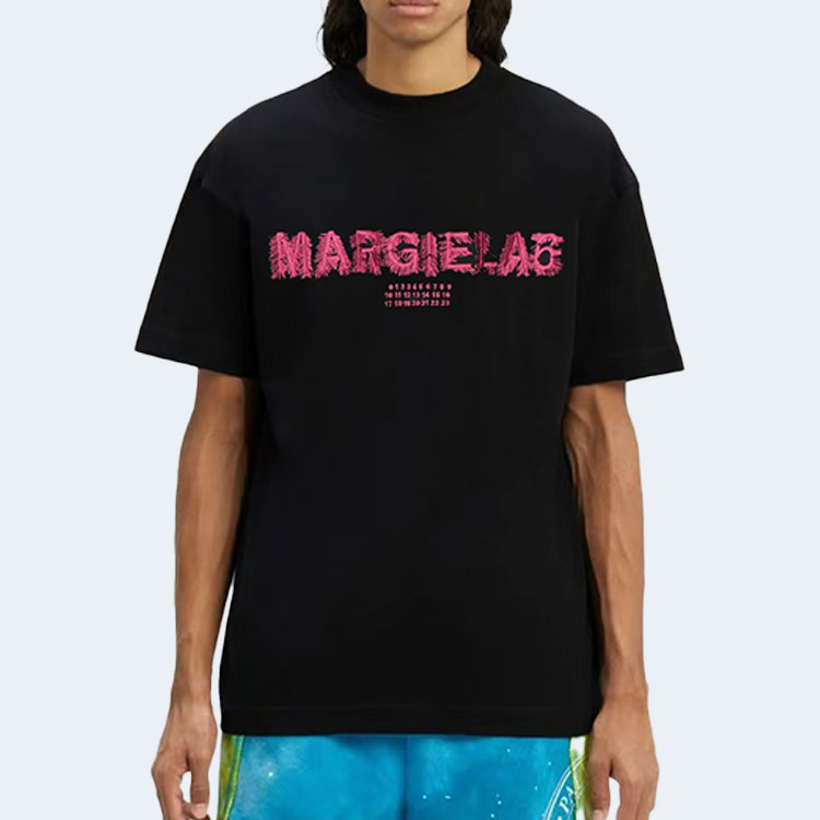 메종 마르지엘라 로고 그래픽 프린트 티셔츠 블랙