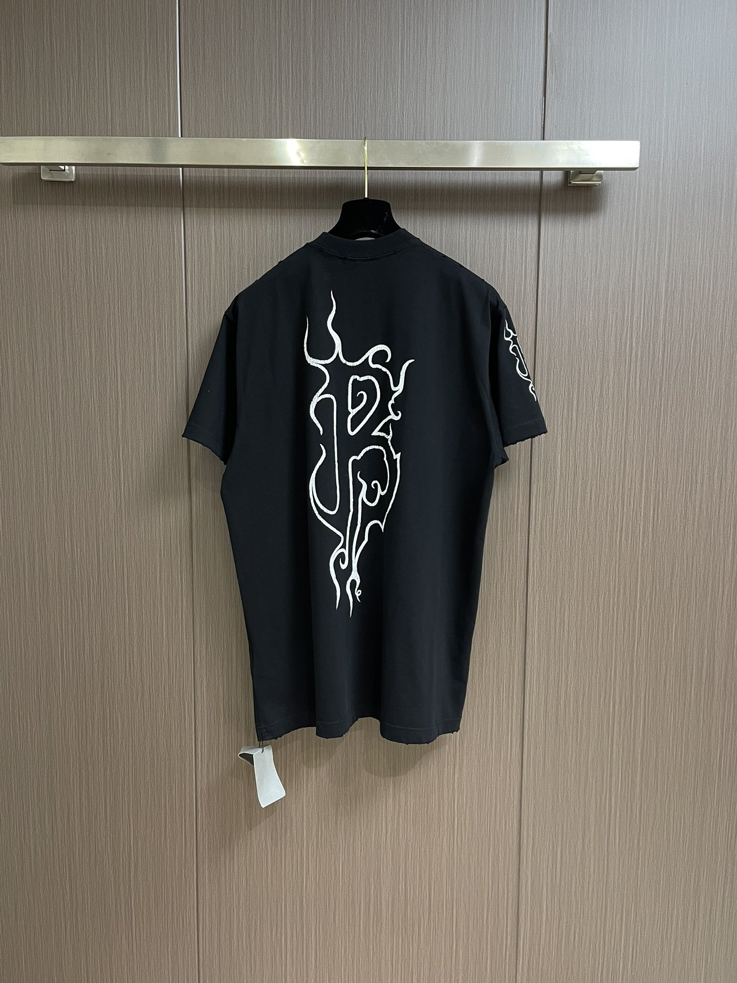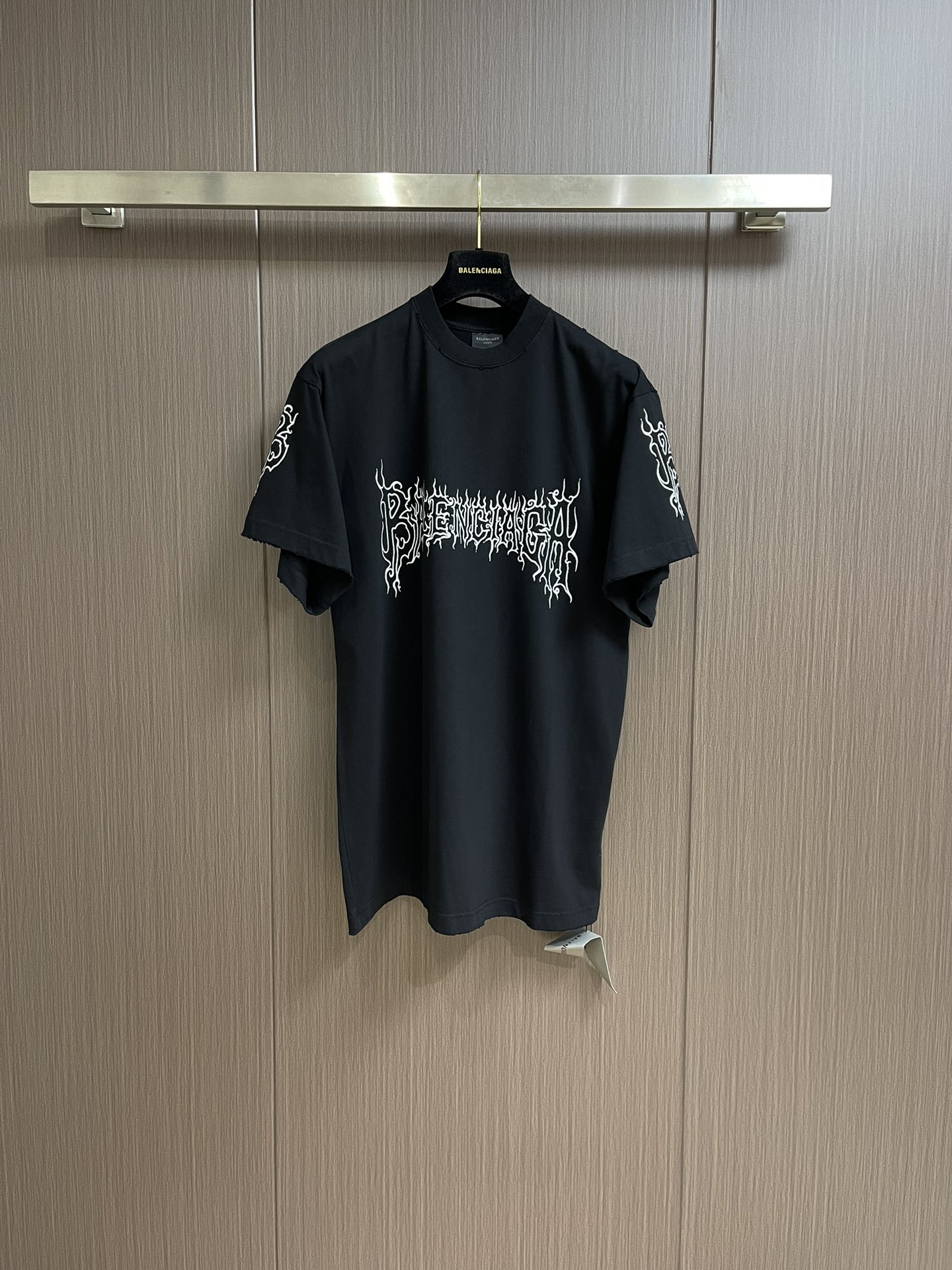 발렌시아가 BB 엠브로이더리 로고 티셔츠 블랙