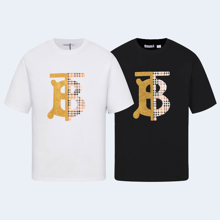 버버리 모노그램 모티프 로고 코튼 티셔츠 블랙 , 화이트