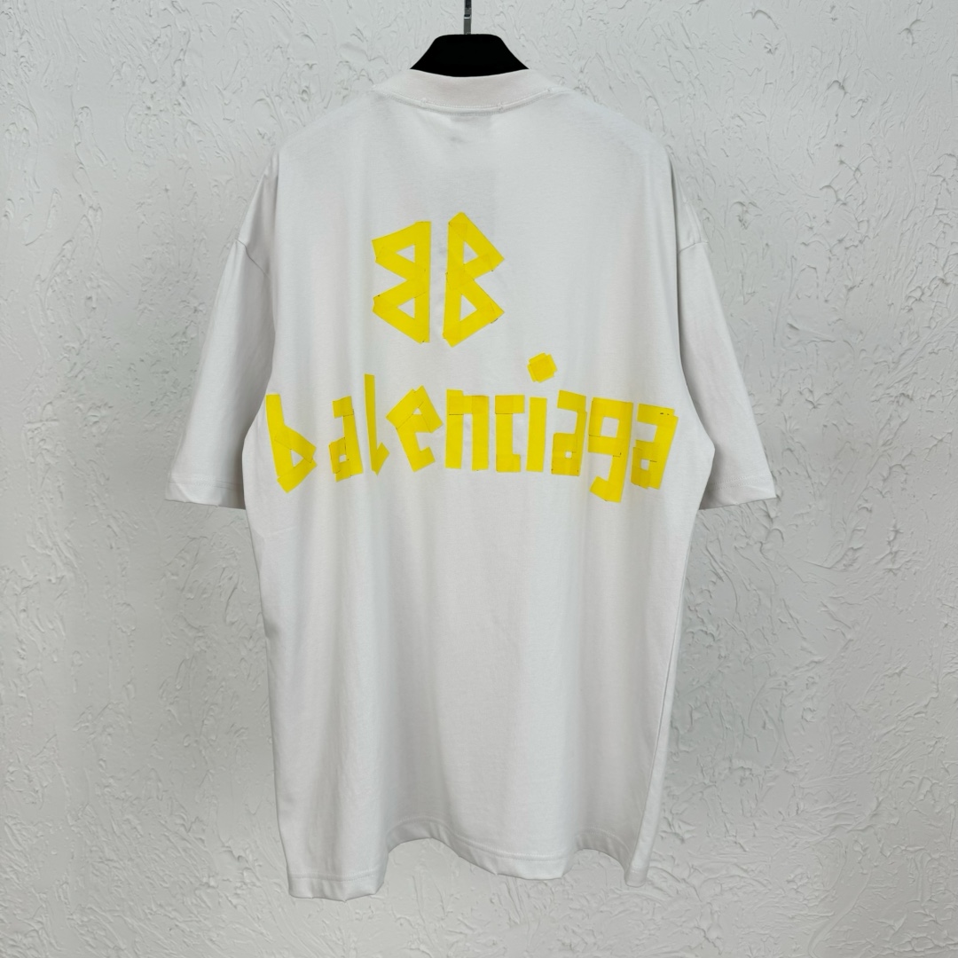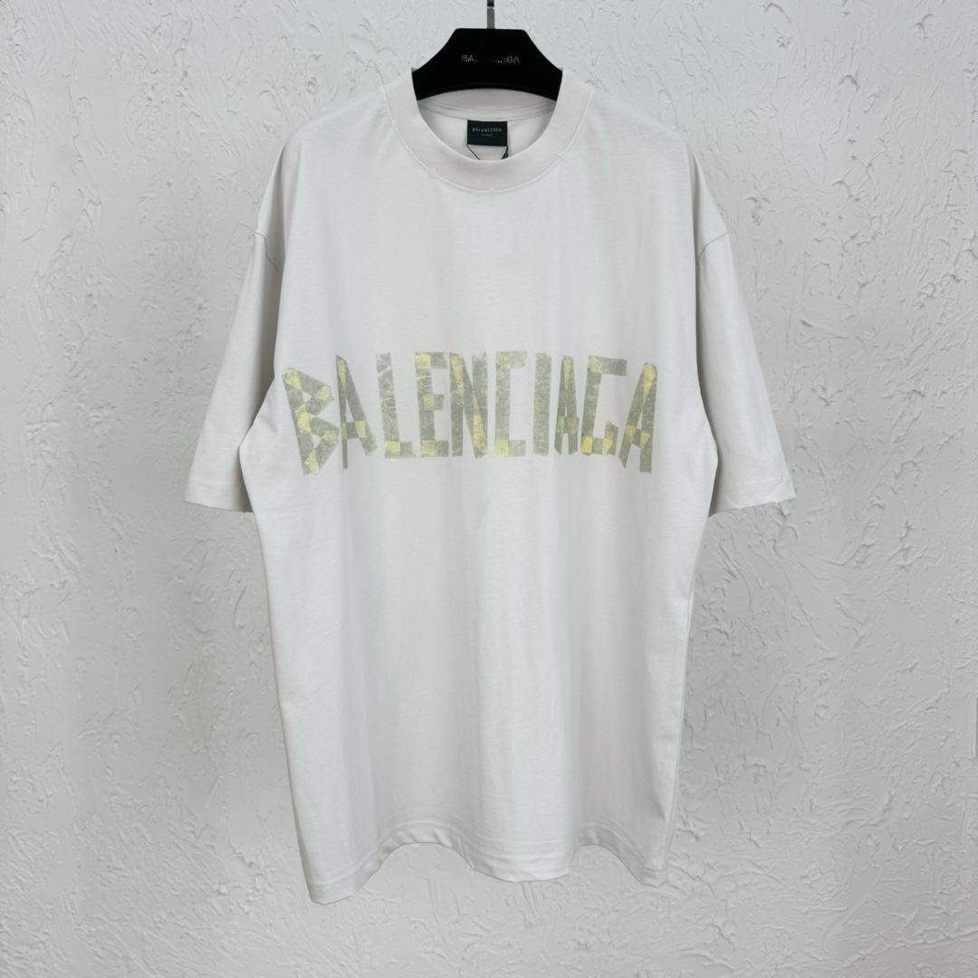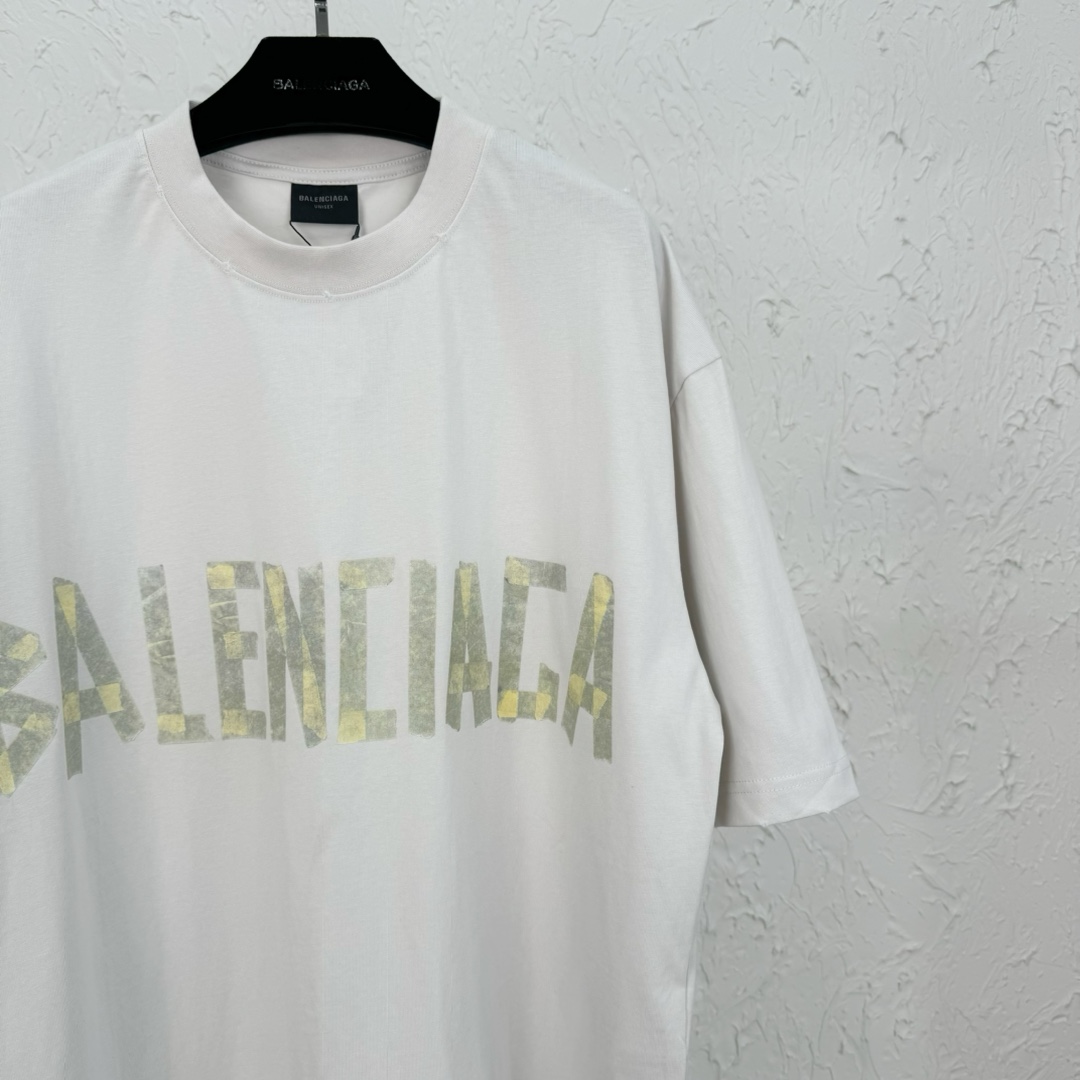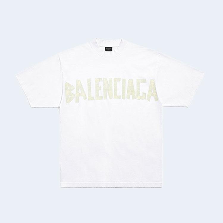 발렌시아가 테이프 타입 미디엄 핏 티셔츠 화이트