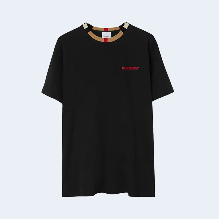 버버리 아이콘 스트라이프 트림 코튼 티셔츠 블랙