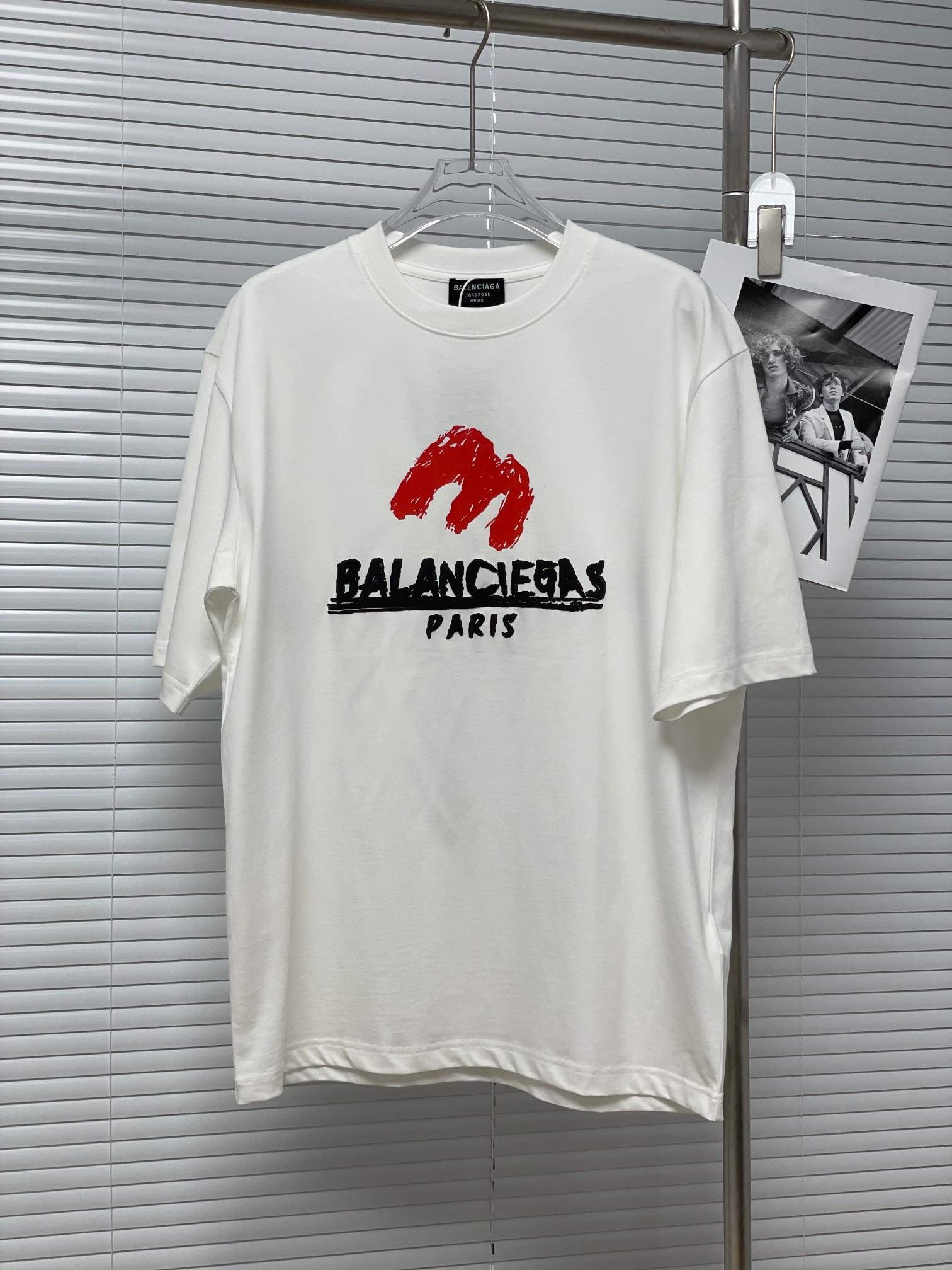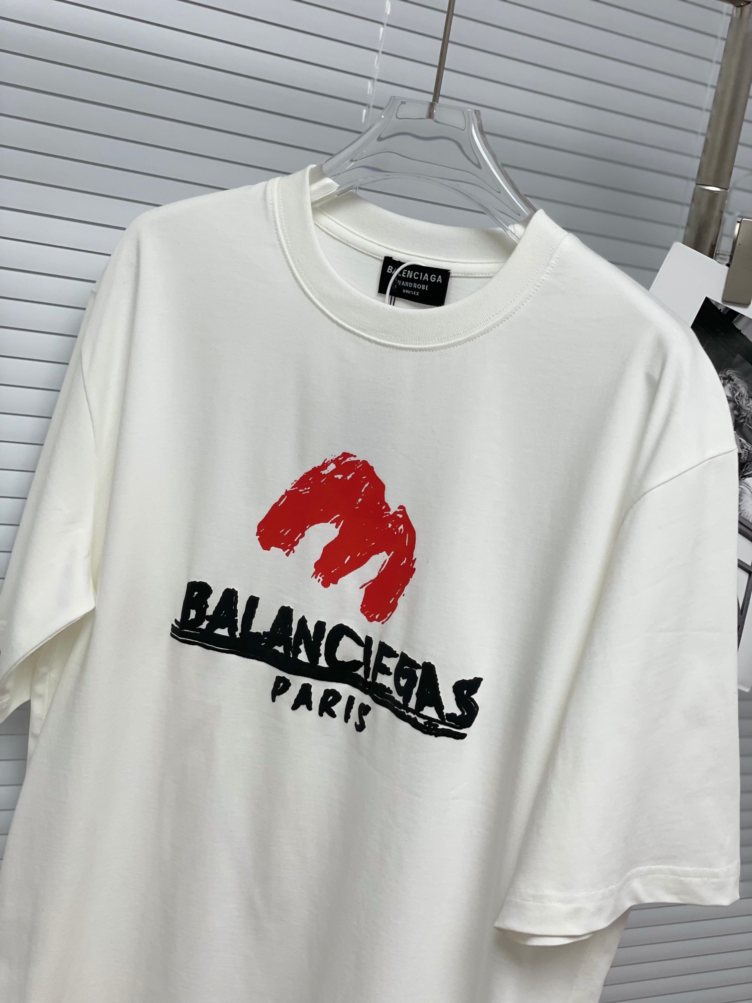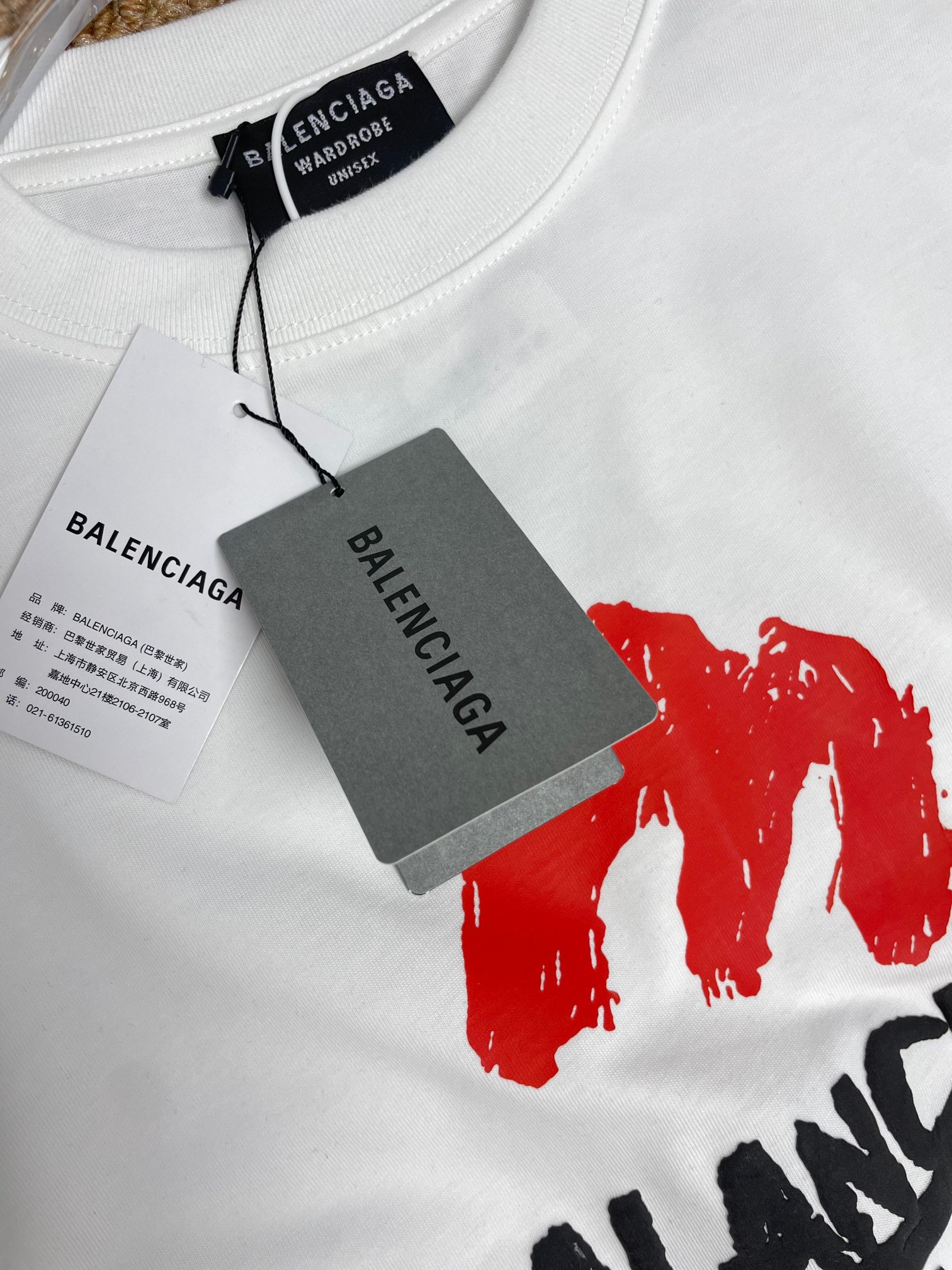 발렌시아가 우븐 프린트 레터 오버사이즈 티셔츠 화이트