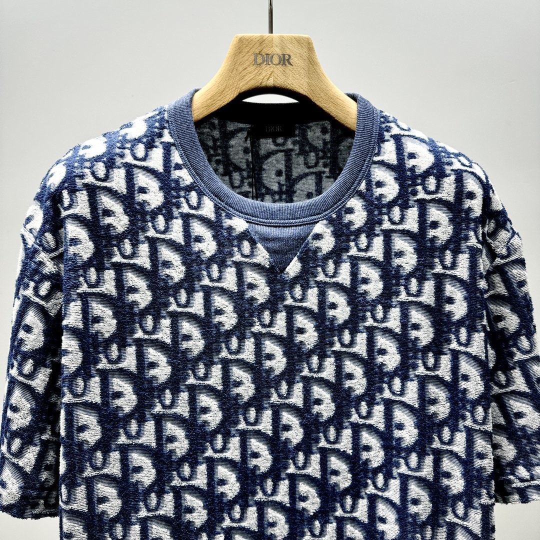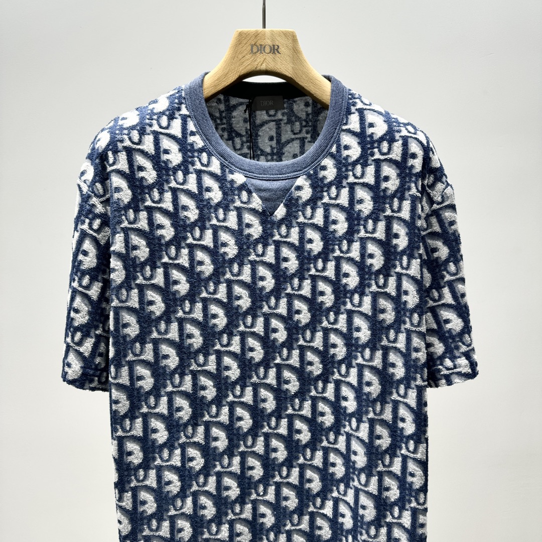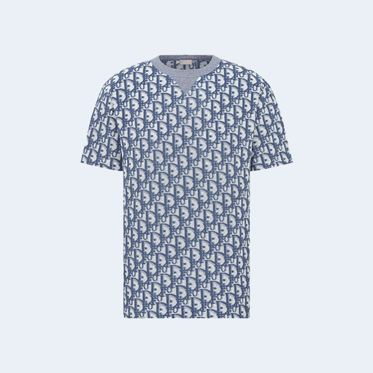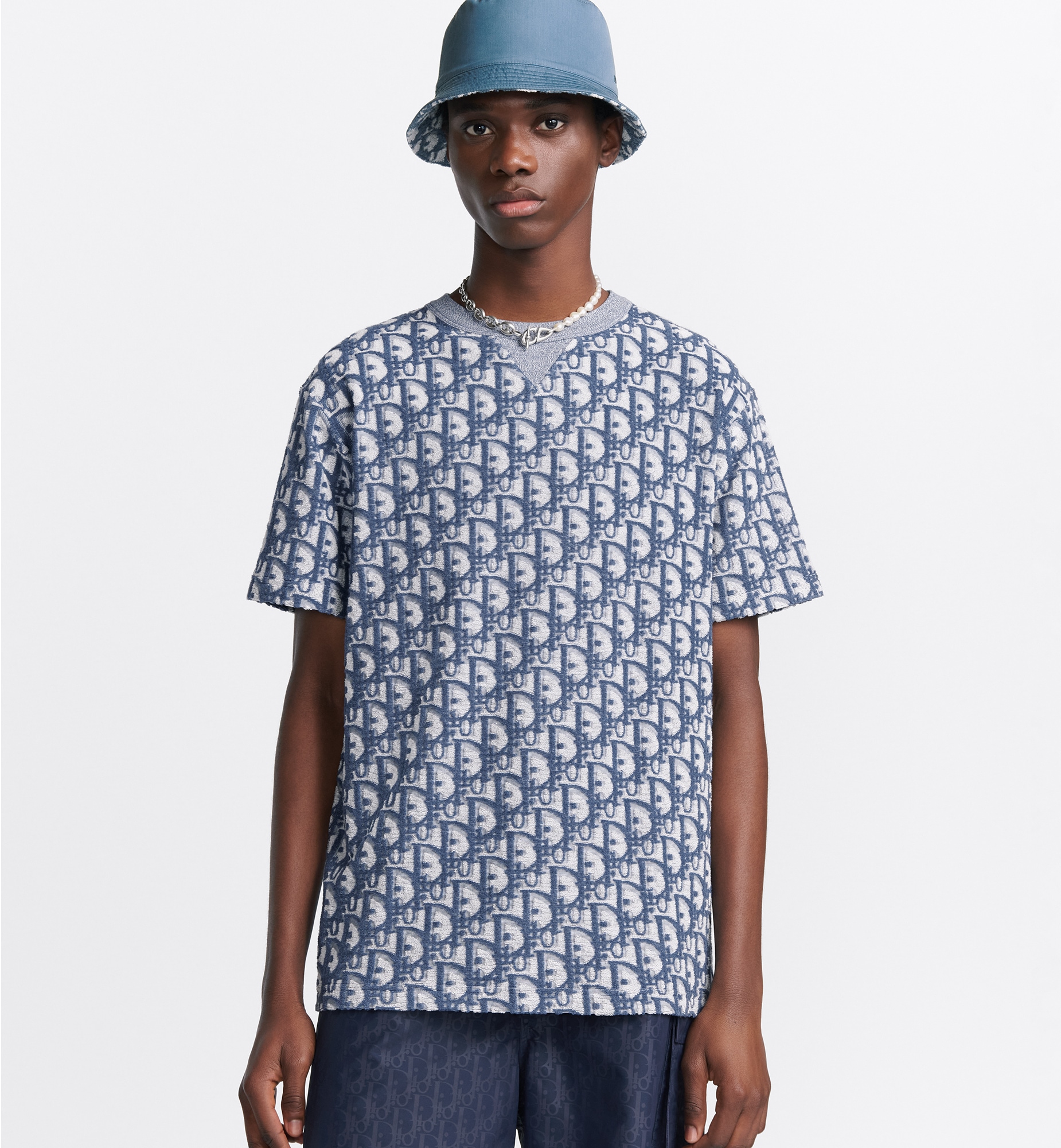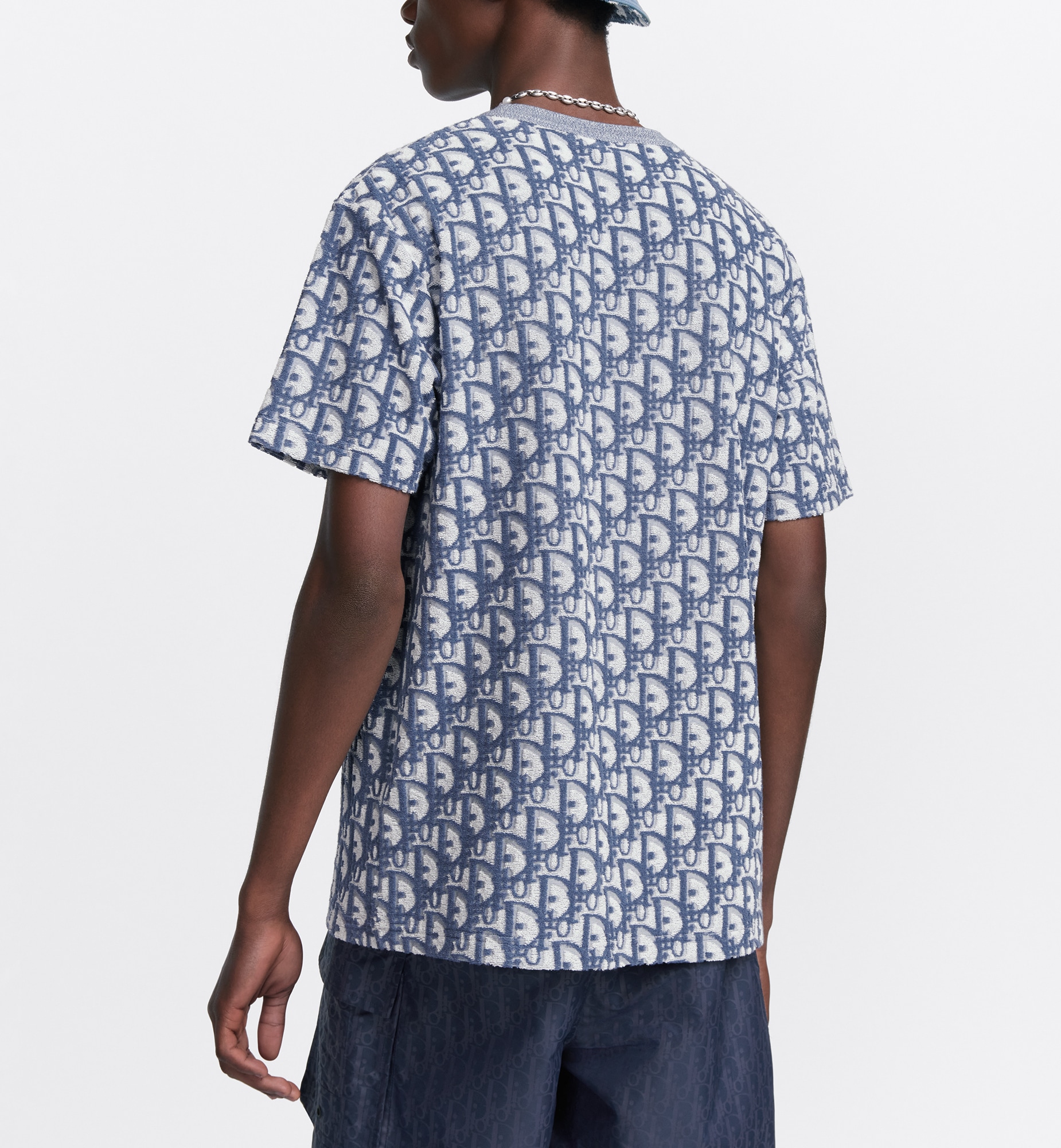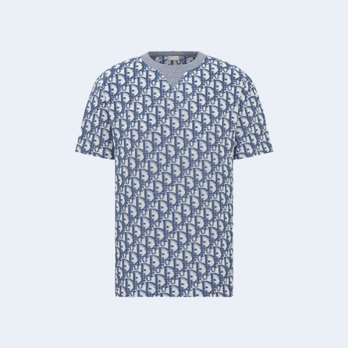 디올 오블리크 테리 코튼 저지 캐주얼 핏 티셔츠 블루