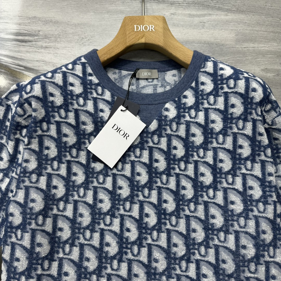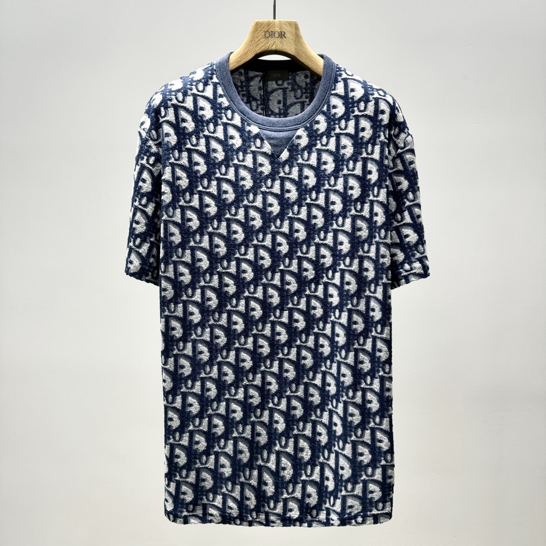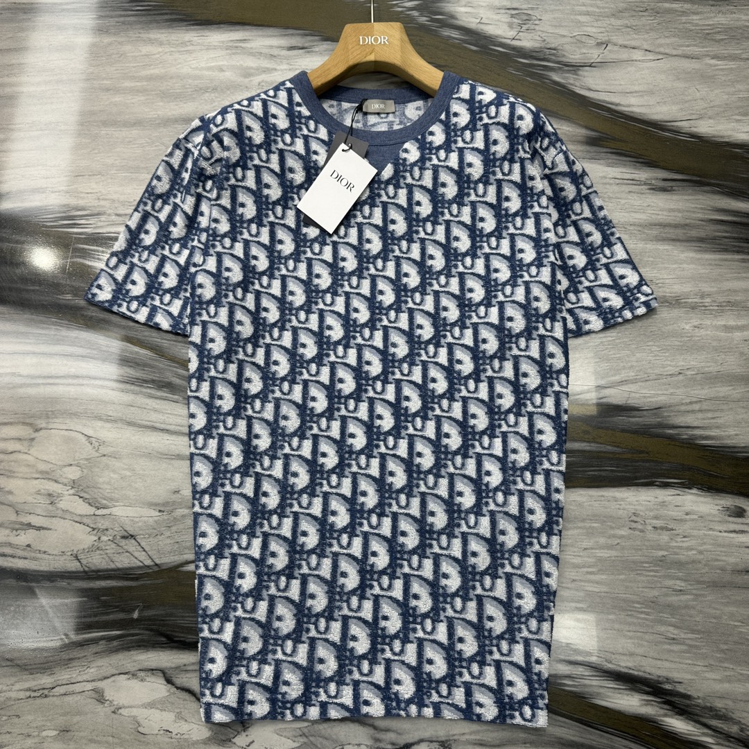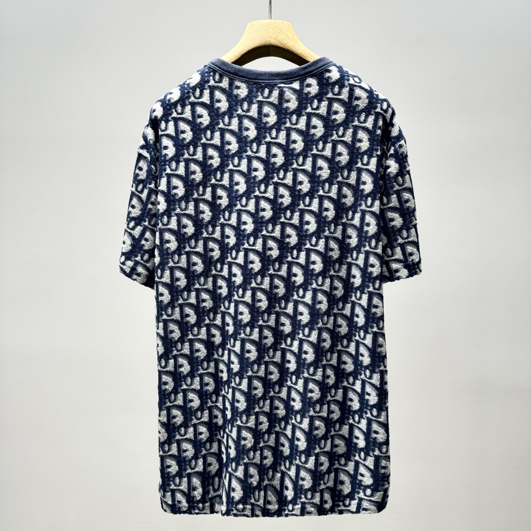 디올 오블리크 테리 코튼 저지 캐주얼 핏 티셔츠 블루
