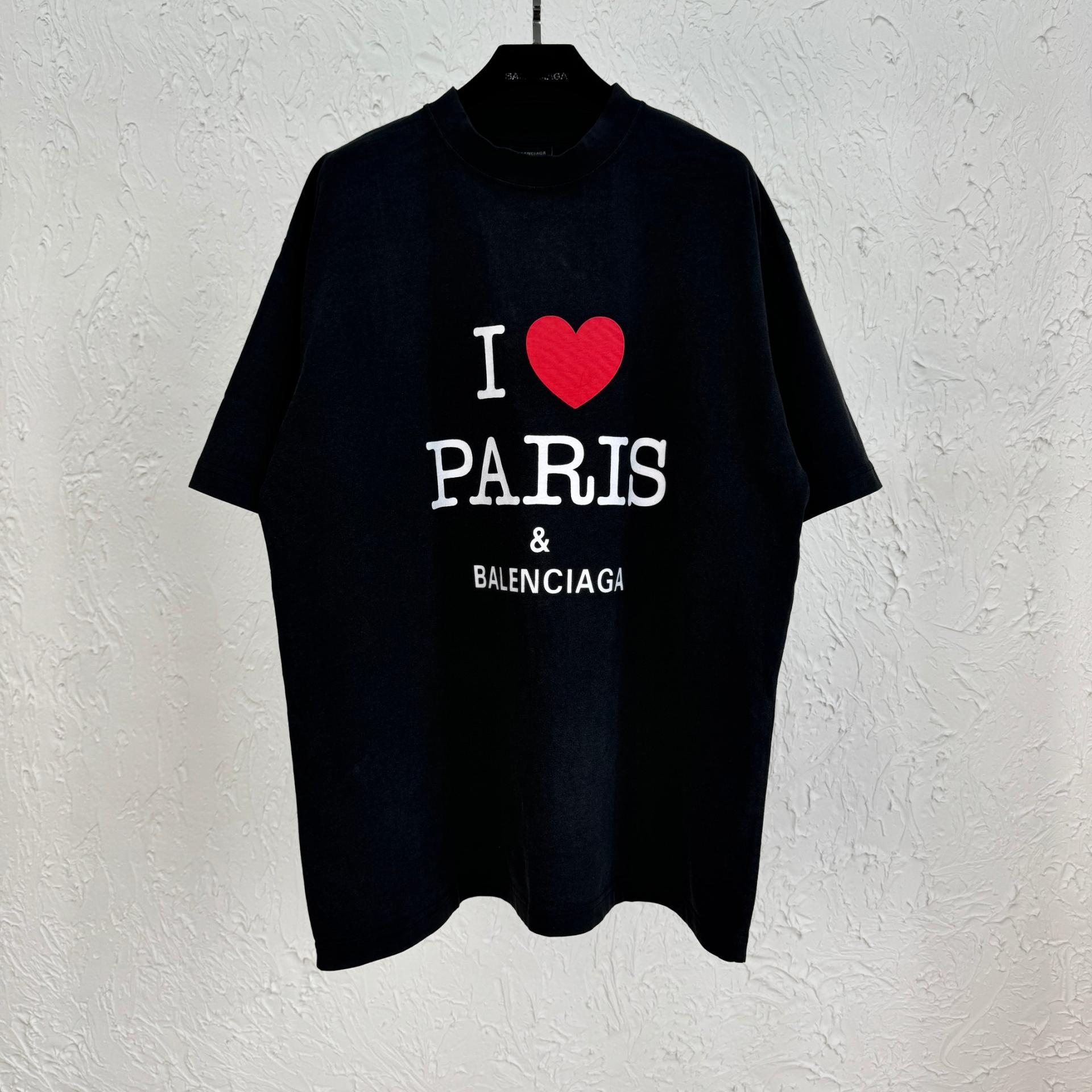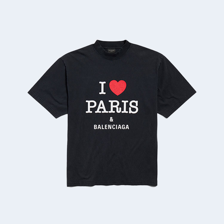 발렌시아가 아이 러브 파리 & 오버사이즈 티셔츠 블랙