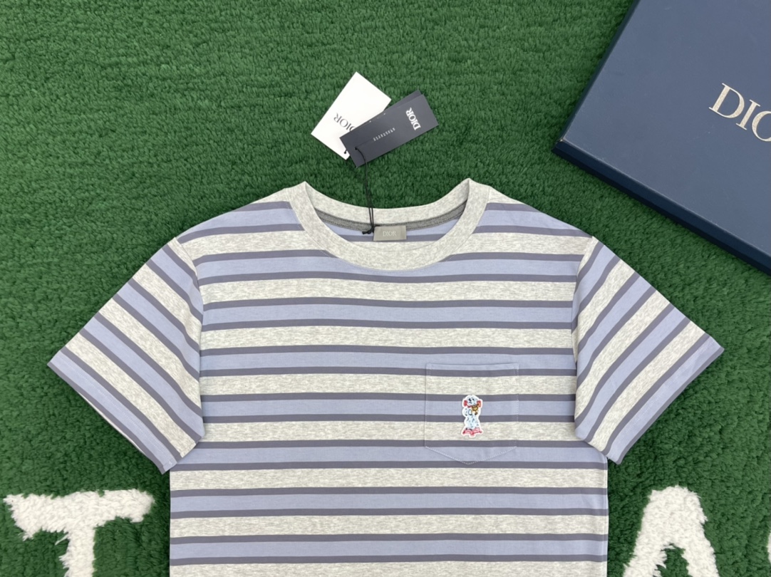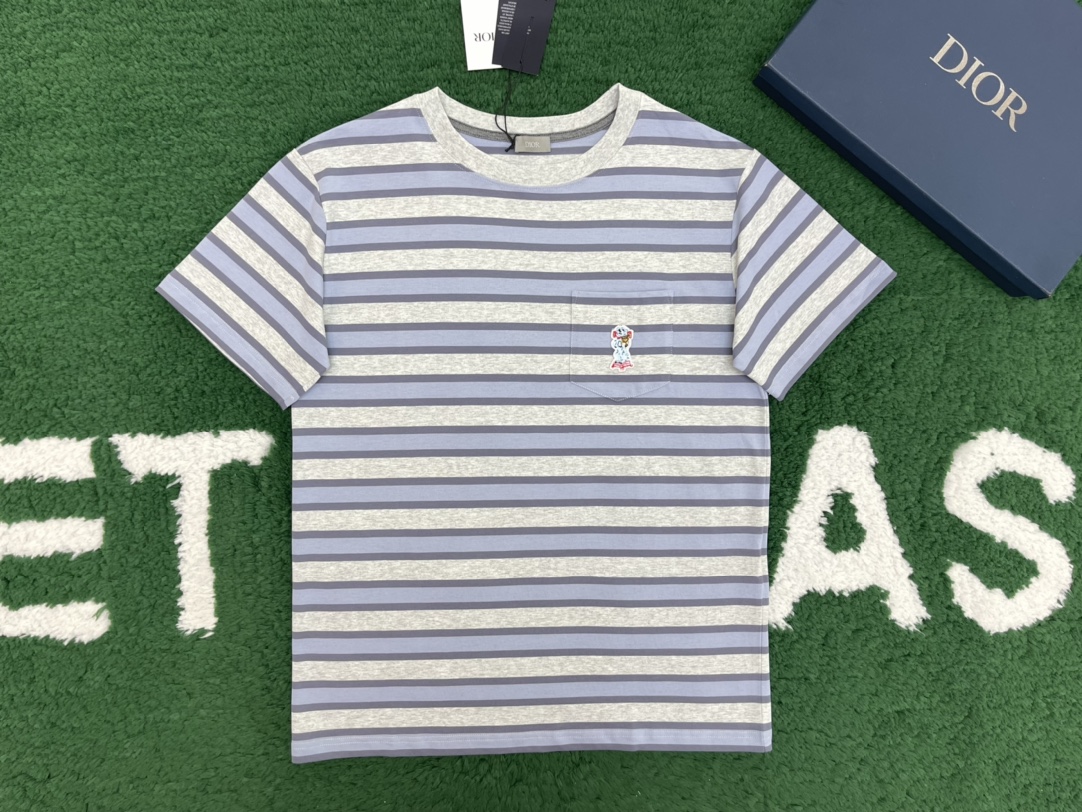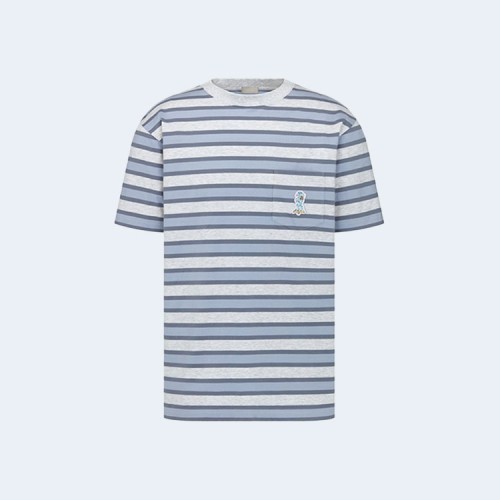 디올 이탈릭 티셔츠 블루 코튼 브렌드 티셔츠 그린