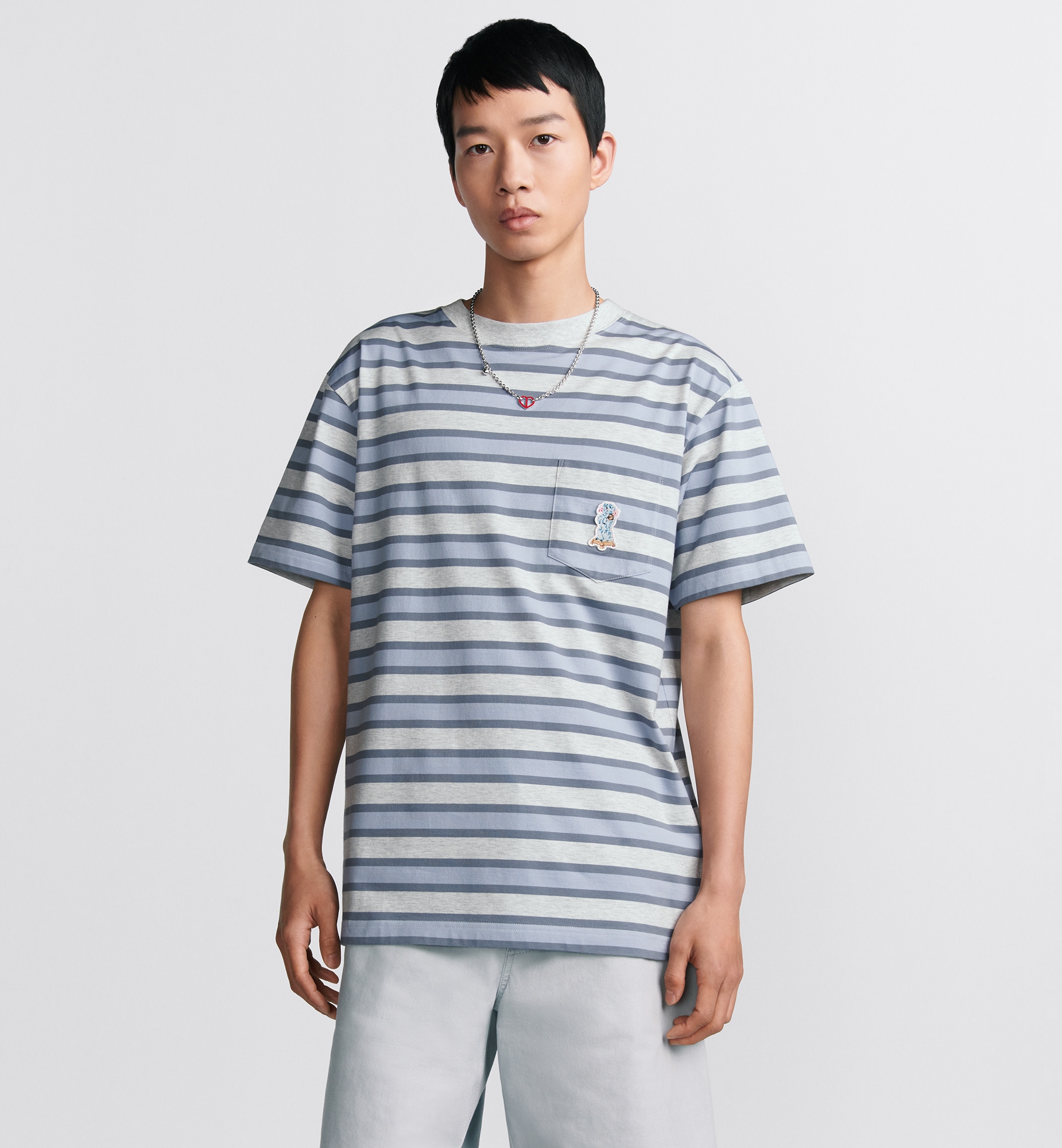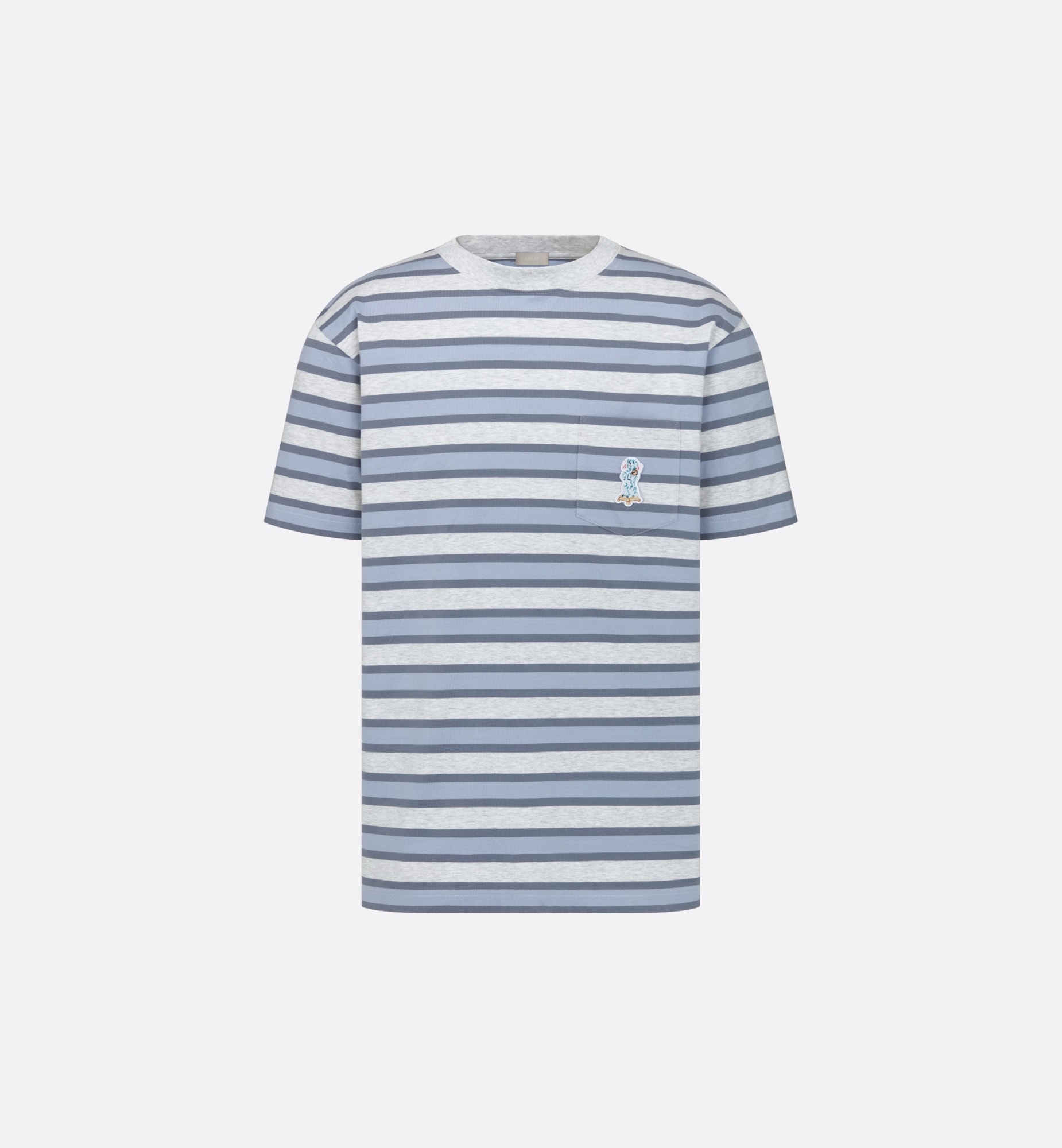 디올 꿀벌 자수 화이트 코튼 저지 티셔츠