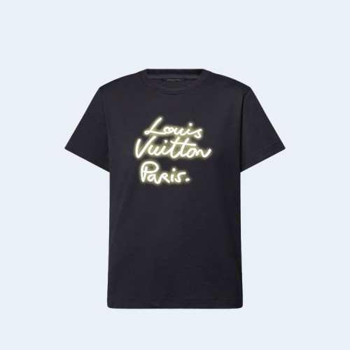 루이비통 그래픽 자카드 쇼트 슬리브드 크루넥 티셔츠