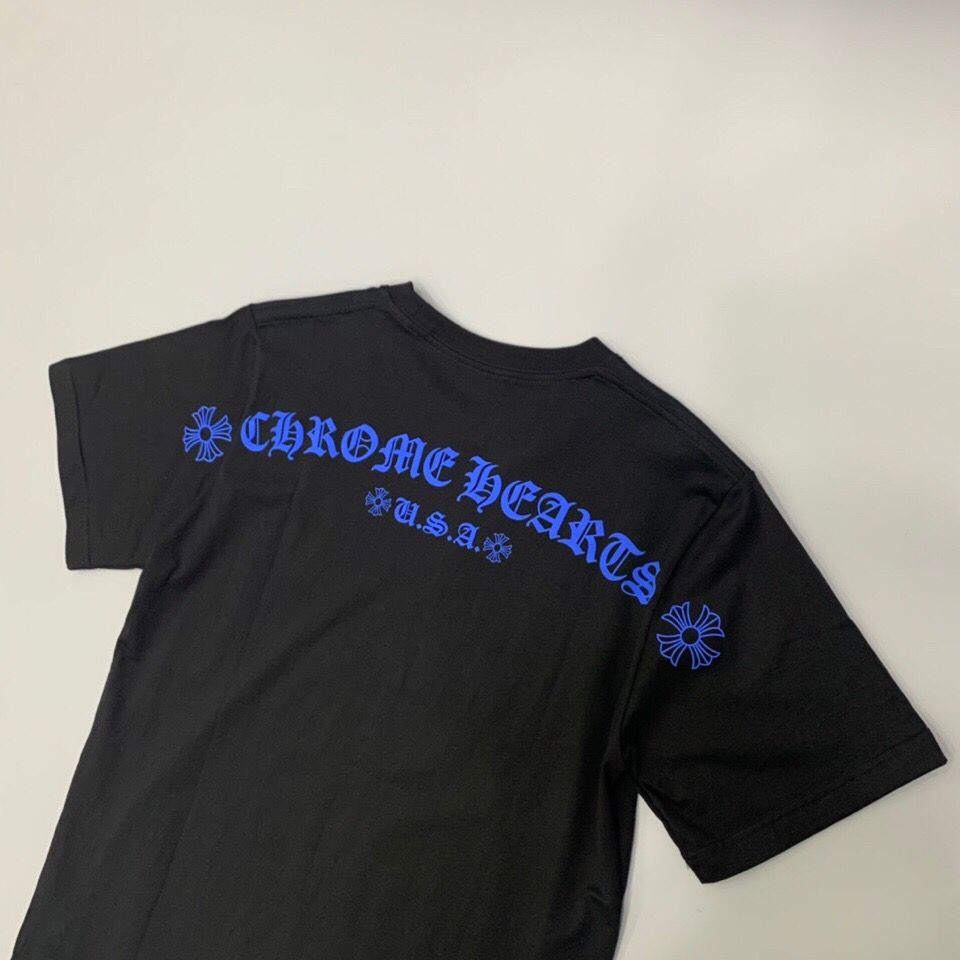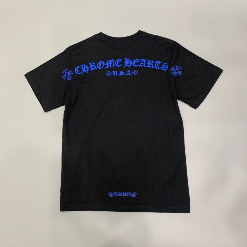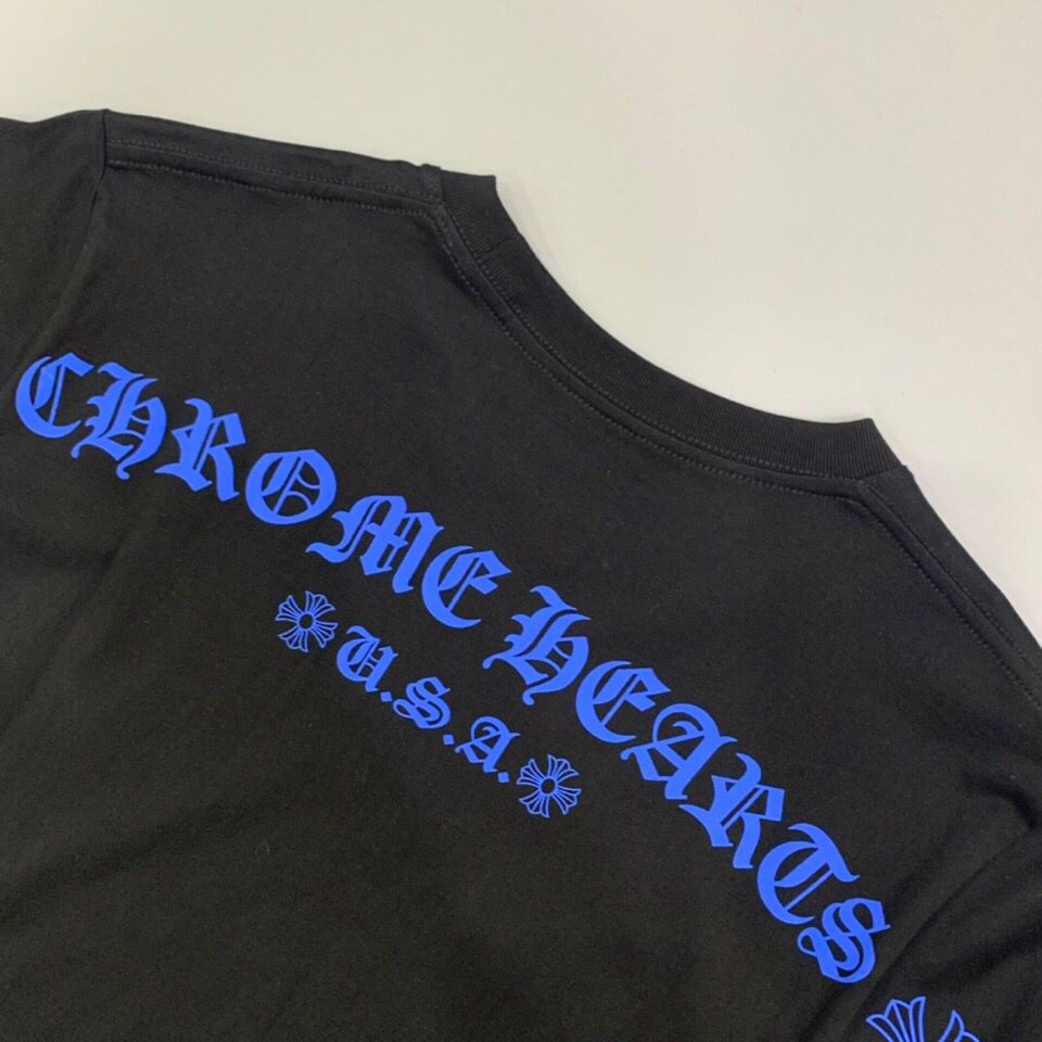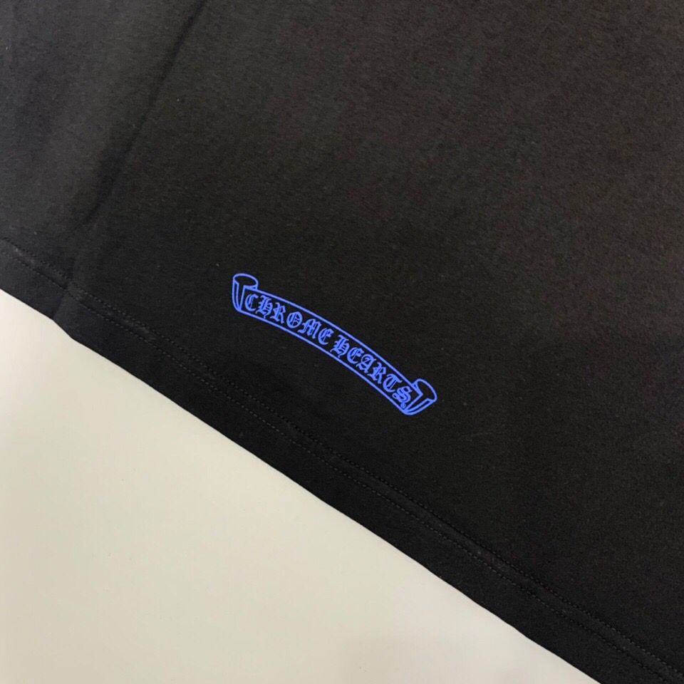 크롬하츠 산스크리트 홀스슈 십자 프린트 블루 레터 티셔츠