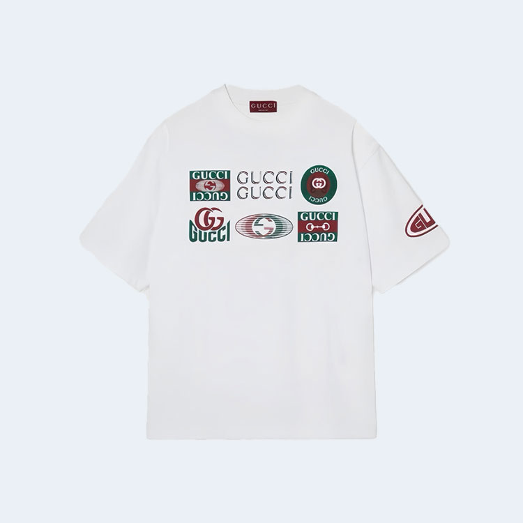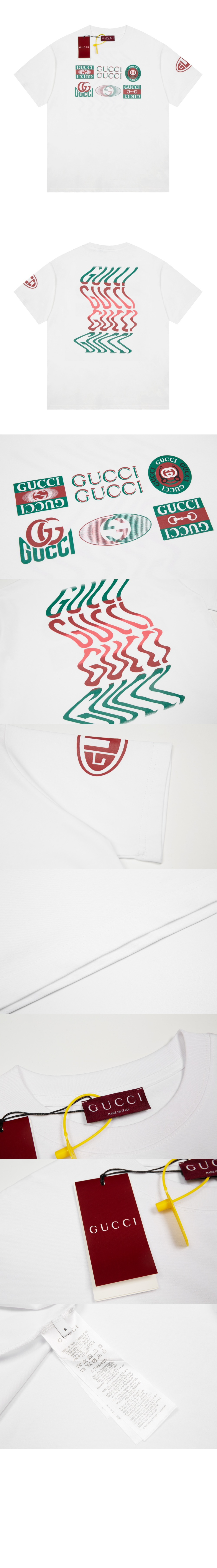 구찌 프린트 핑크 로고 코튼 저지 티셔츠 블랙