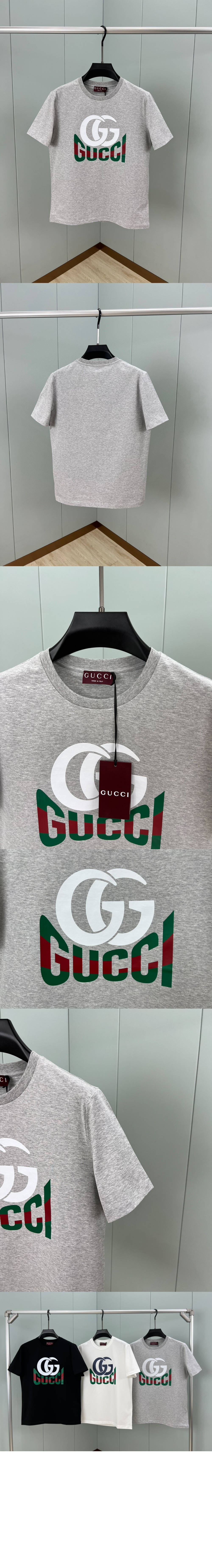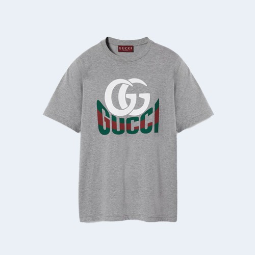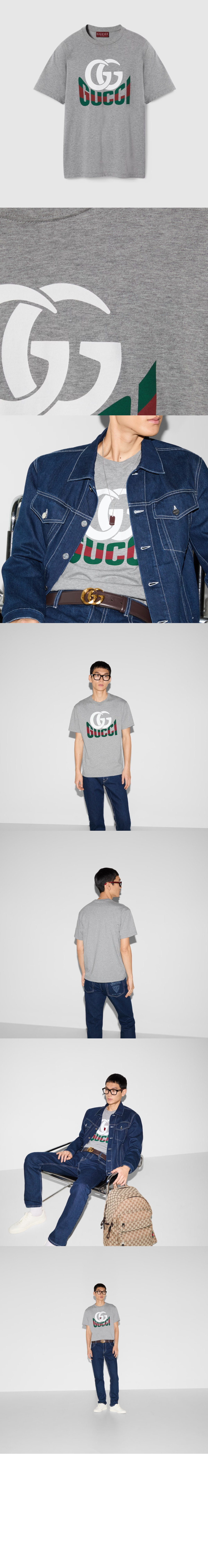 구찌 프린트 코튼 저지 티셔츠 그레이