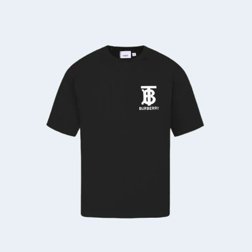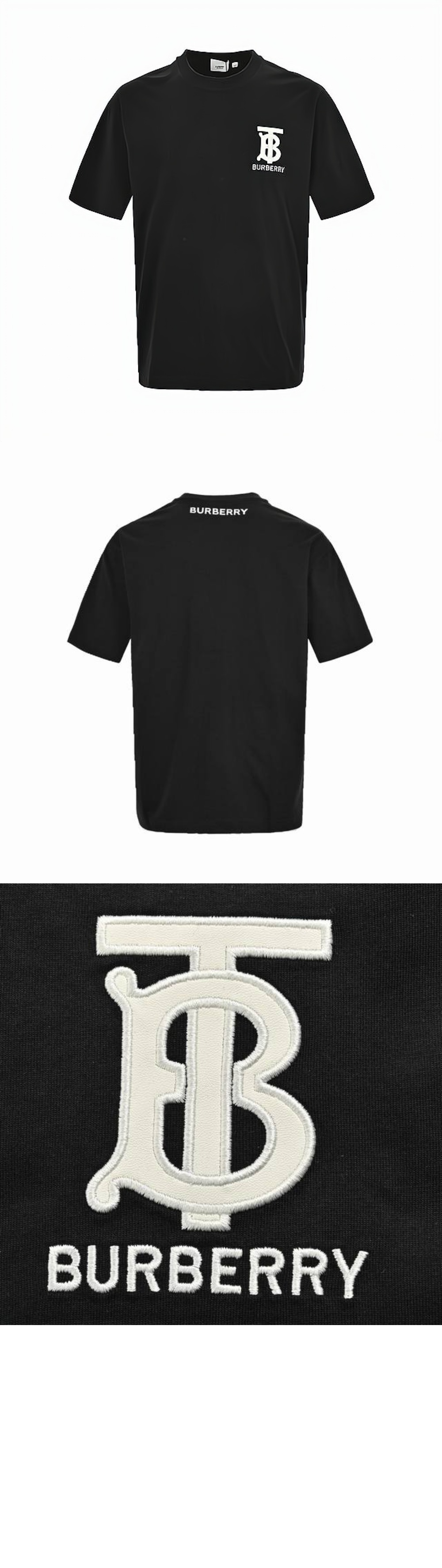 버버리 체크 트리밍 코튼 티셔츠 블랙