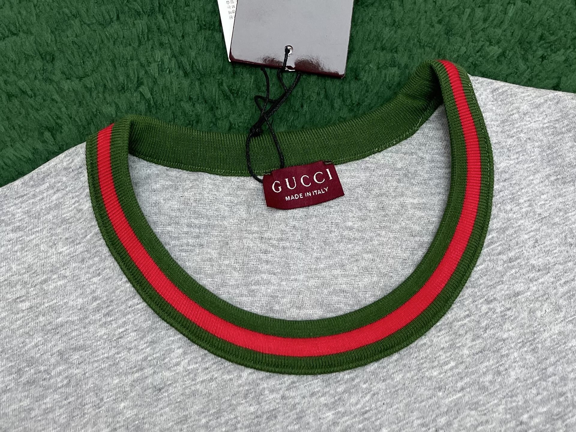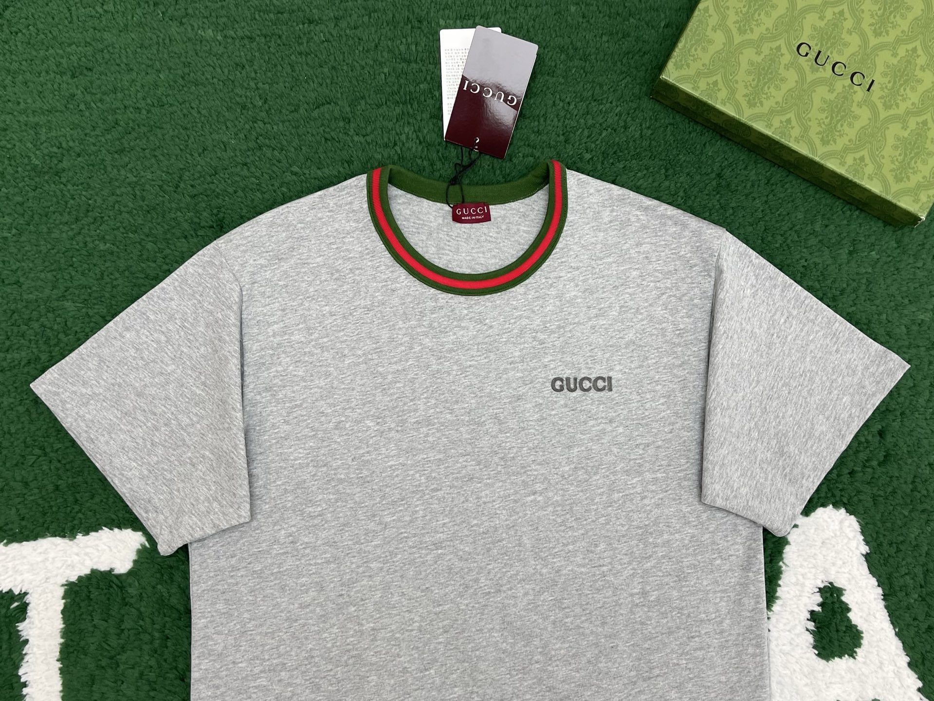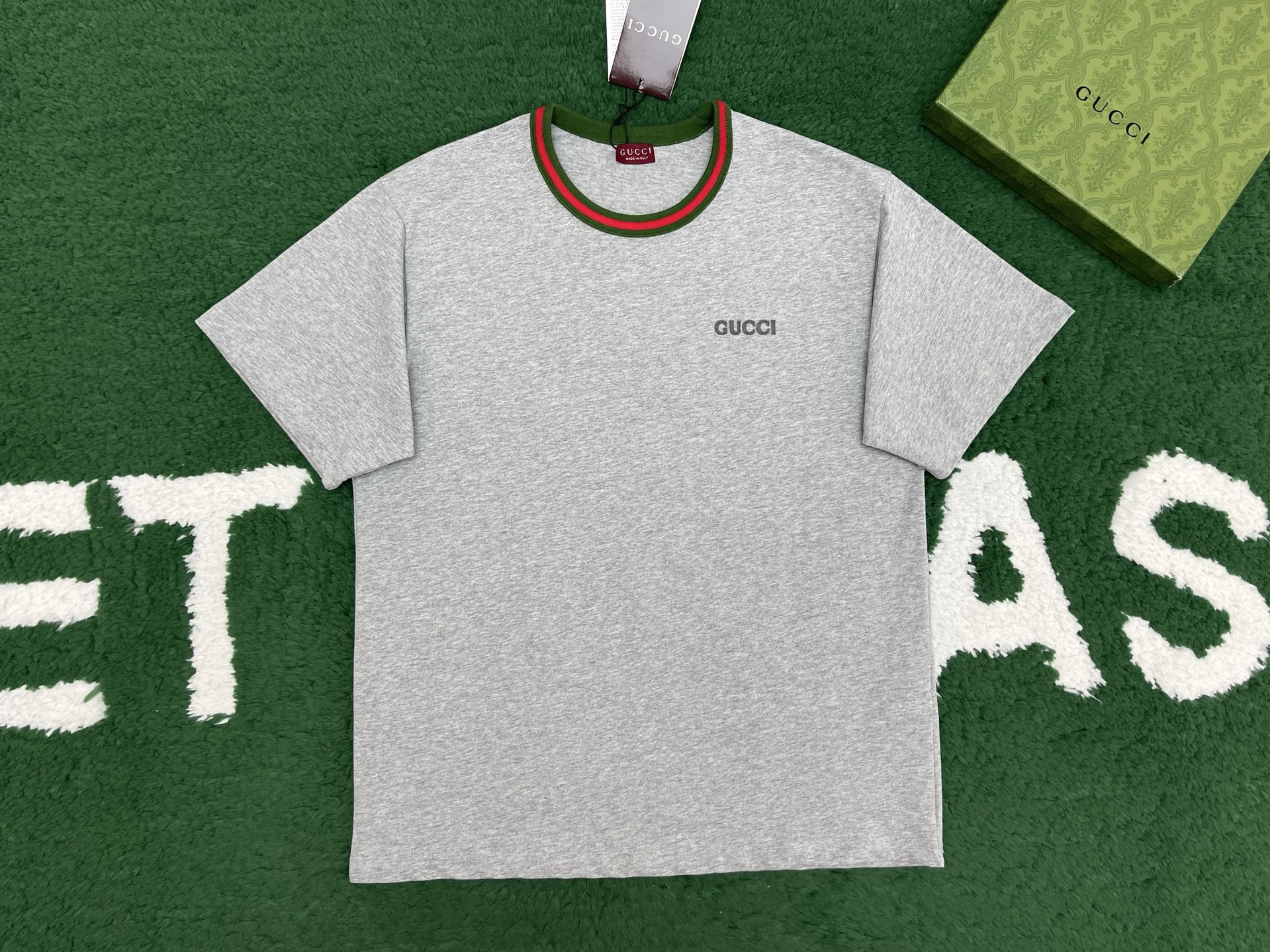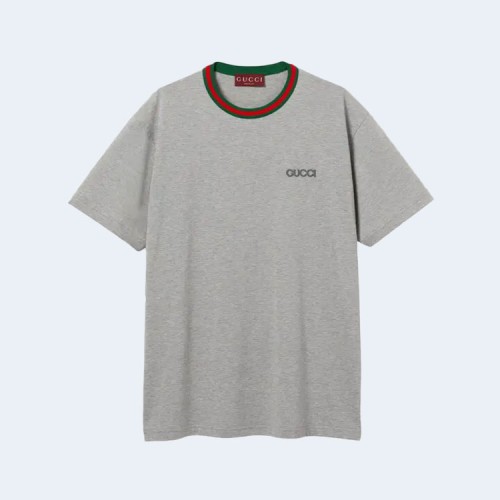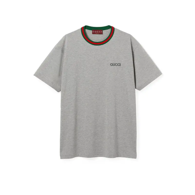 구찌 넥 파이핑 그레이 로고 티셔츠