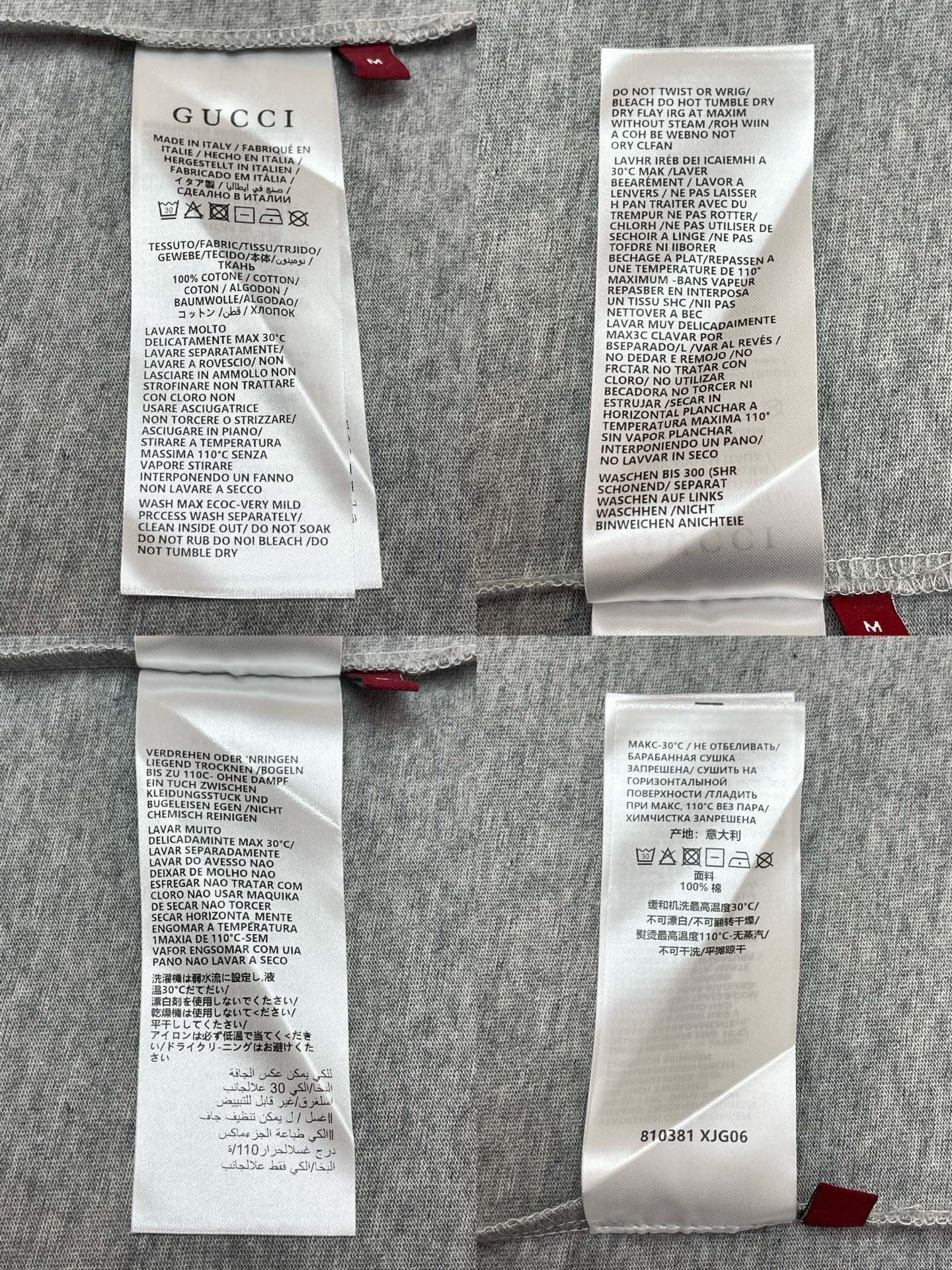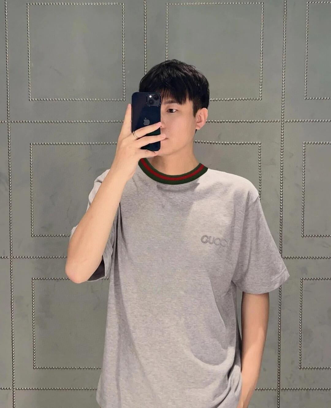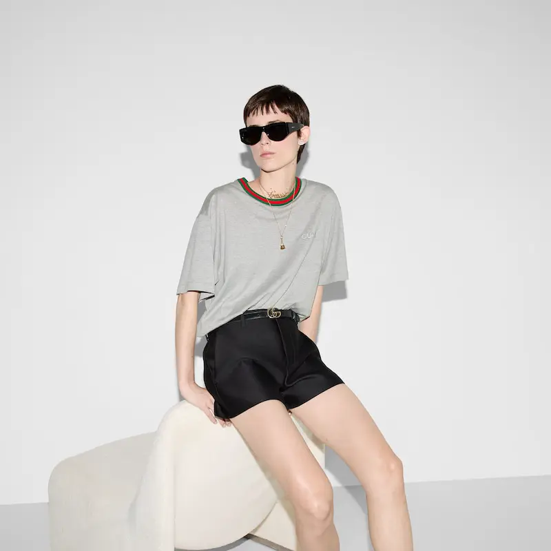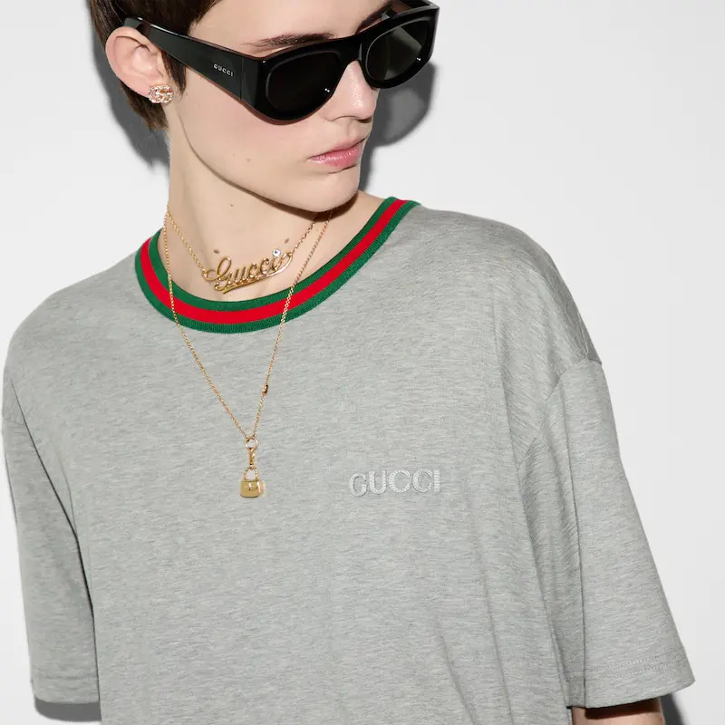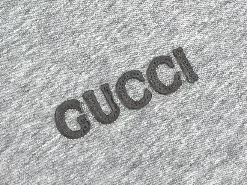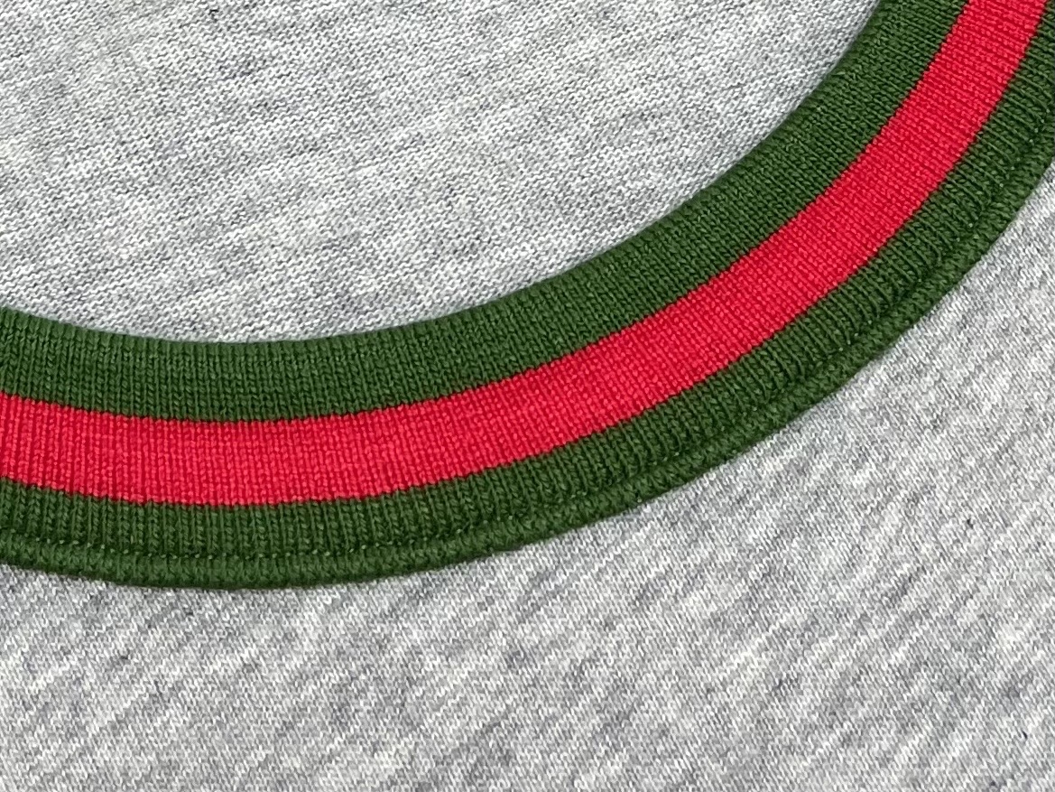 구찌 넥 파이핑 그레이 로고 티셔츠