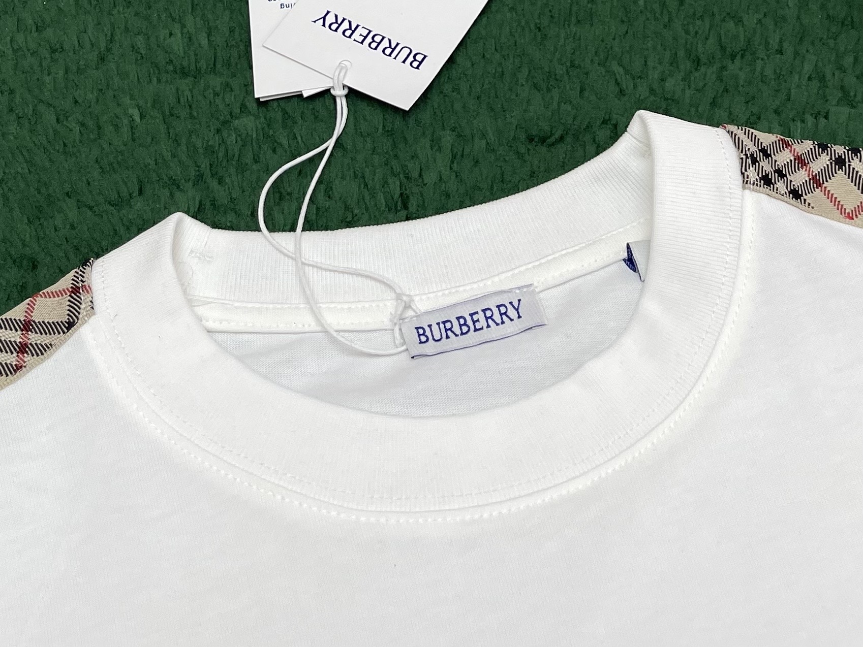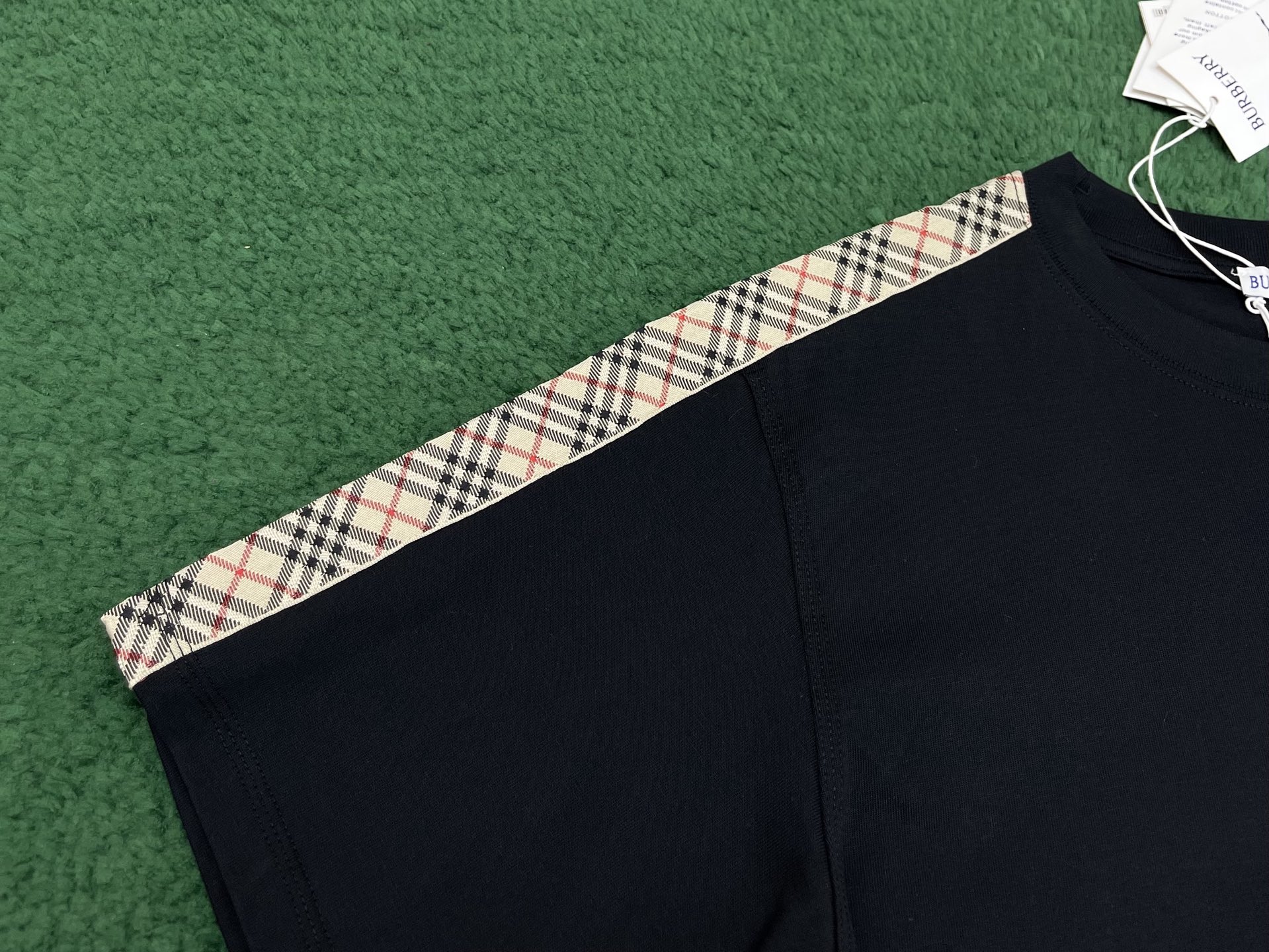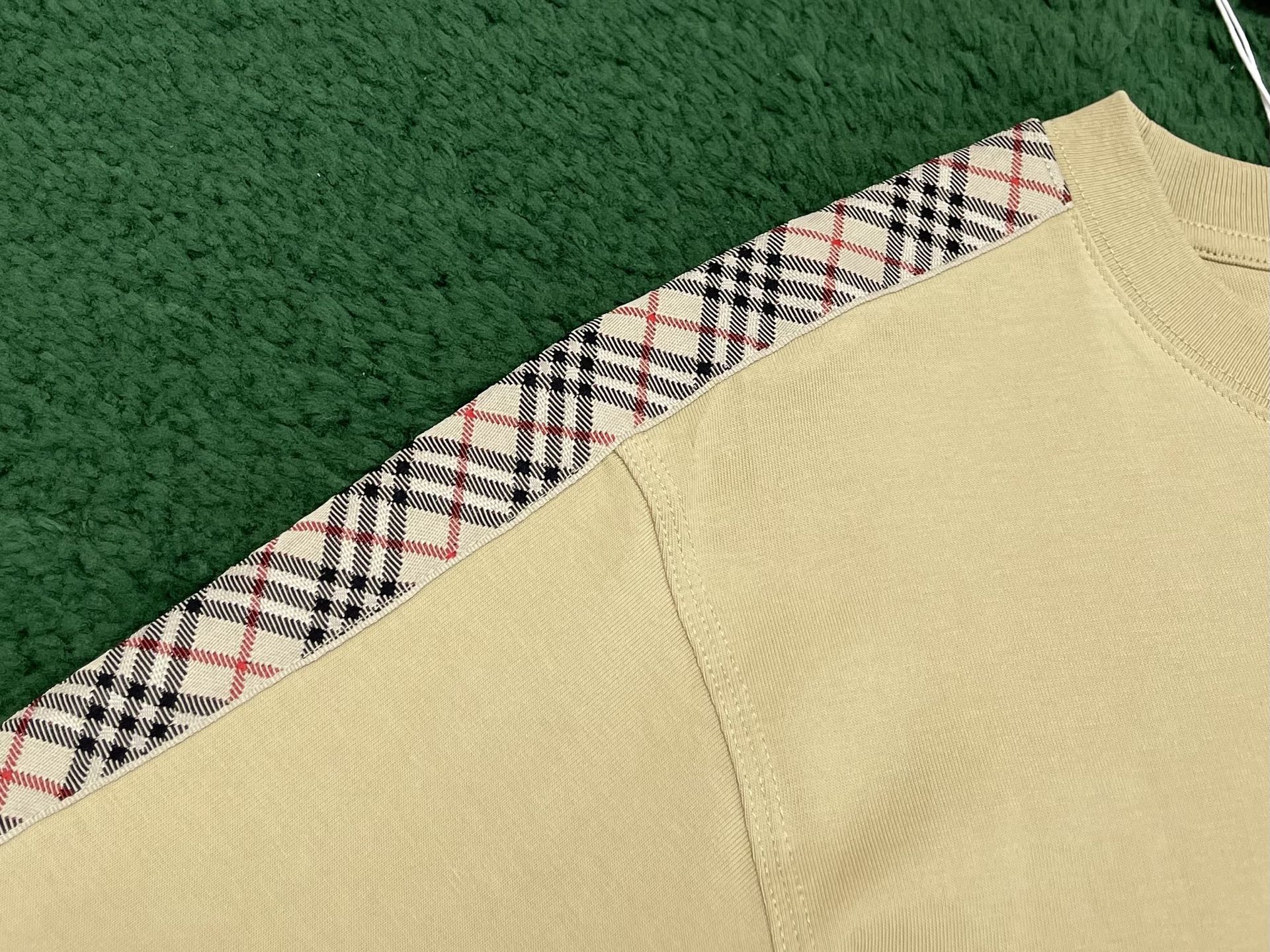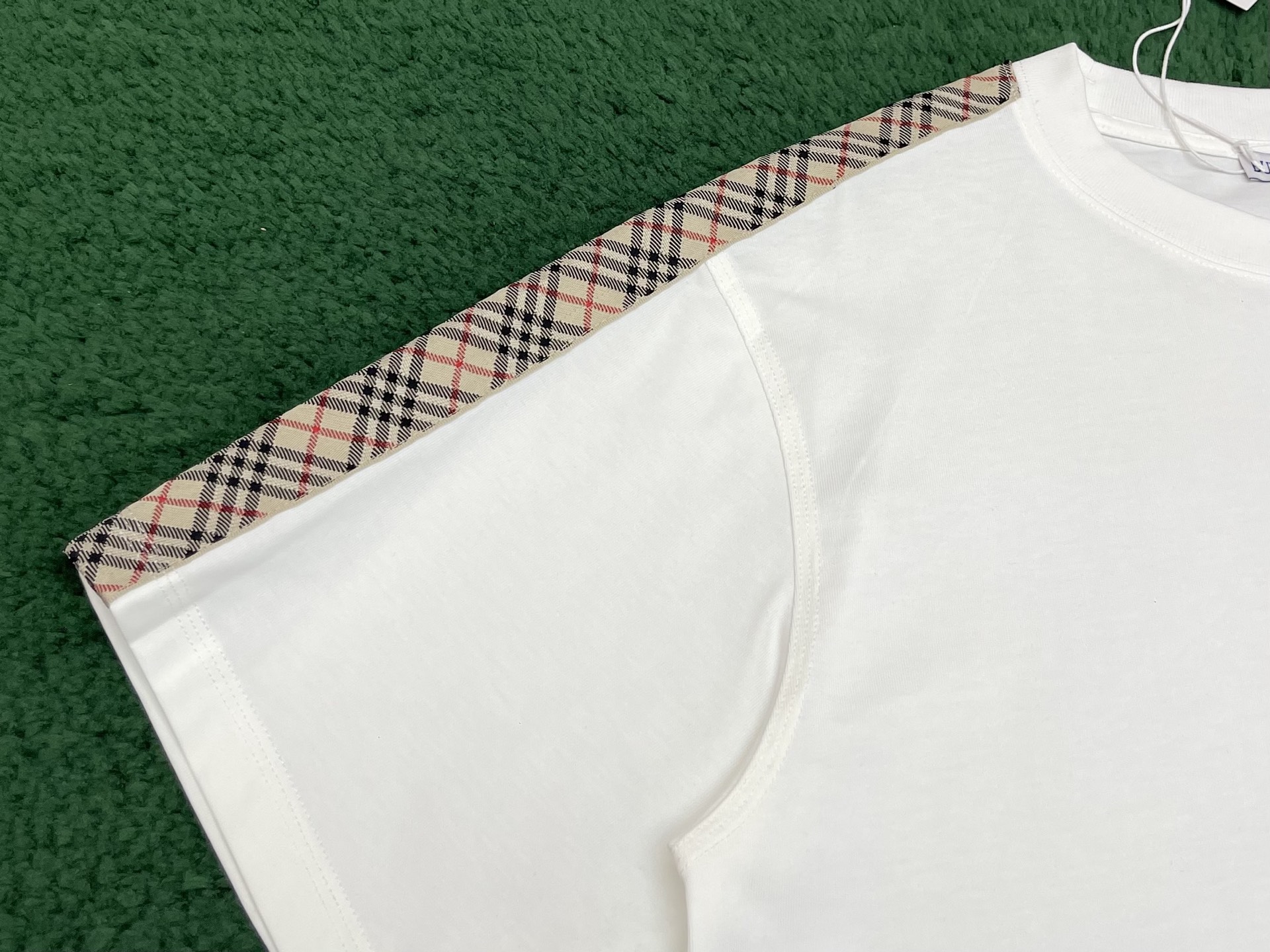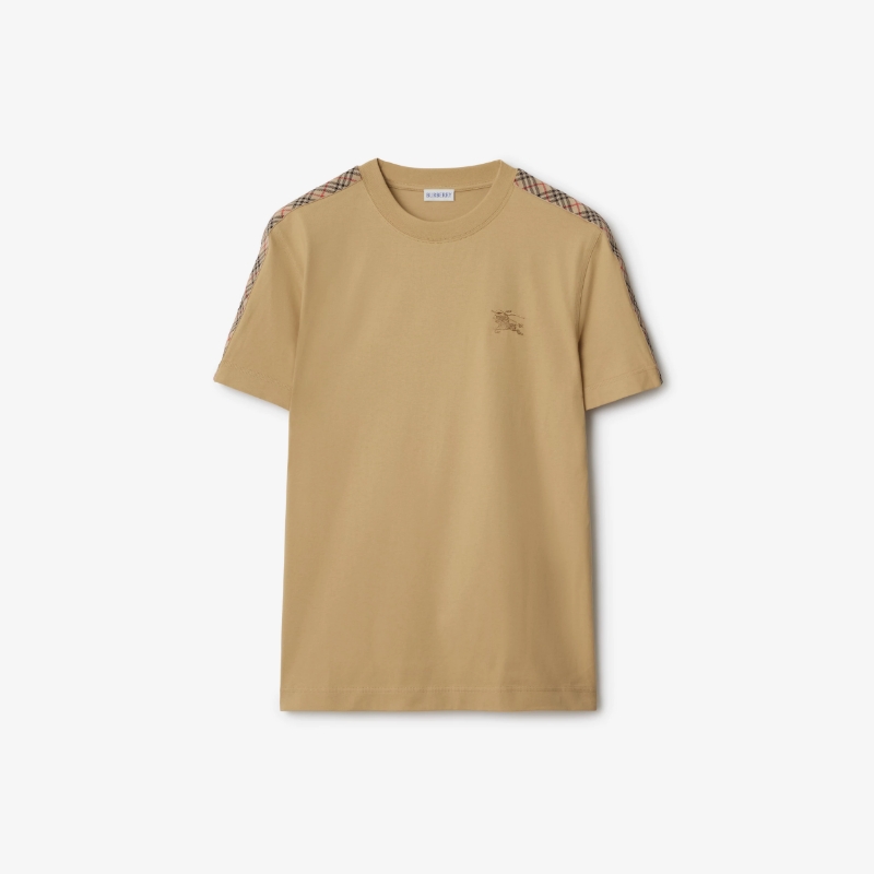 버버리 체크 트리밍 코튼 티셔츠 3COLOR (BEIGE) (BLACK) (WHITE)