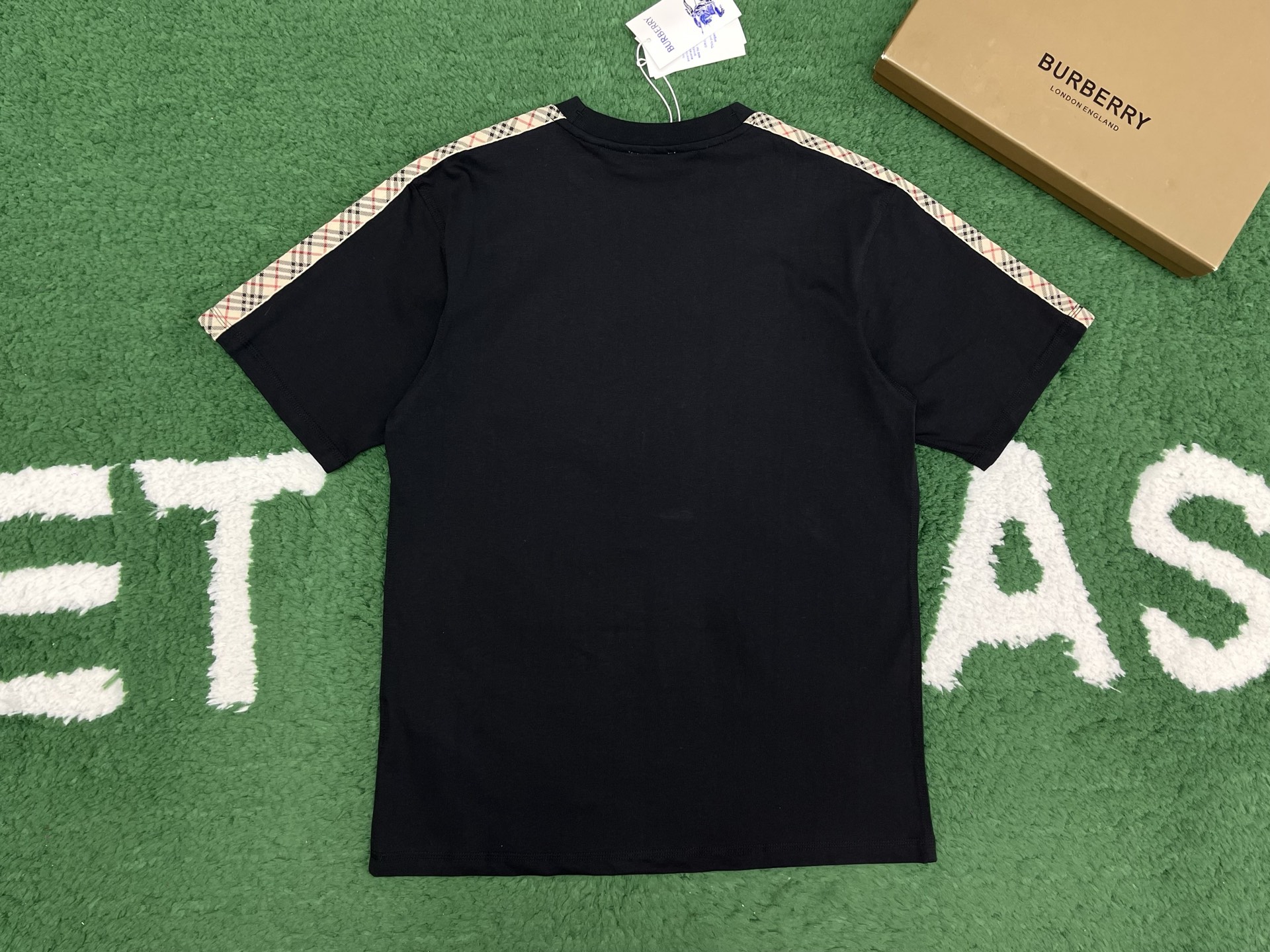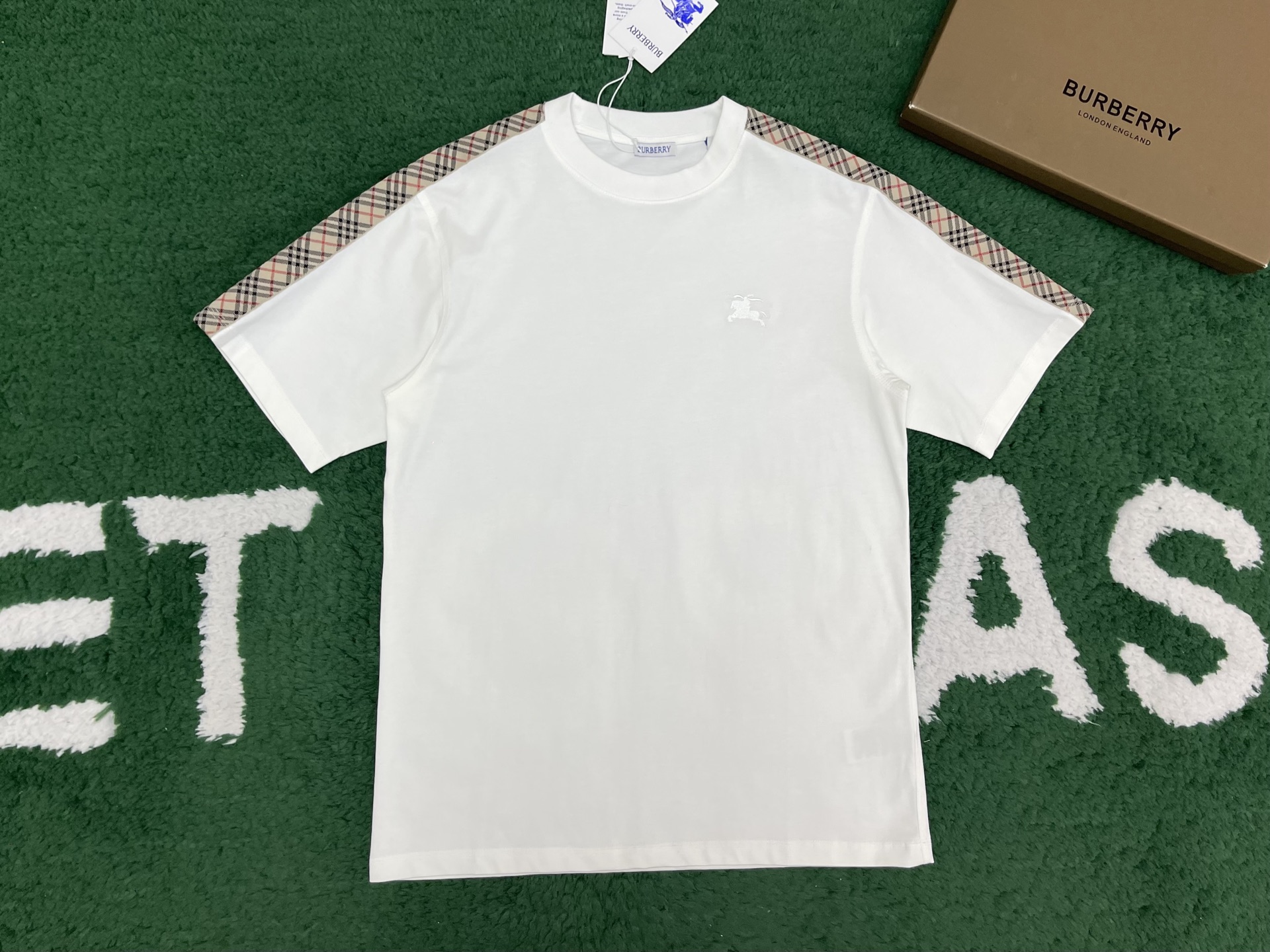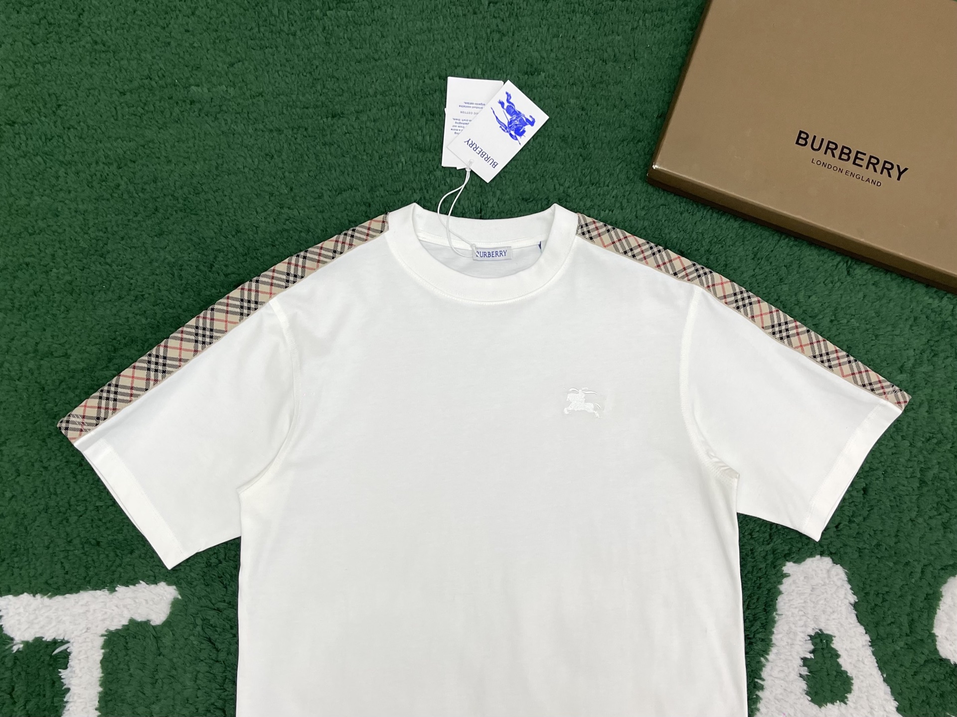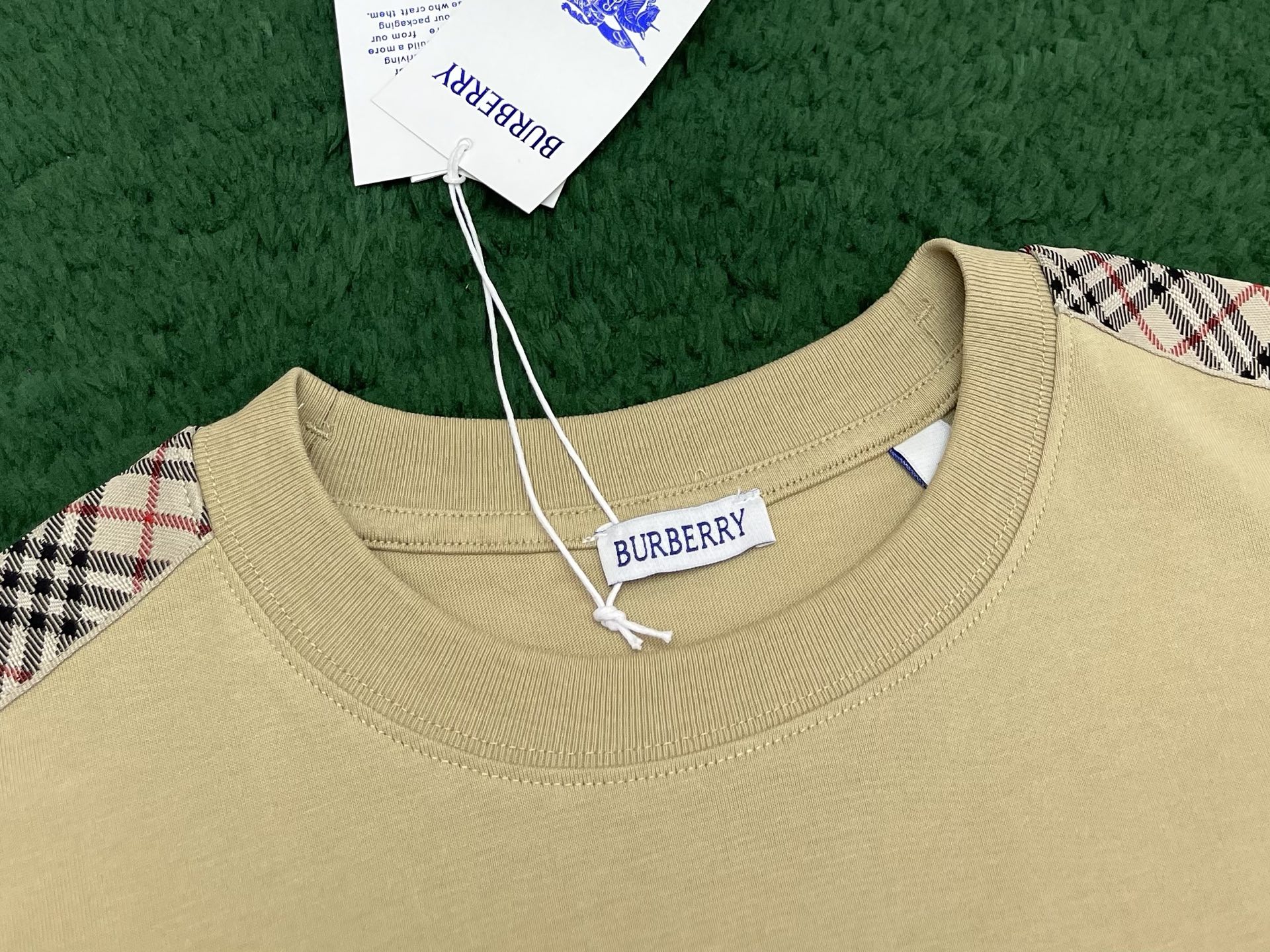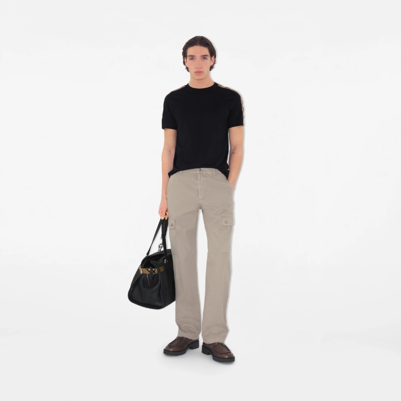 버버리 체크 트리밍 코튼 티셔츠 3COLOR (BEIGE) (BLACK) (WHITE)