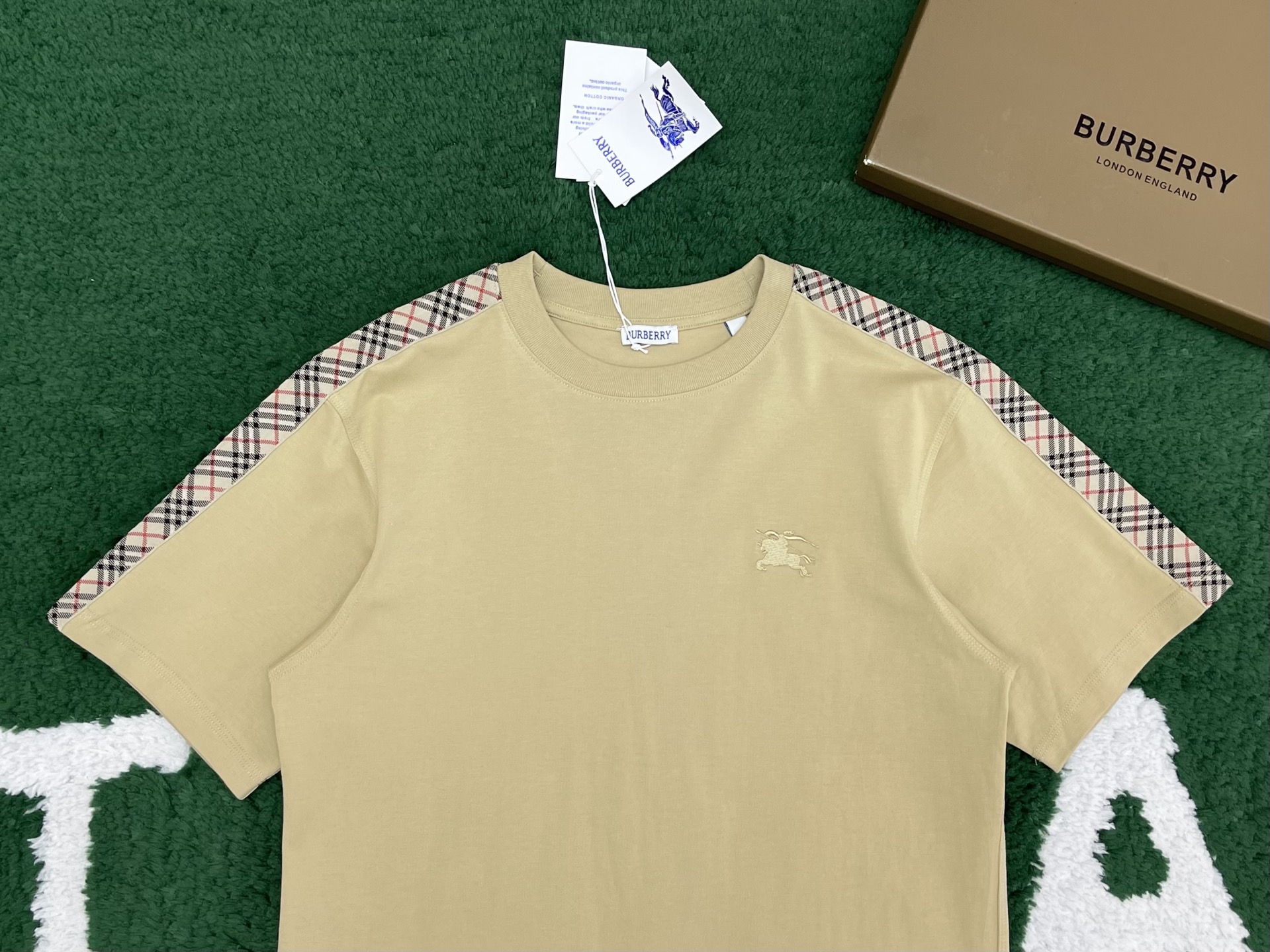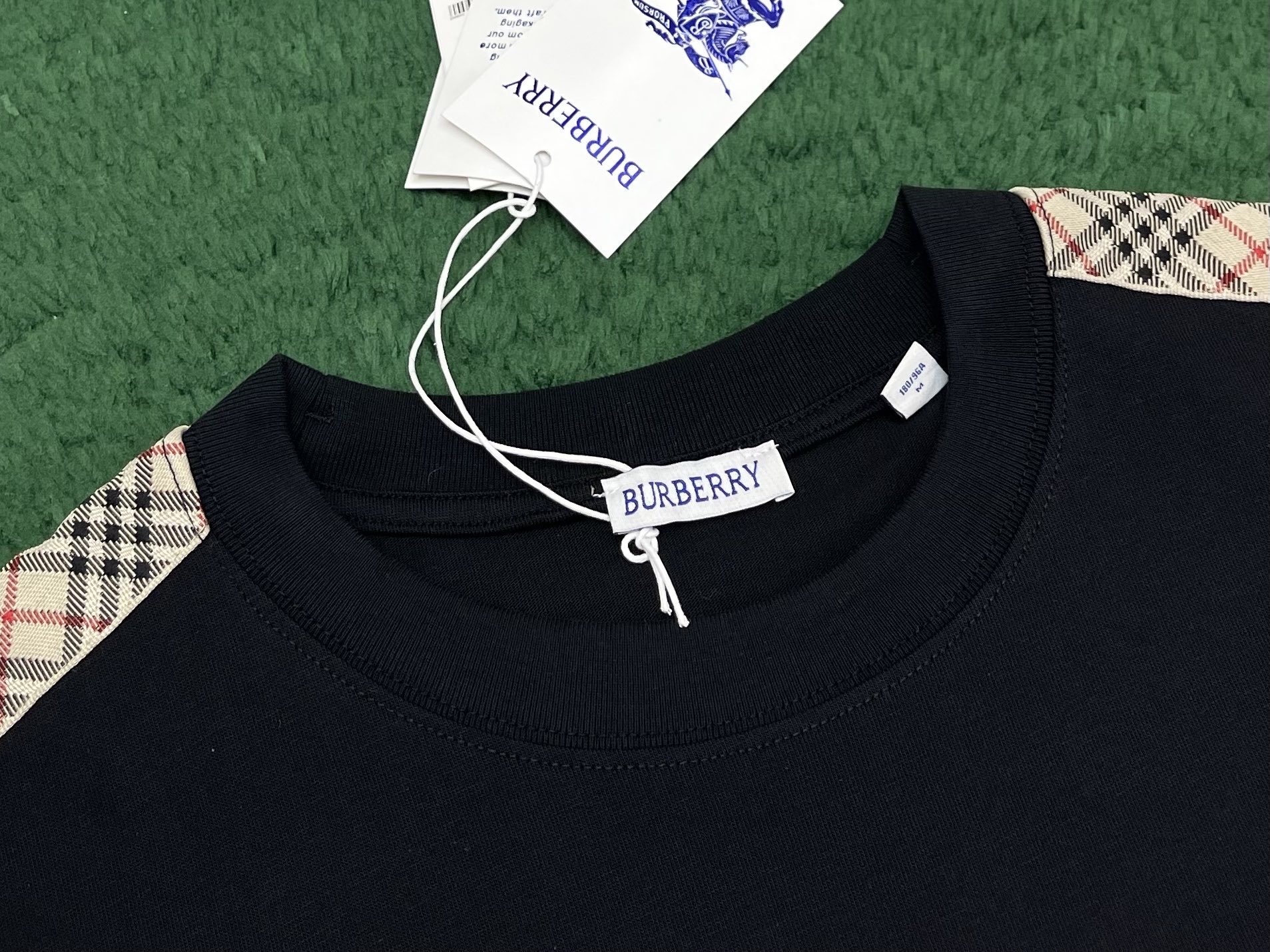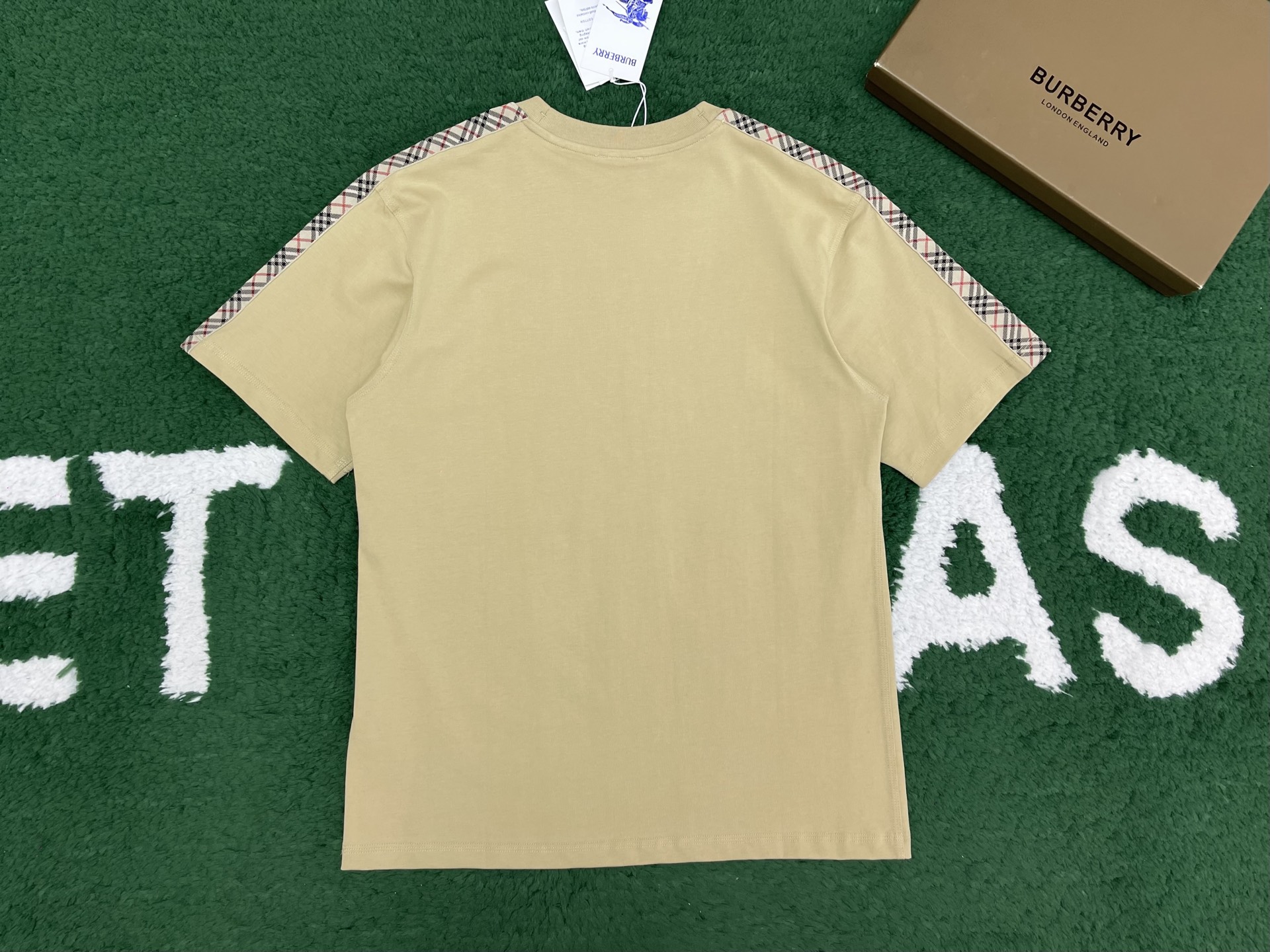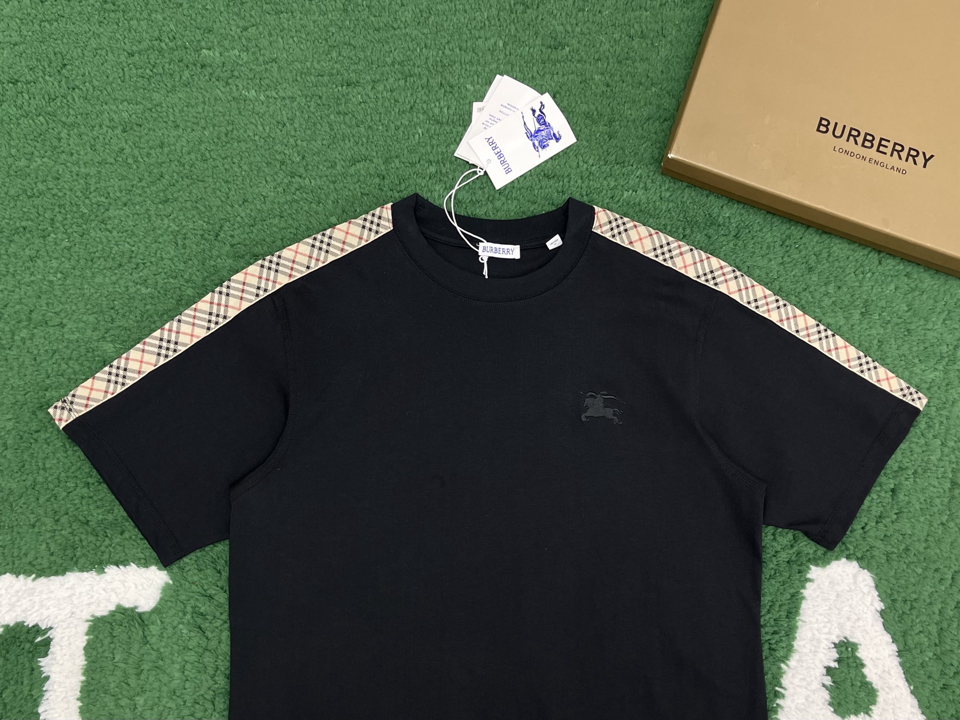 버버리 체크 트리밍 코튼 티셔츠 3COLOR (BEIGE) (BLACK) (WHITE)