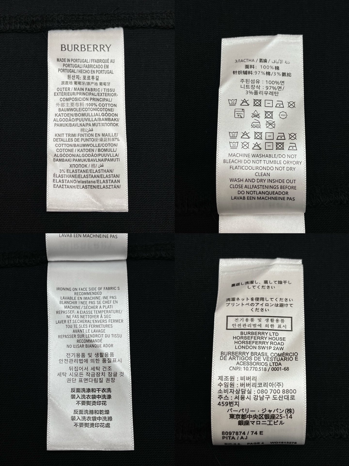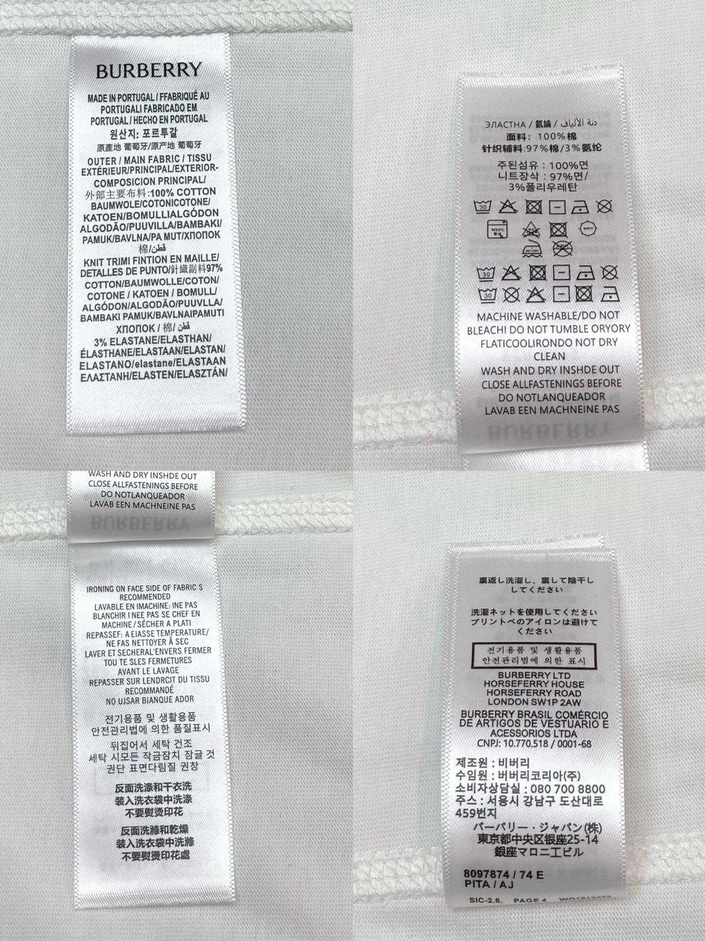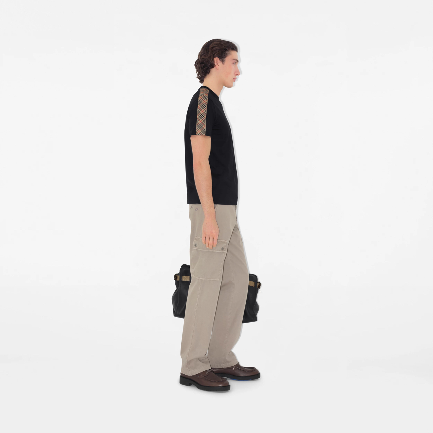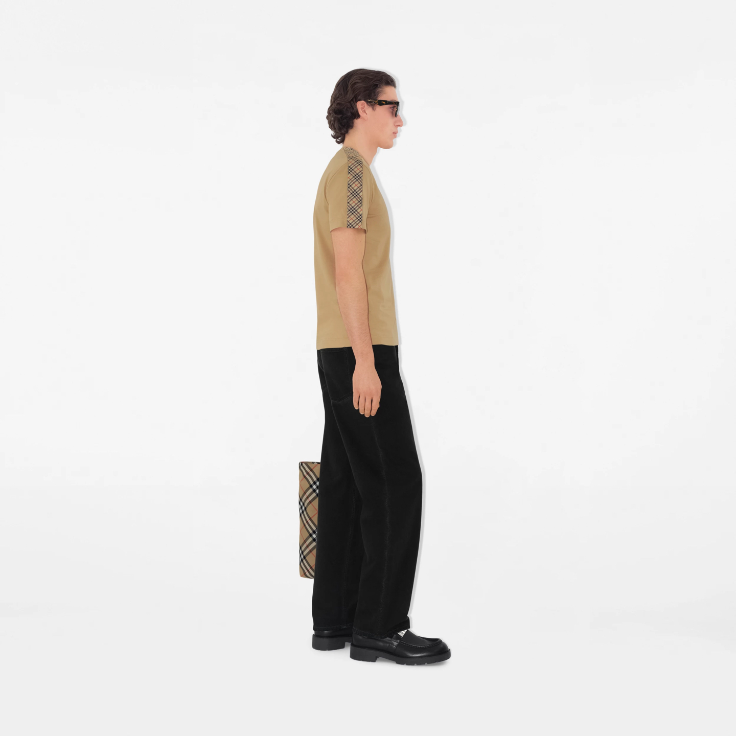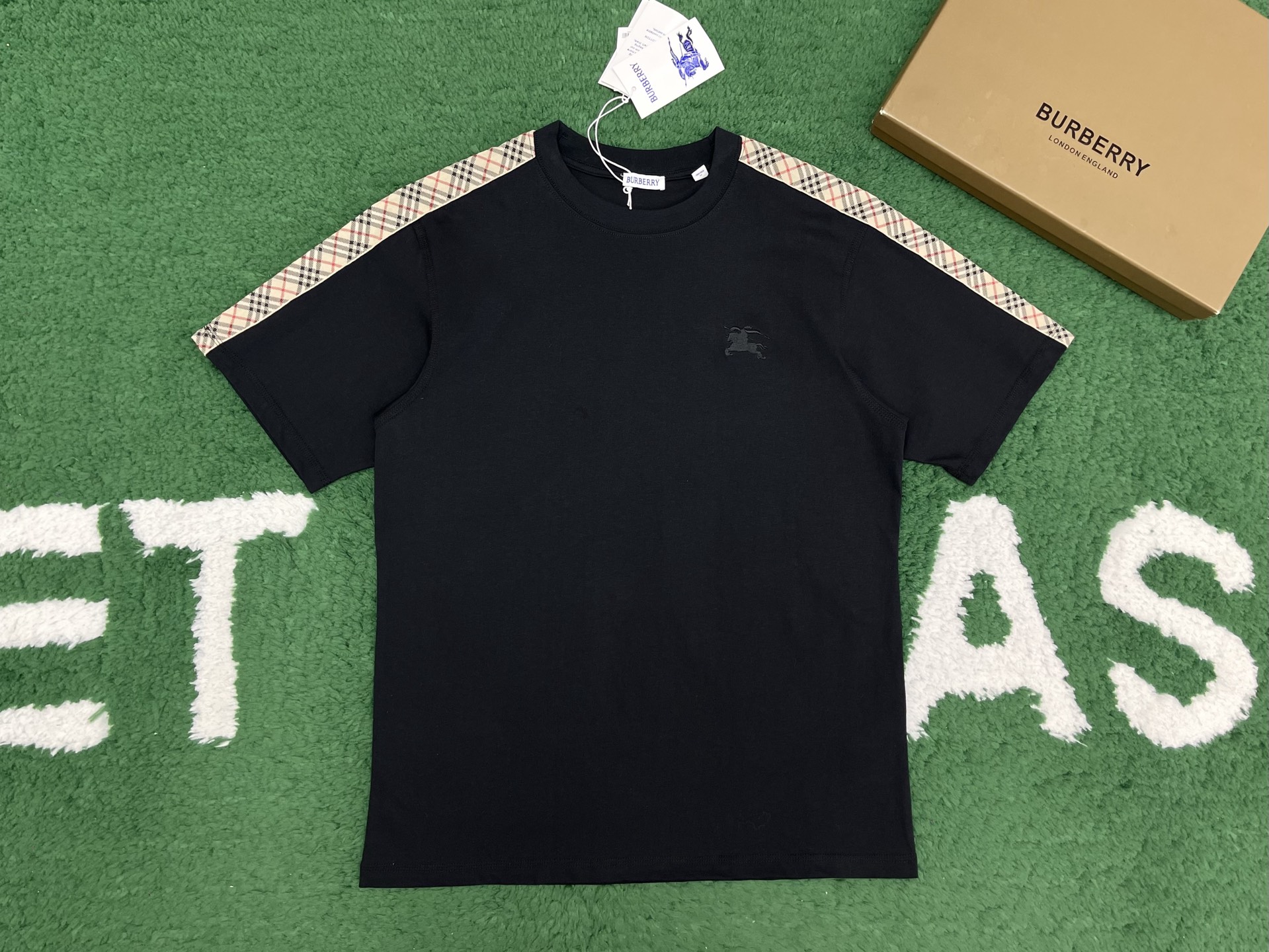 버버리 체크 트리밍 코튼 티셔츠 3COLOR (BEIGE) (BLACK) (WHITE)