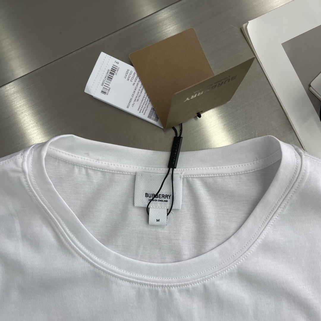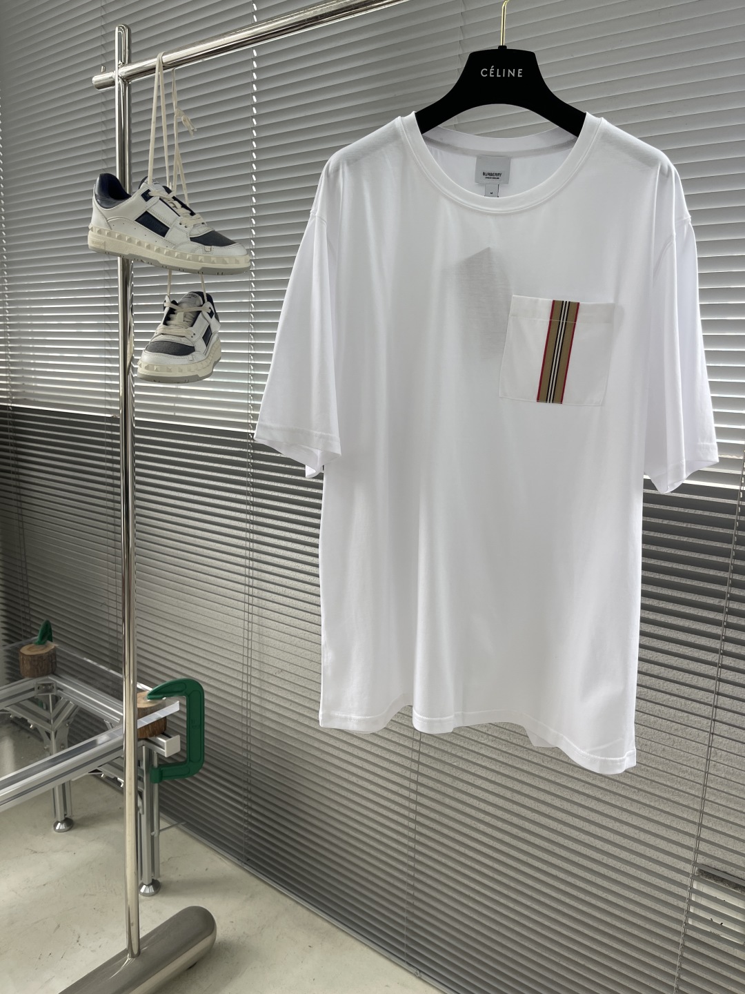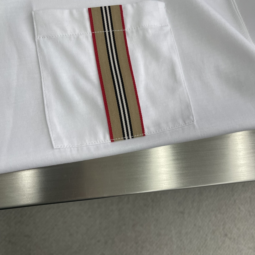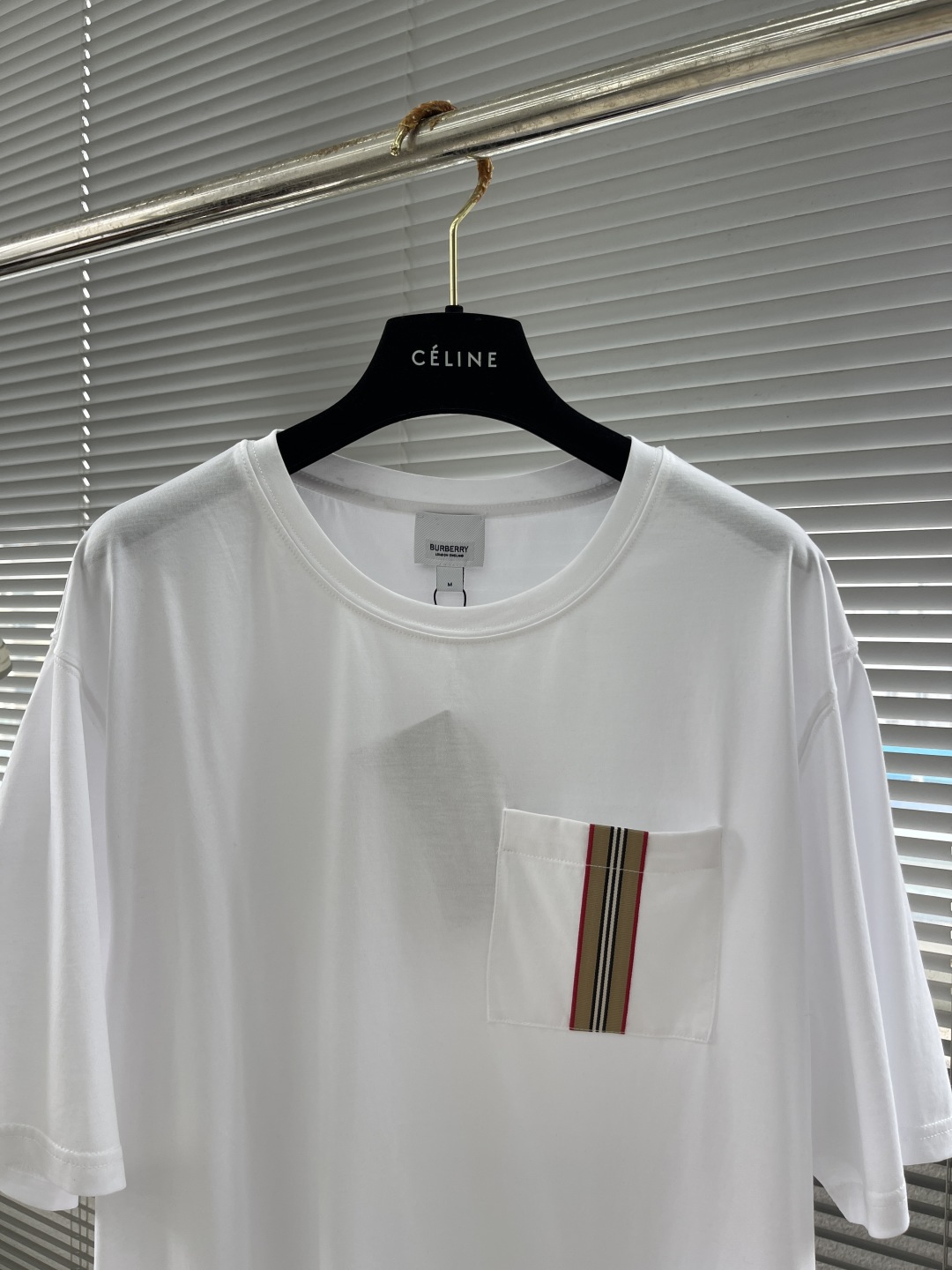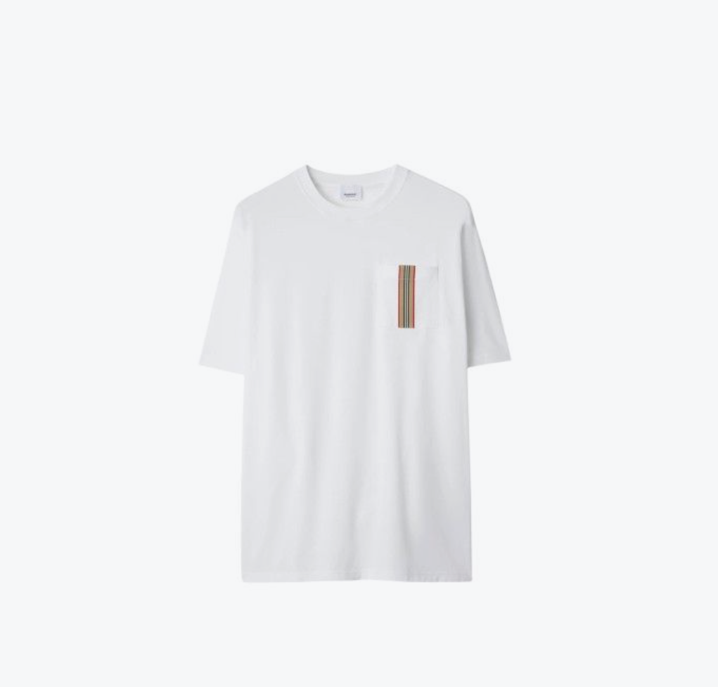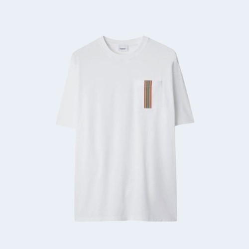버버리 스트라이프 트림 포켓 코튼 티셔츠 화이트