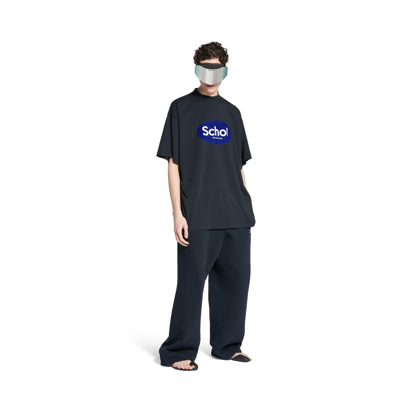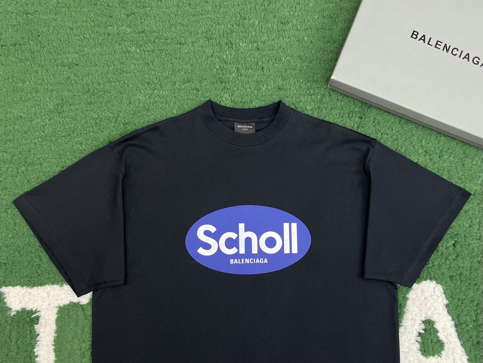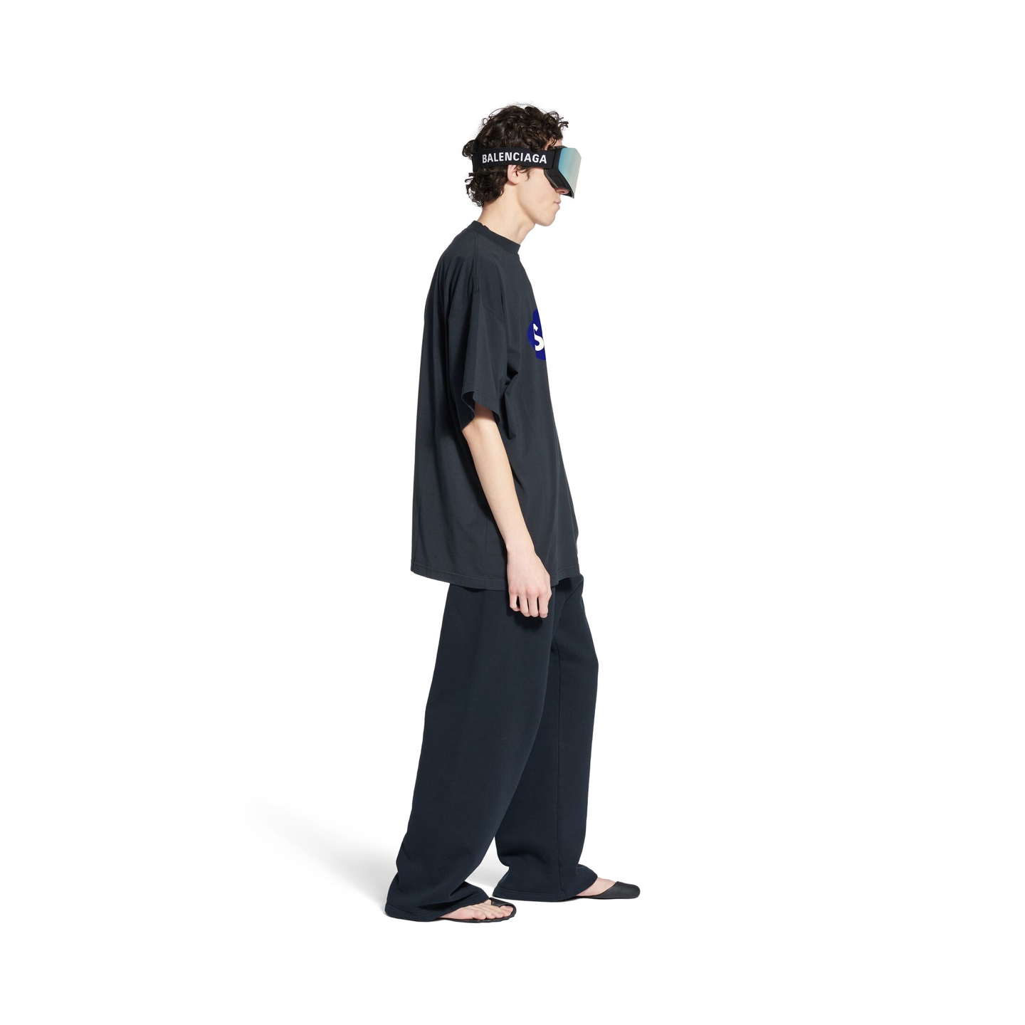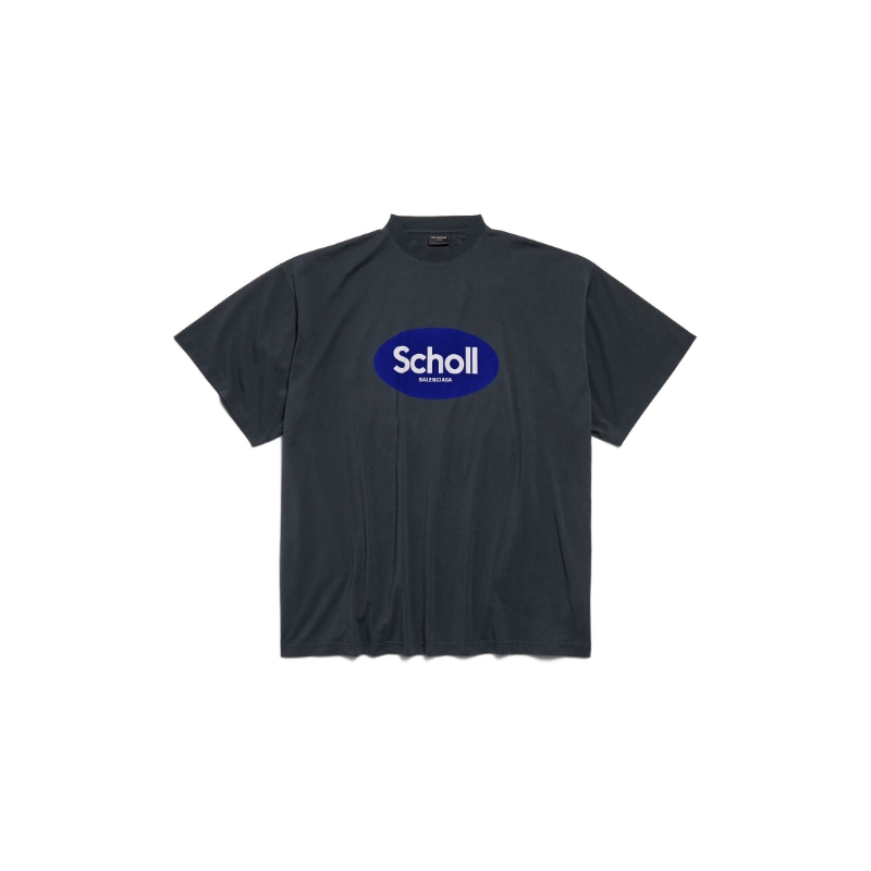 발렌시아가 숄 오버사이즈 페이드 블랙 티셔츠