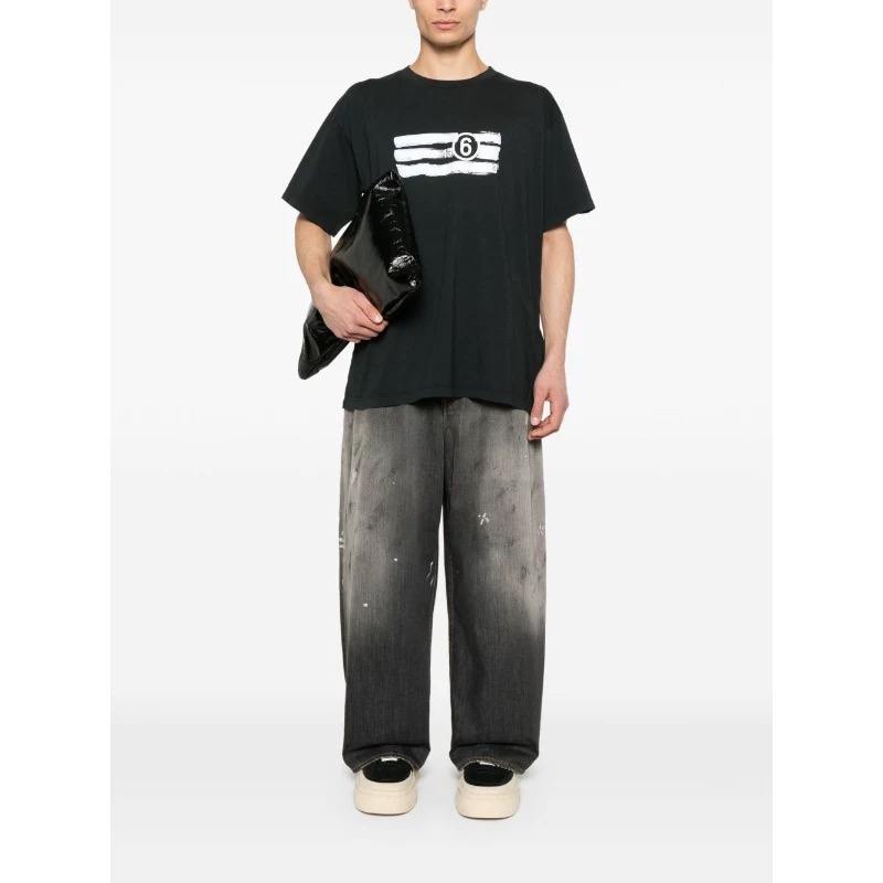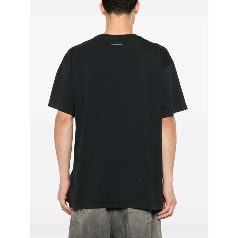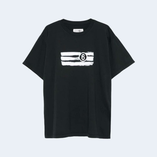 메종 마르지엘라 MM6 블랙 리볼브 프린팅 로고 티셔츠