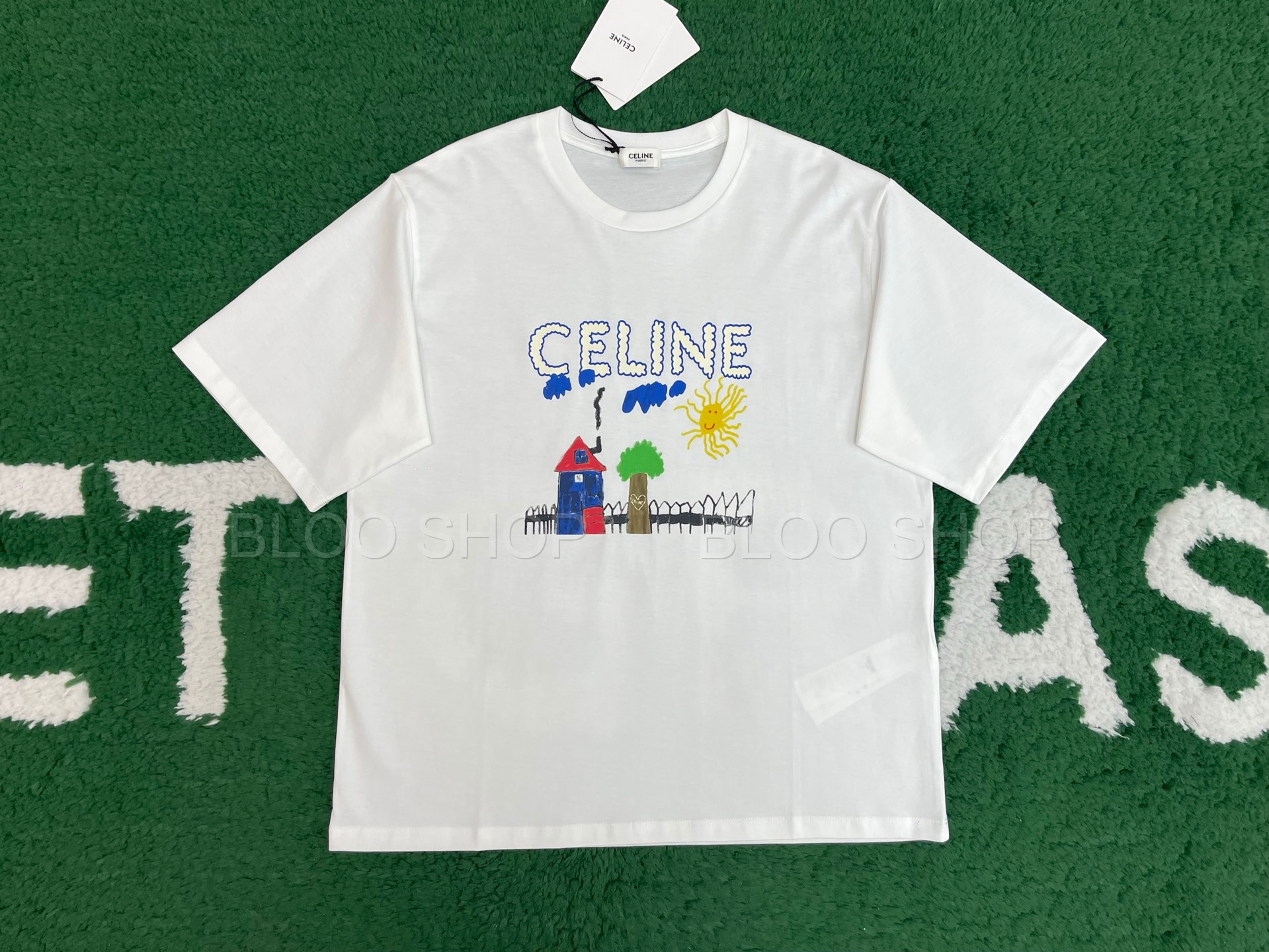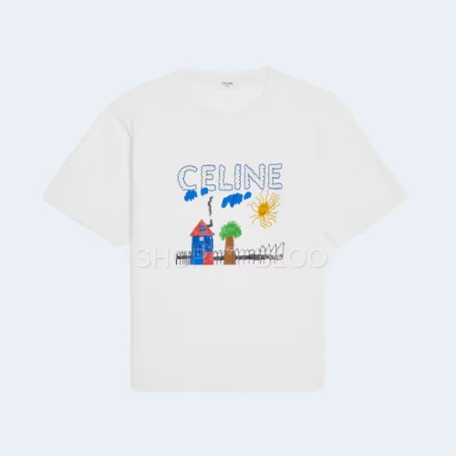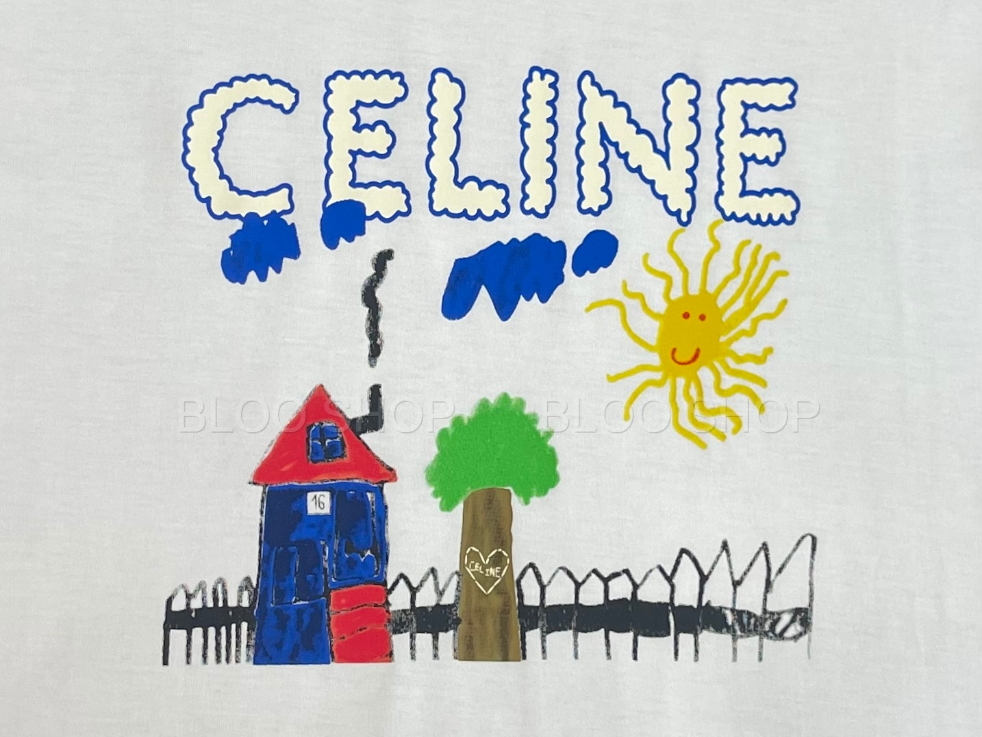 셀린느 루즈 코튼 저지 멀티컬러 티셔츠 화이트