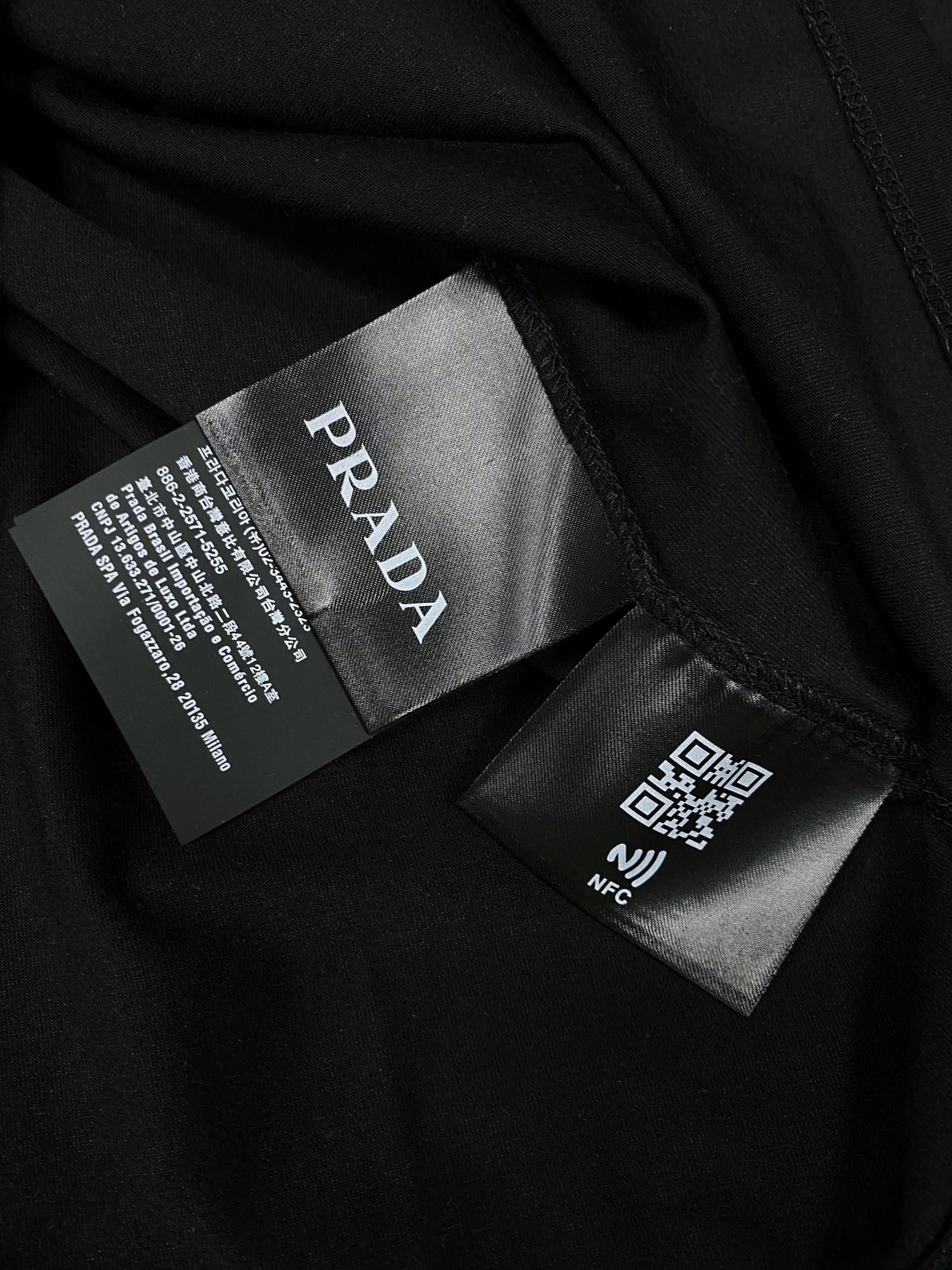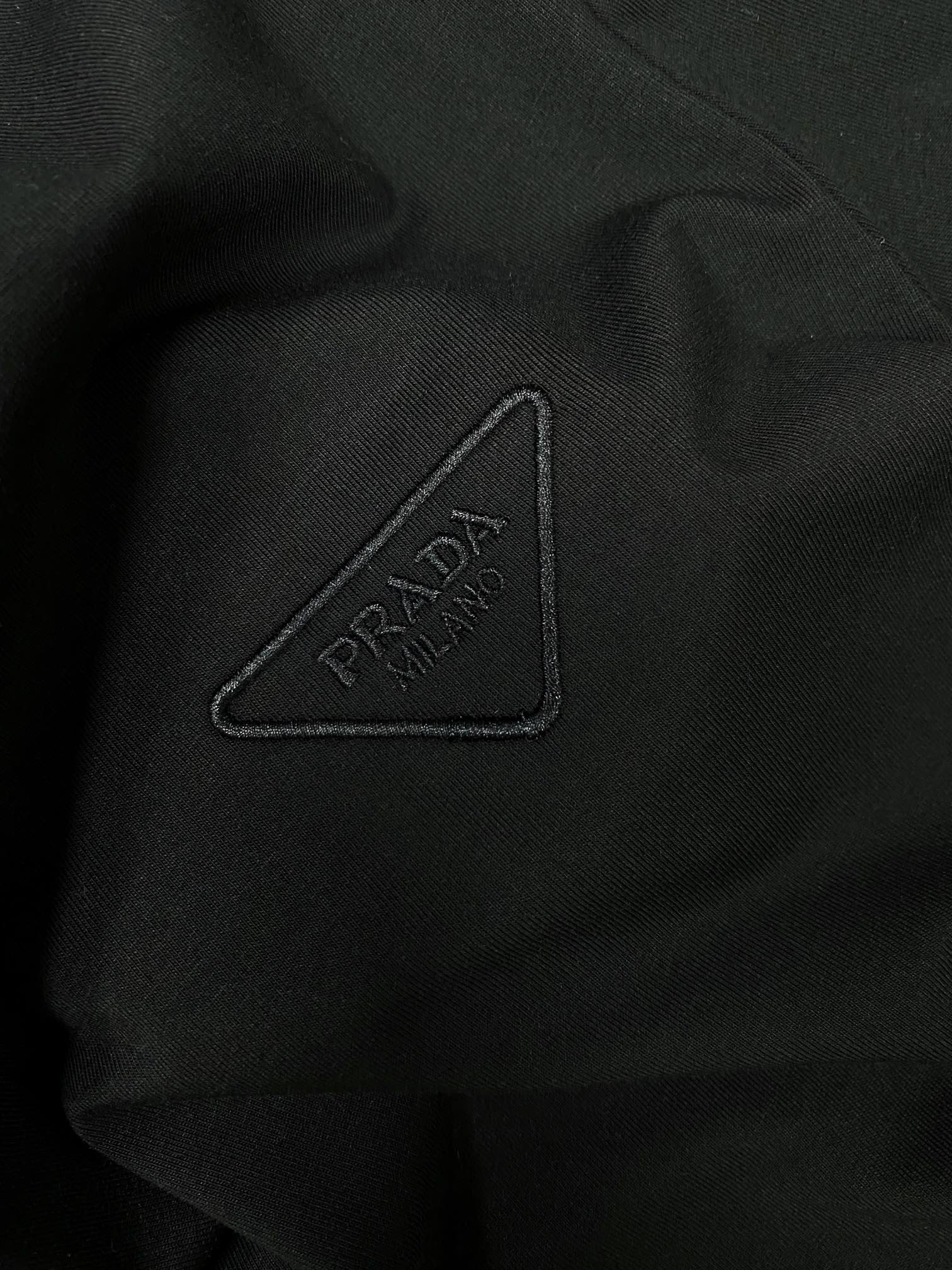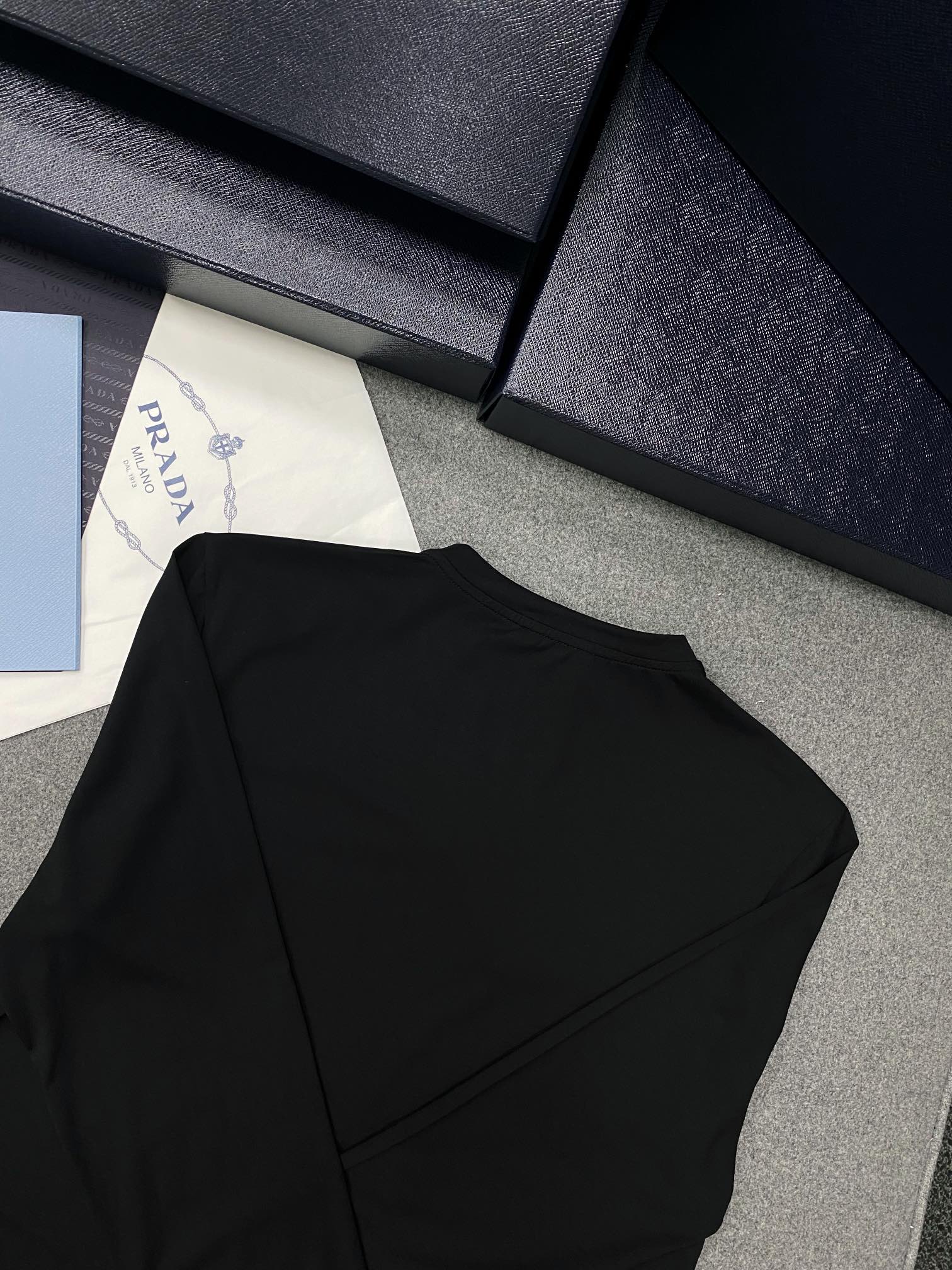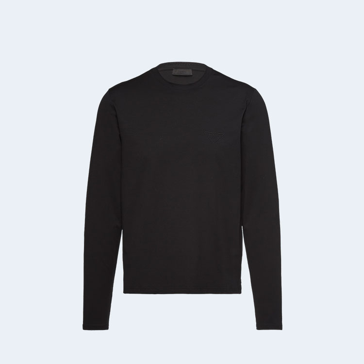 프라다 스트래치 코튼 롱 티셔츠 블랙
