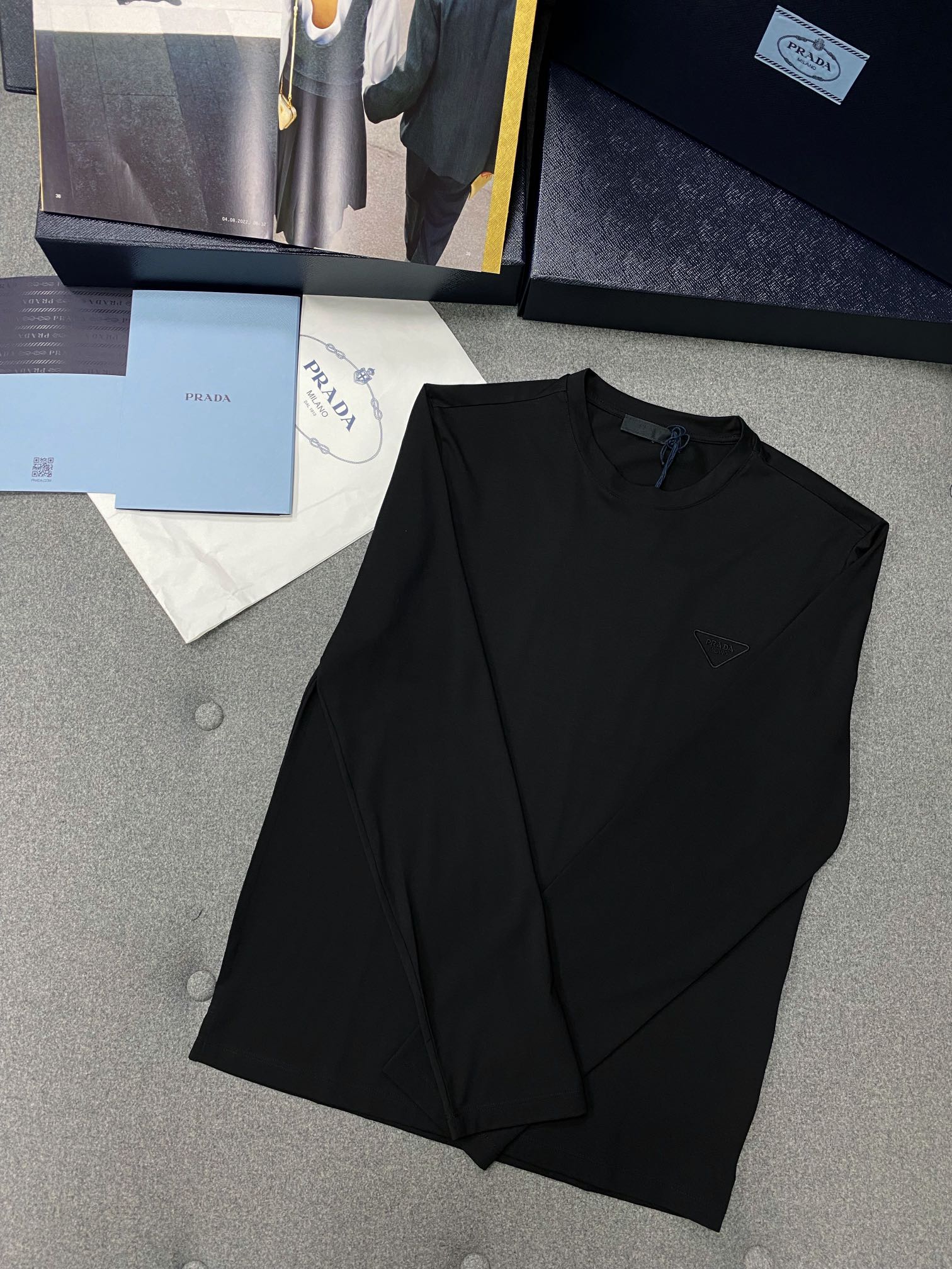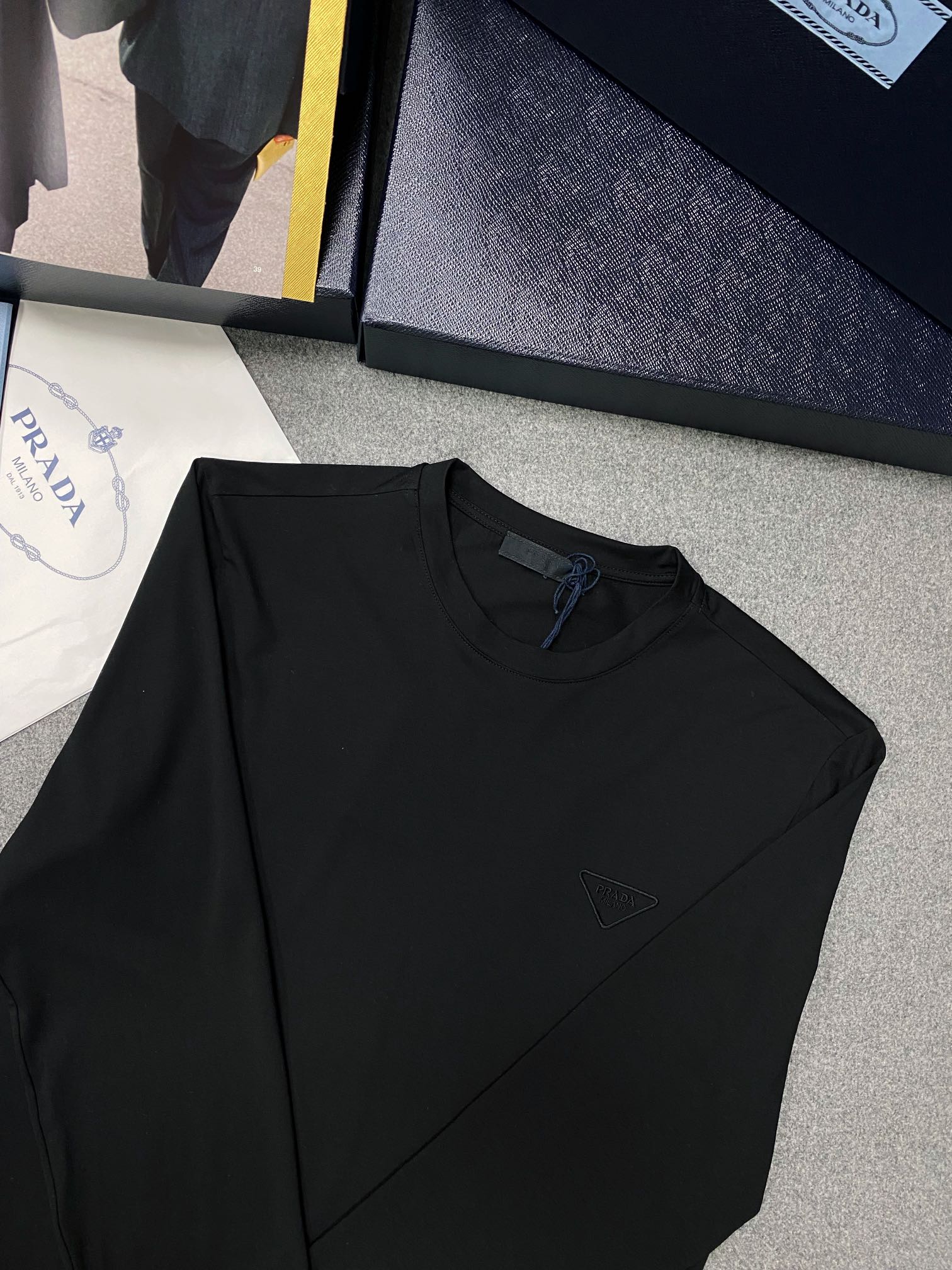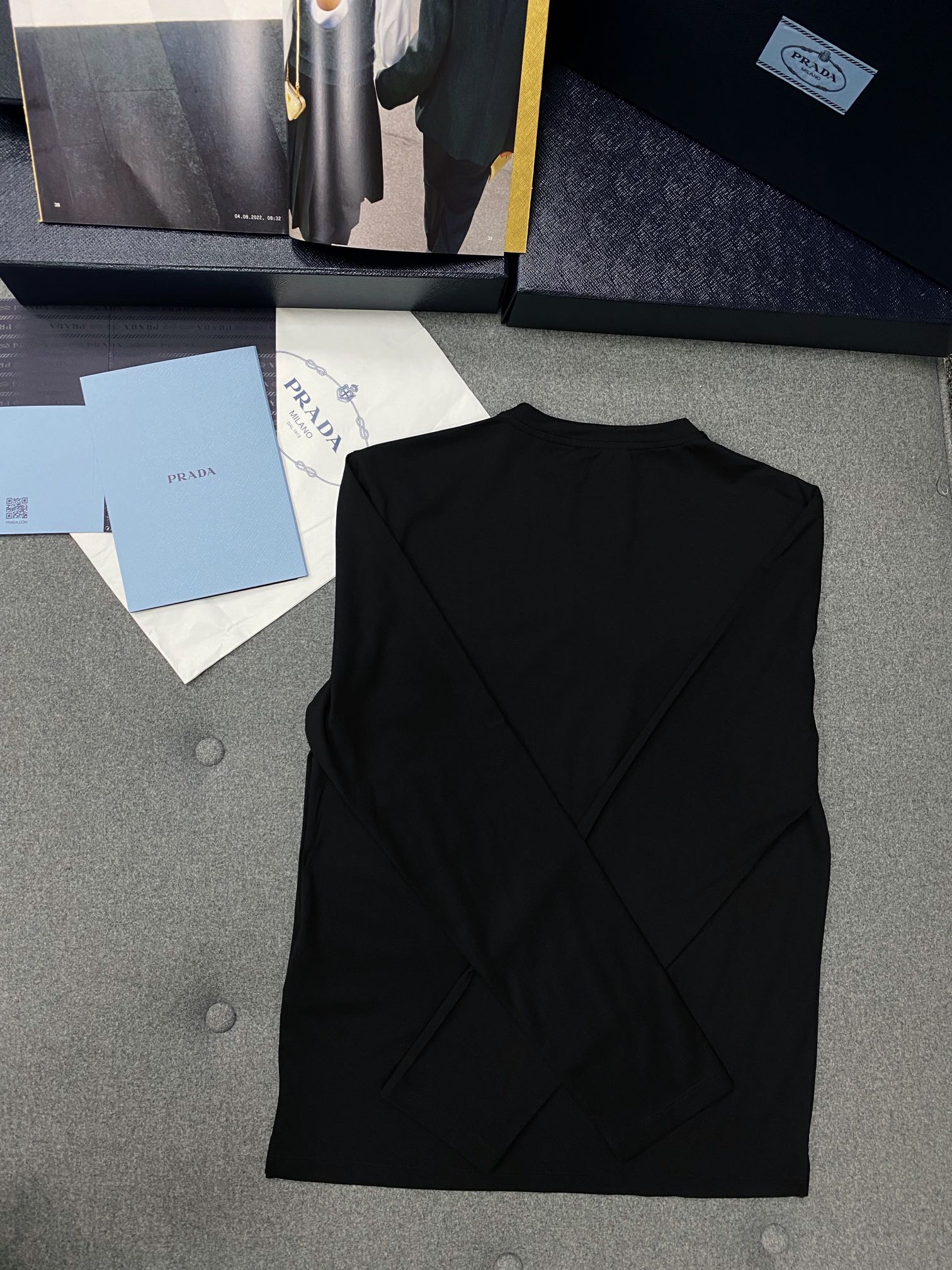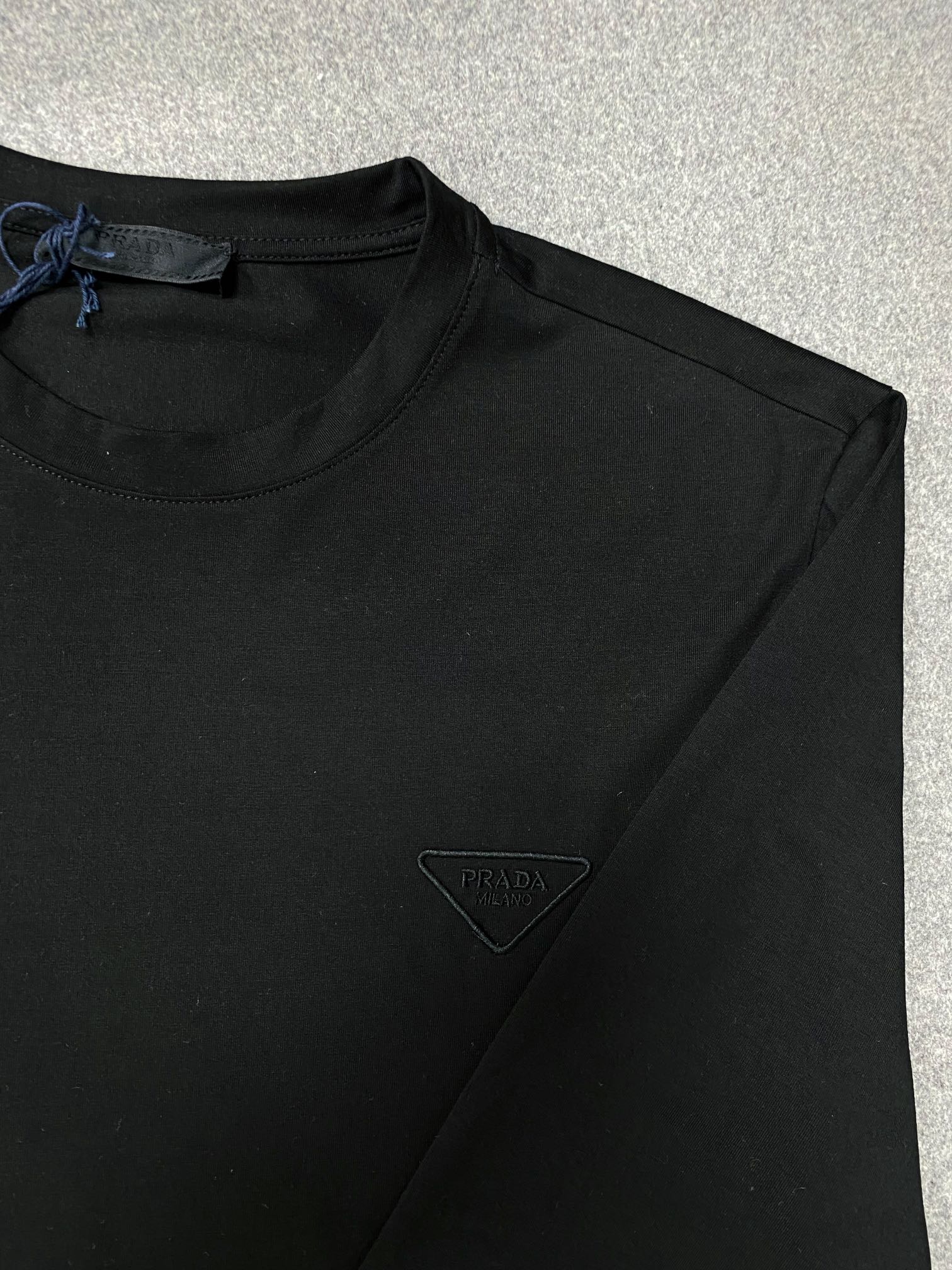 프라다 스트래치 코튼 롱 티셔츠 블랙